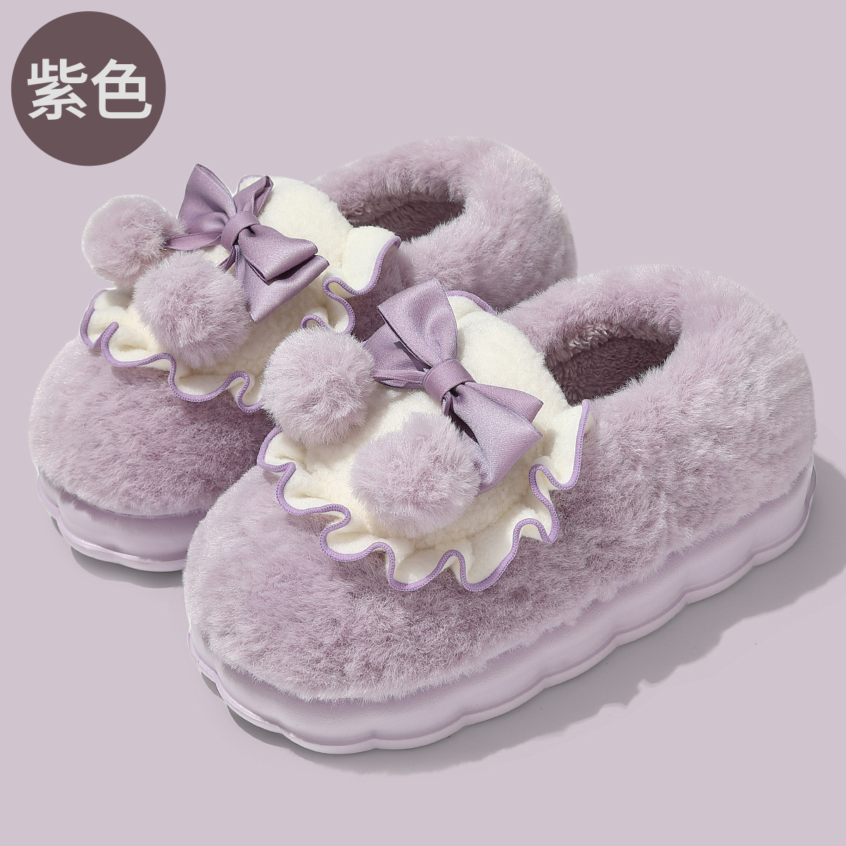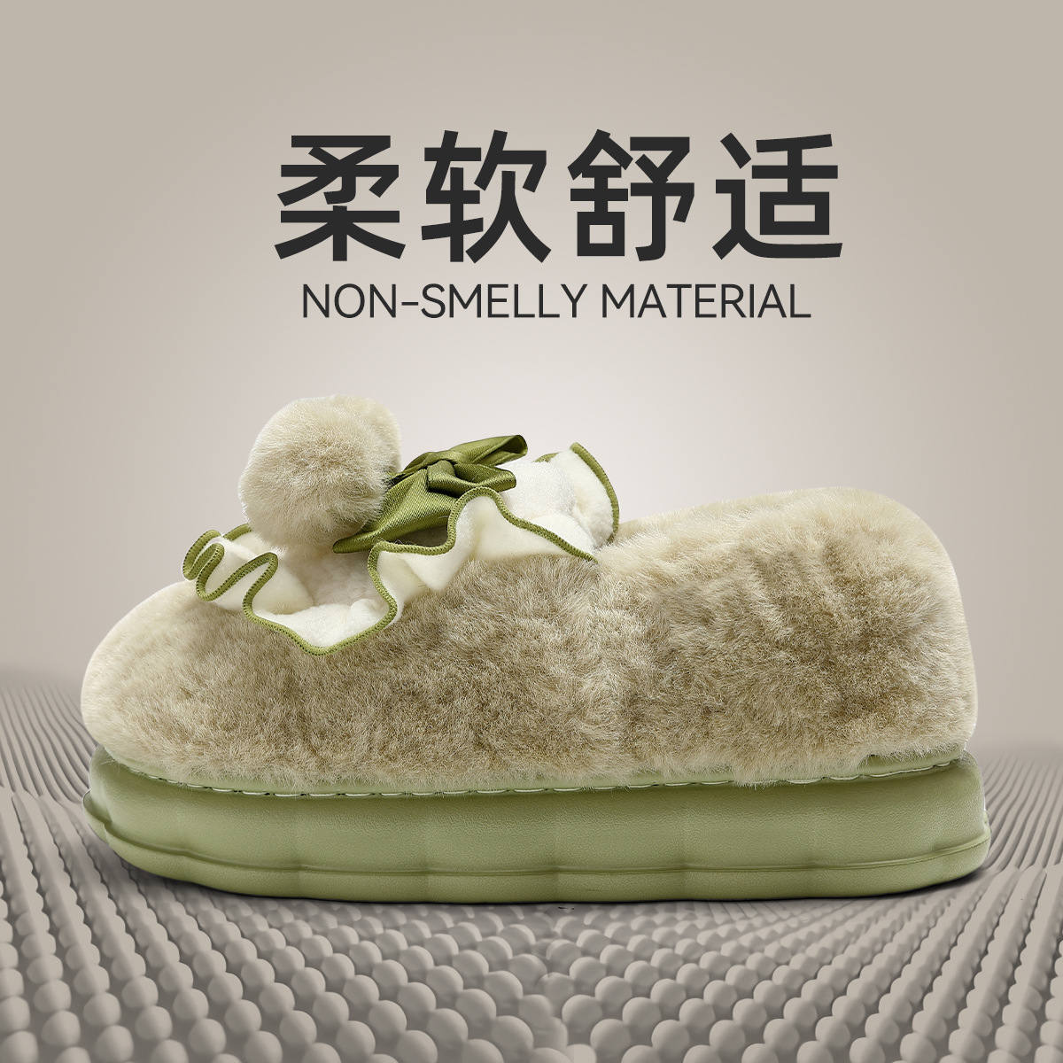 蝴蝶结棉拖鞋女士冬季2024新款室内家居防滑加绒加厚毛毛棉鞋男冬