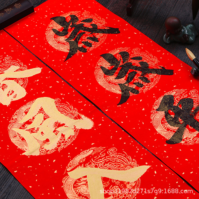 thickened wannianhong xuan paper couplet handwriting blank sprinkling gold spring couplet paper seven words dragon and phoenix tile calligraphy couplet wholesale