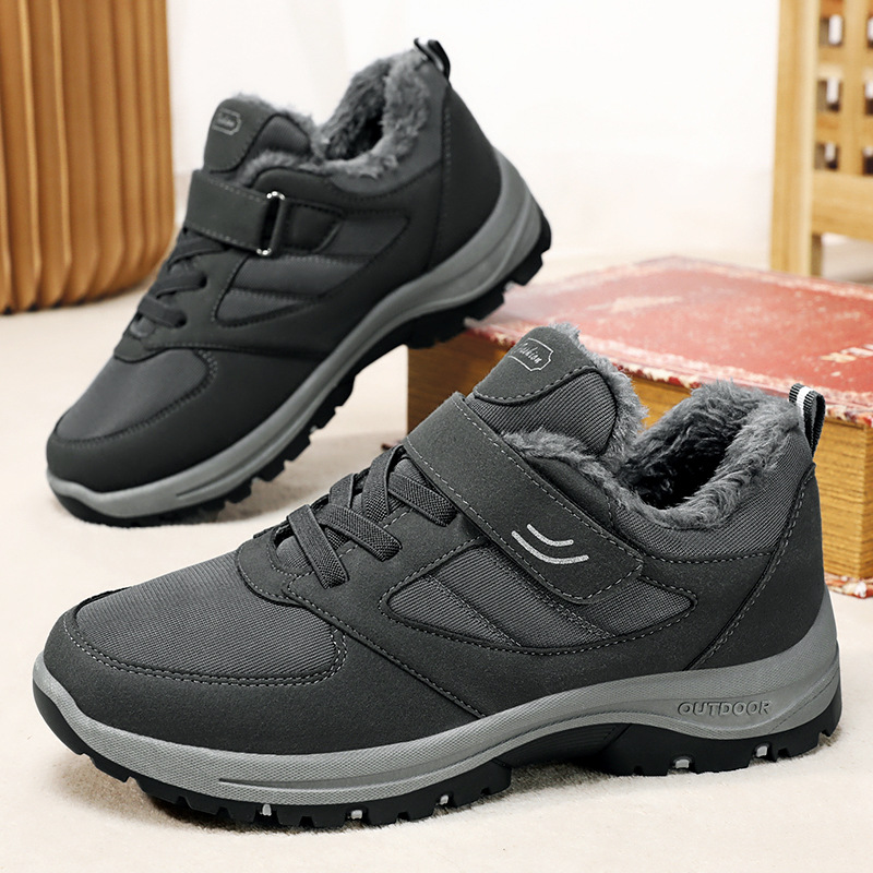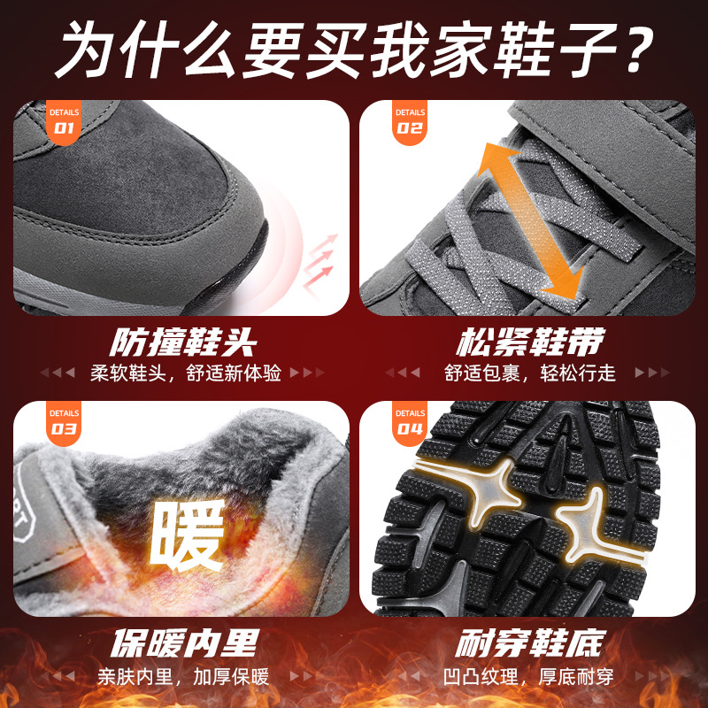 男靴冬季新款魔术贴免系带中老年棉靴加绒加厚保暖健步雪地靴批发