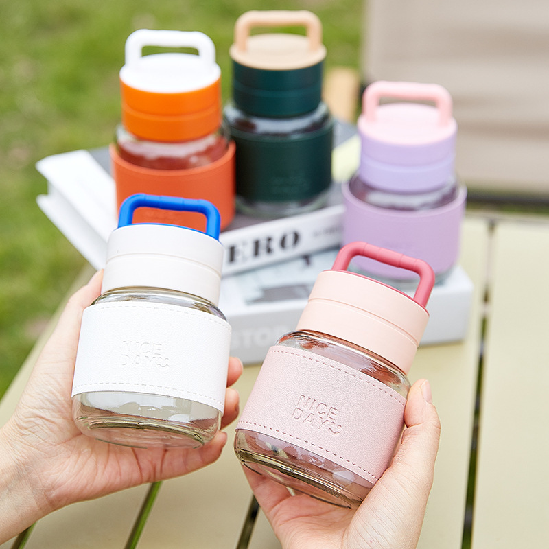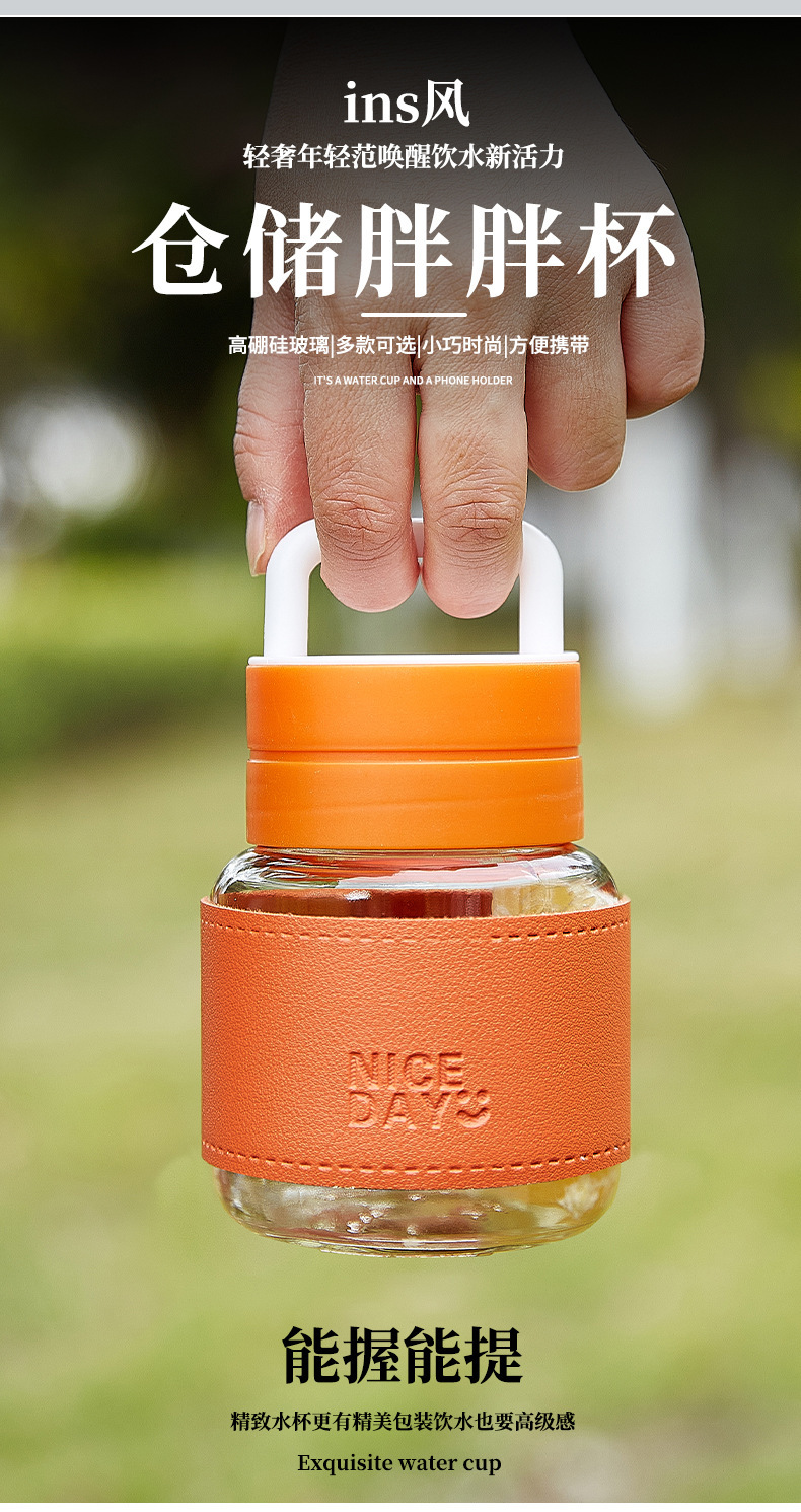 玻璃杯胖胖杯牛奶摇摇杯提手玻璃水杯跨境礼品杯咖啡杯创意设计
