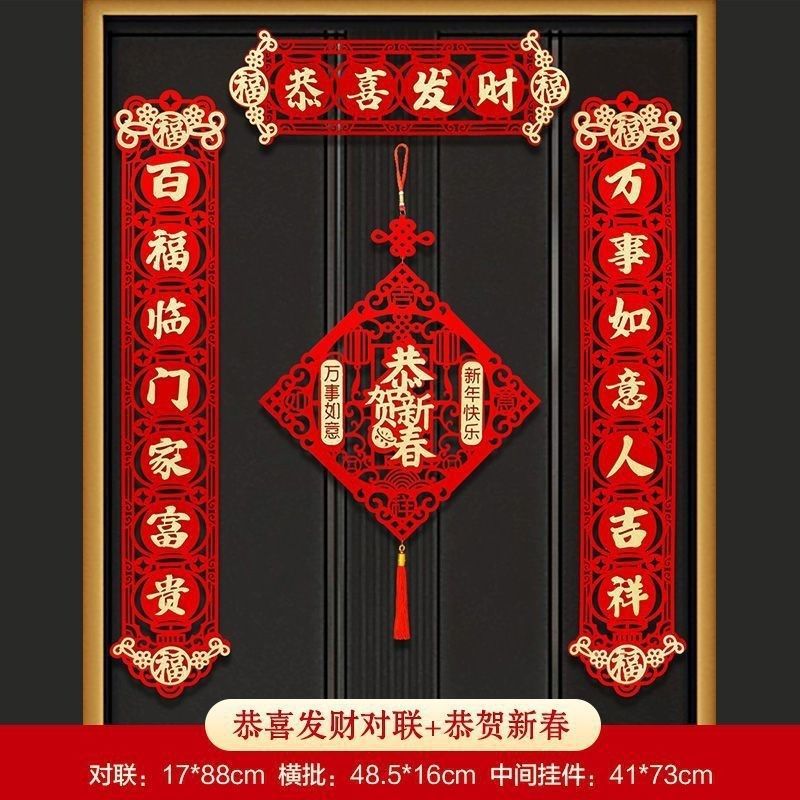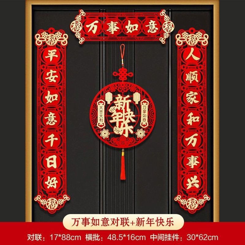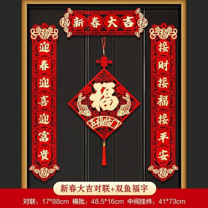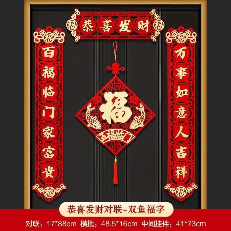 new couplet 2026 horse year spring couplets decorative supplies set household three-dimensional flocking new year couplet fu character pendant