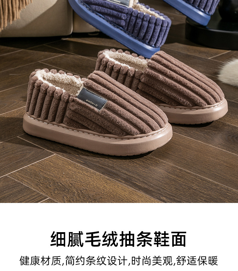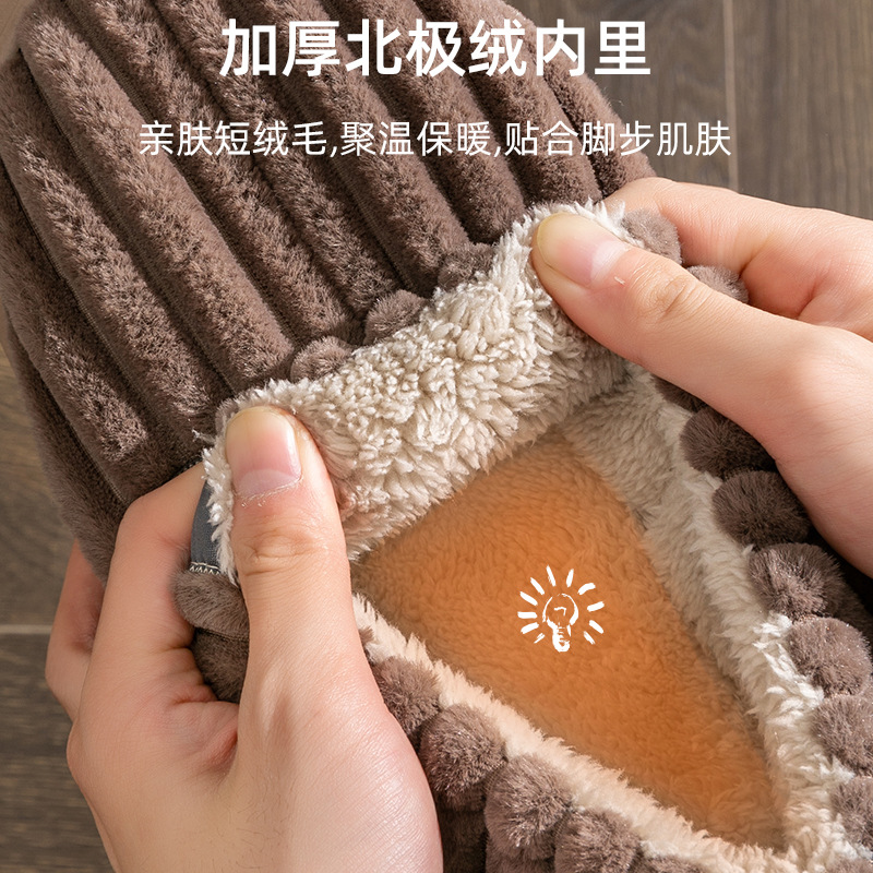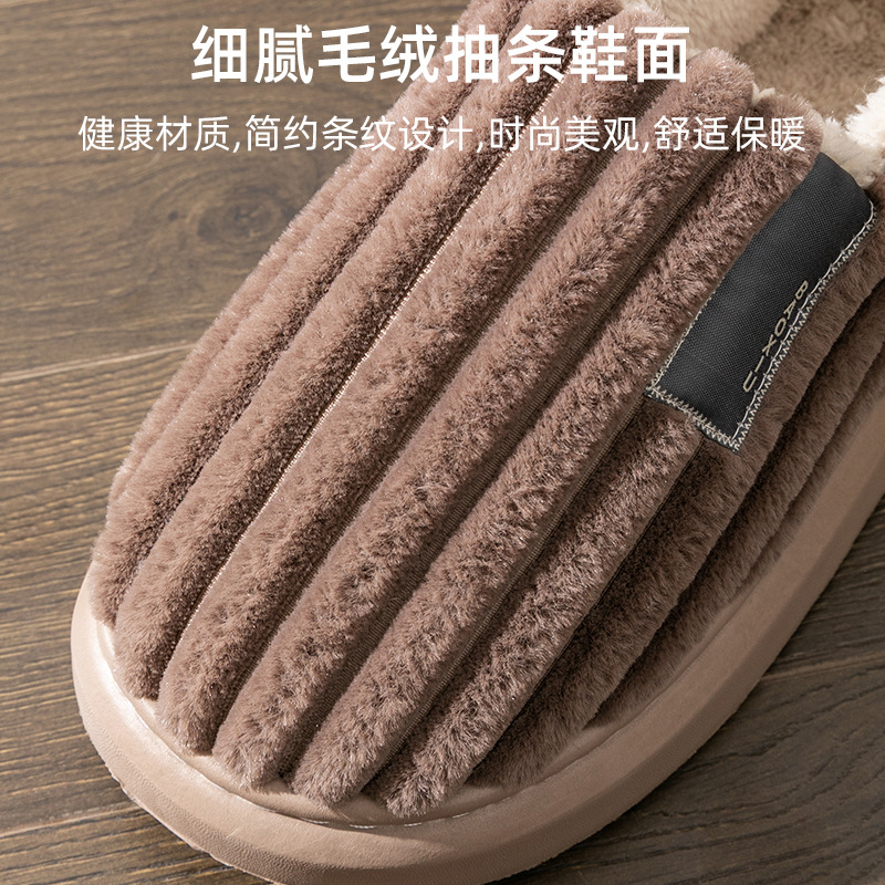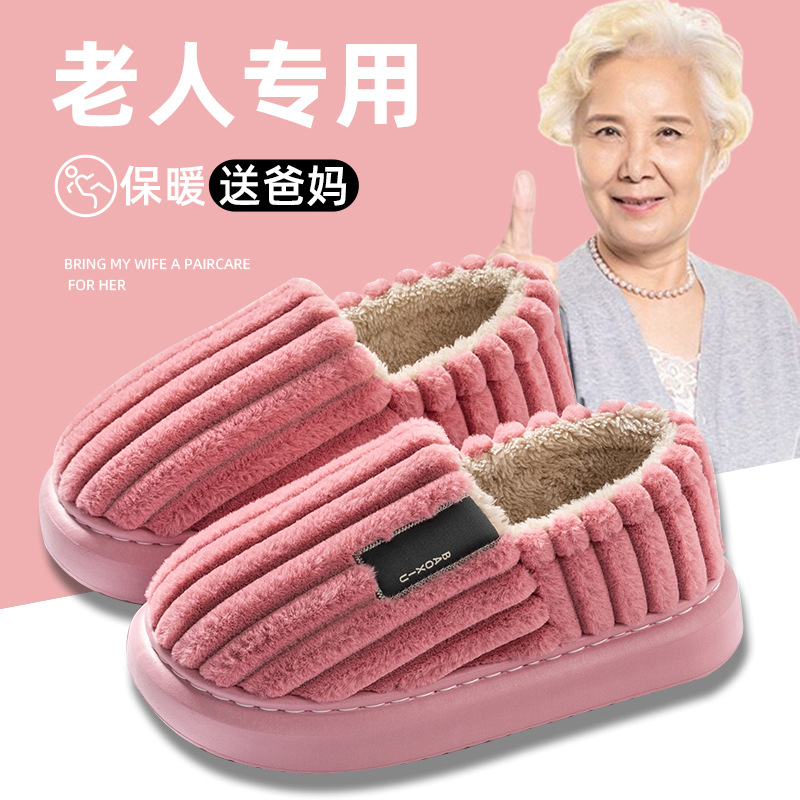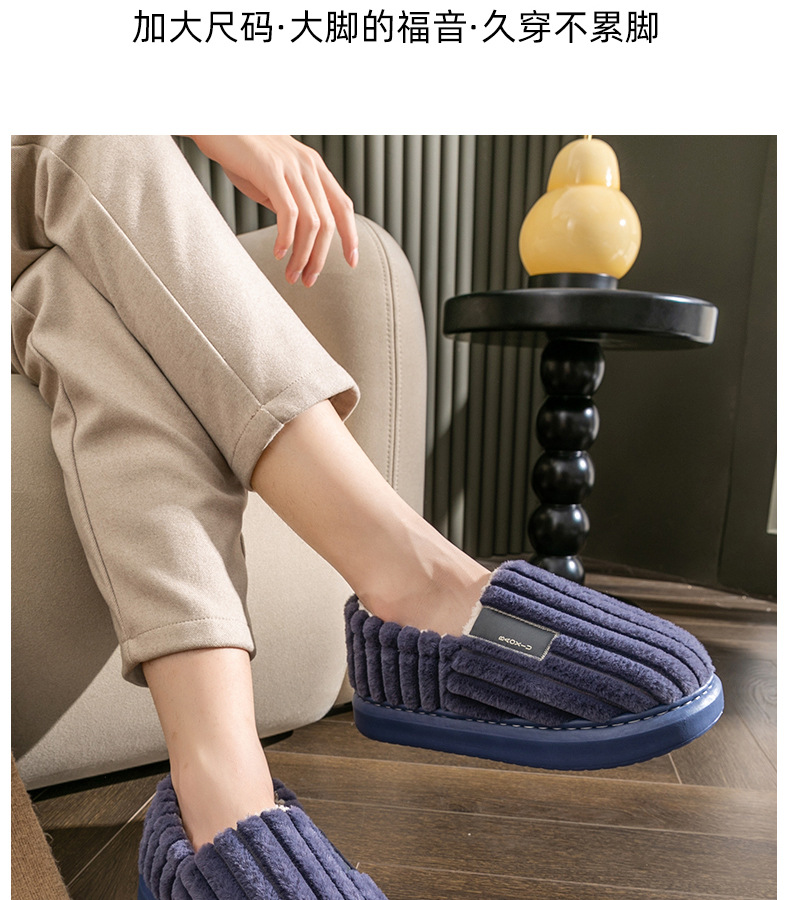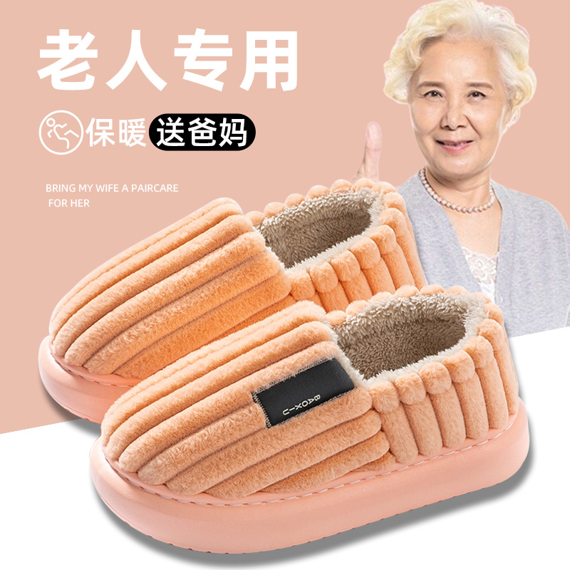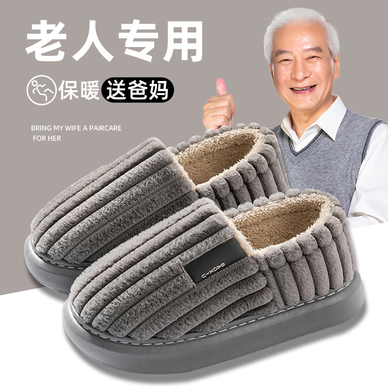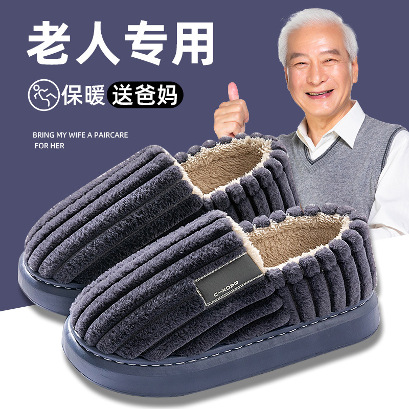 老人防滑棉拖鞋男士家居秋冬包脚后跟室内厚底大码毛绒棉鞋男冬天