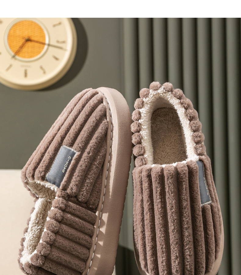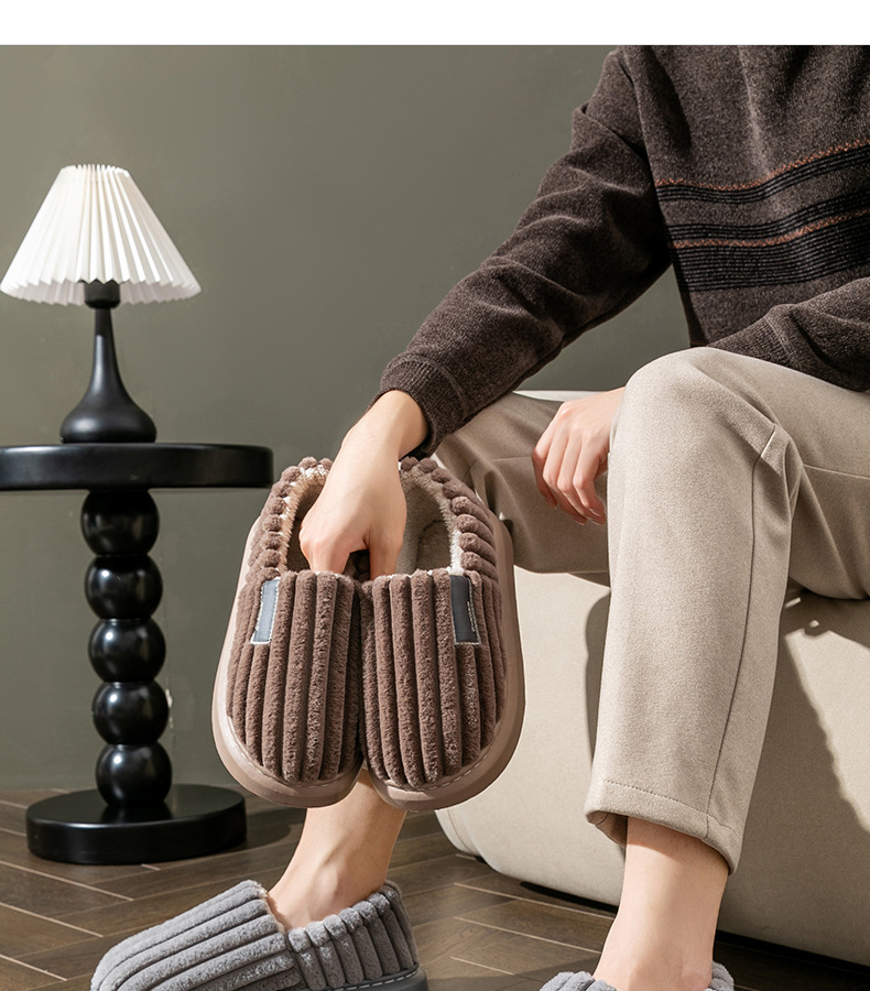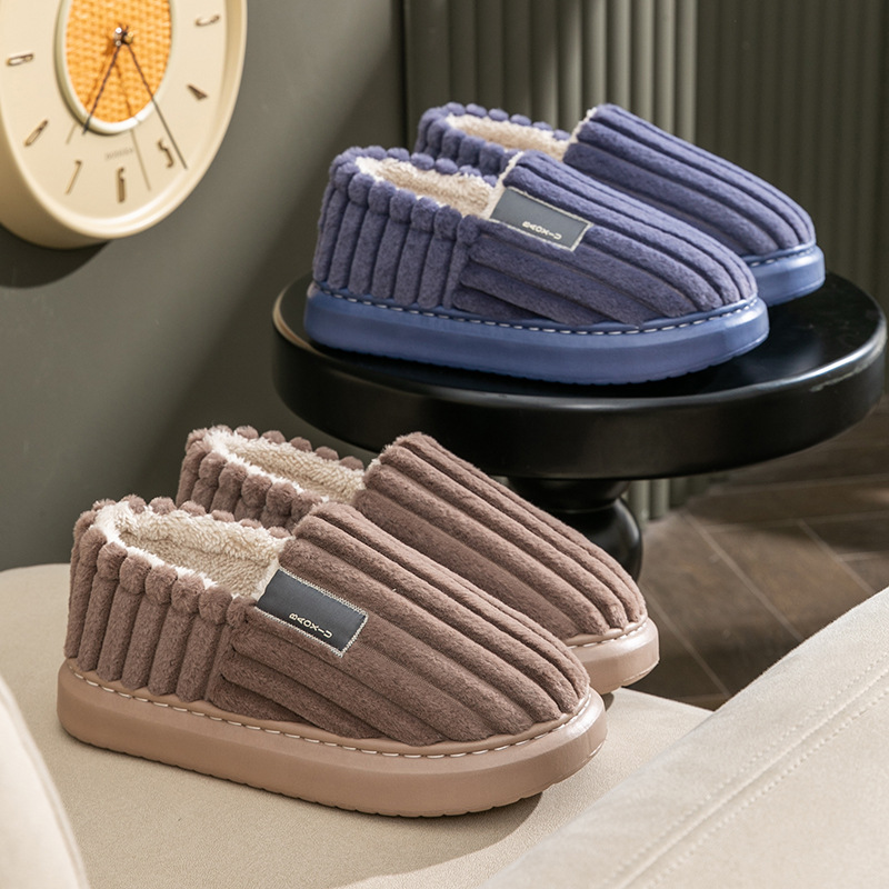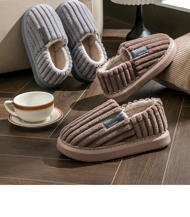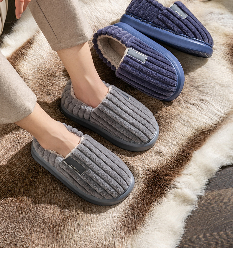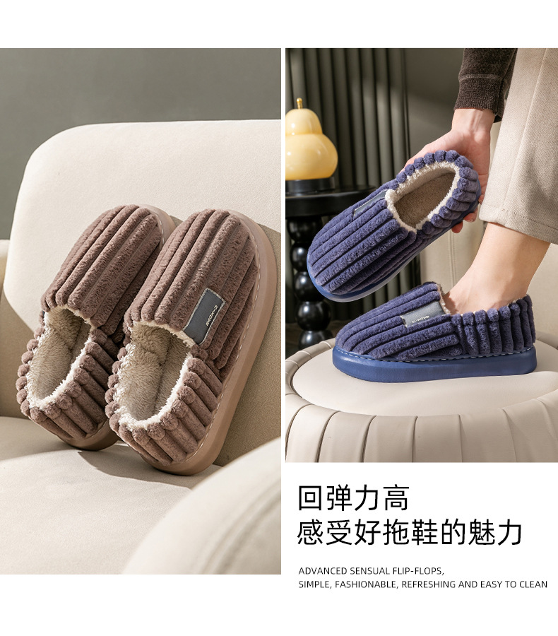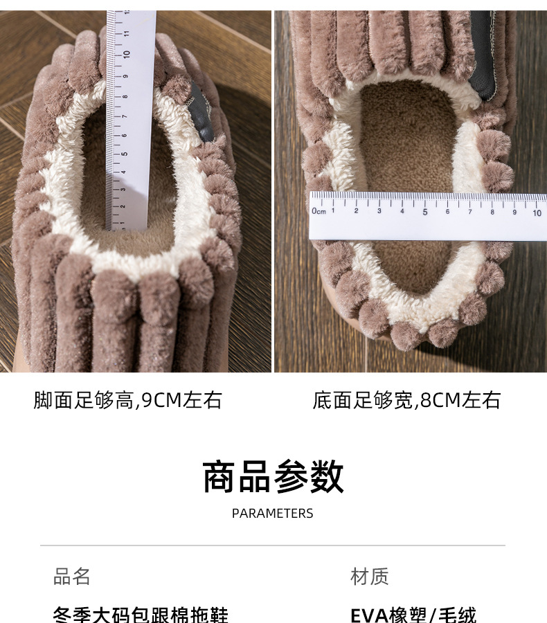 老人防滑棉拖鞋男士家居秋冬包脚后跟室内厚底大码毛绒棉鞋男冬天