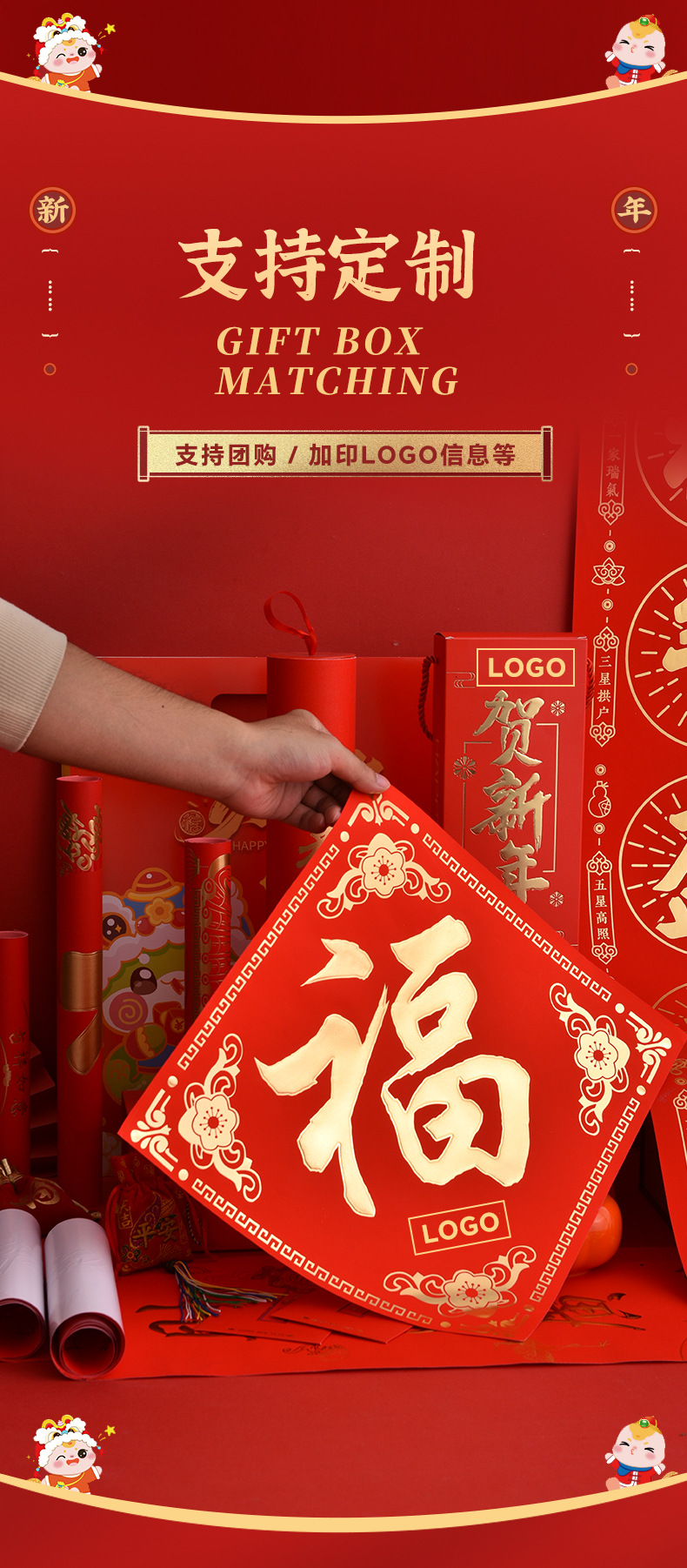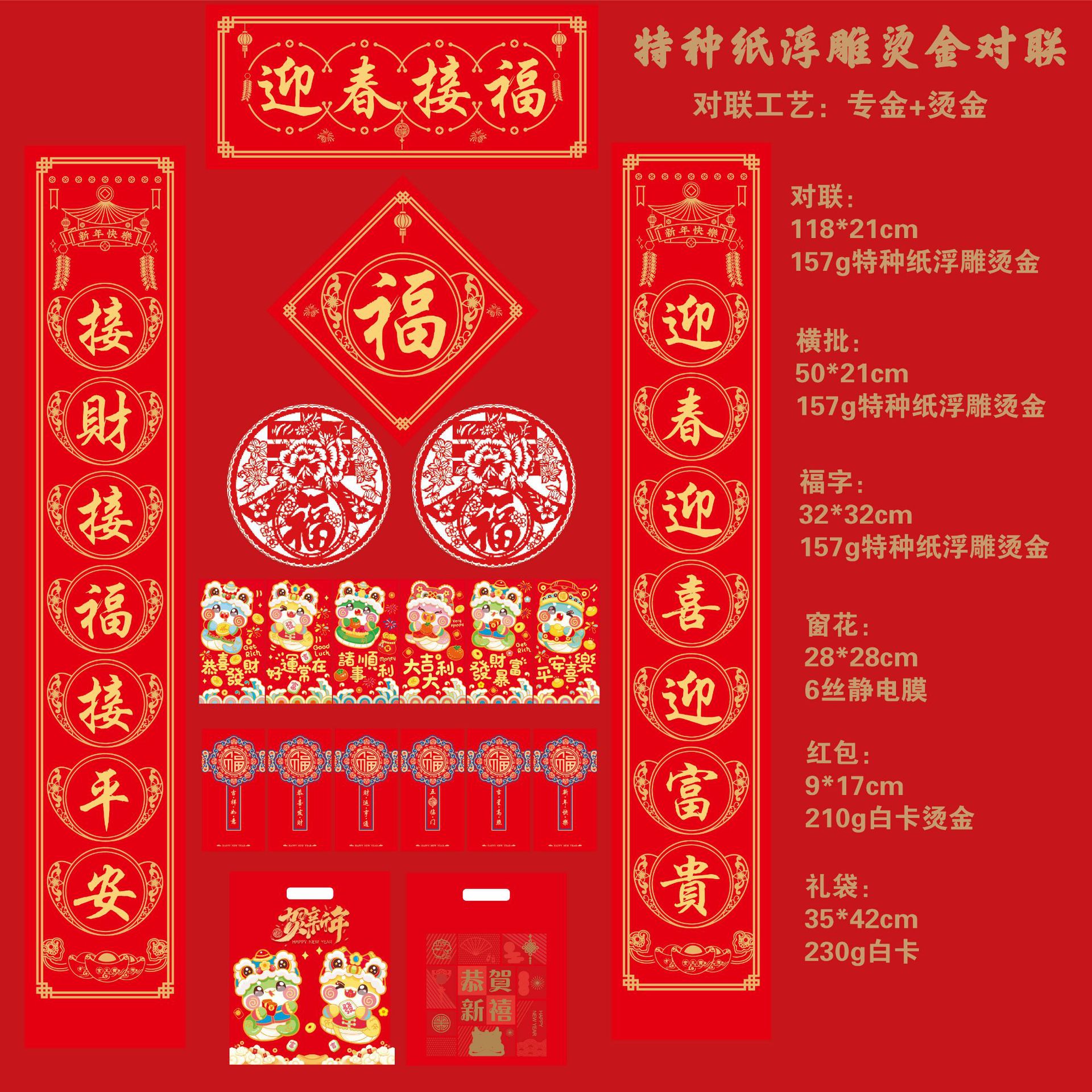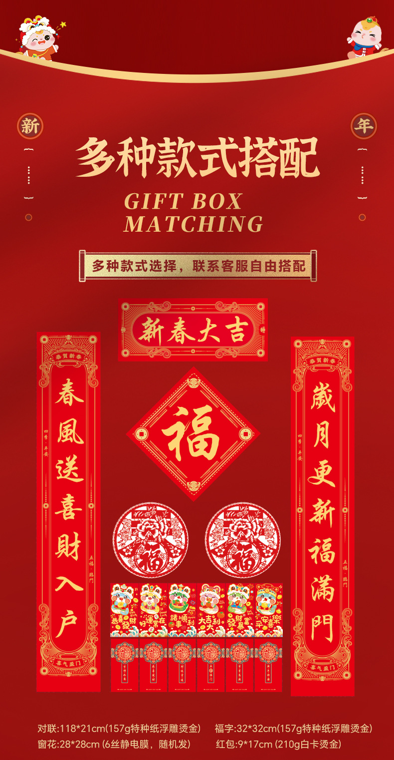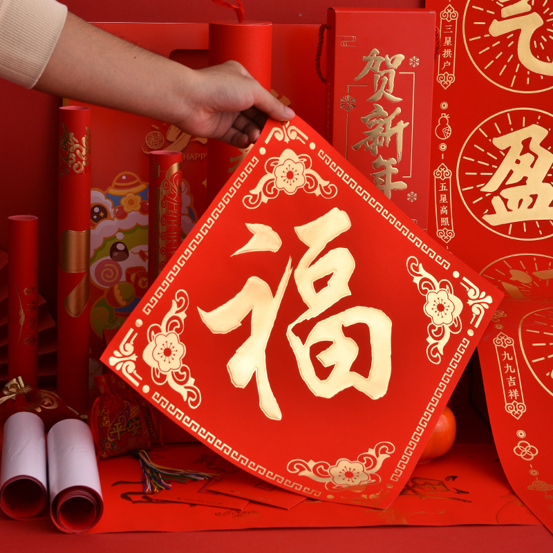 2025蛇年烫金对联定制福字对联大礼包定制批发印LOGO绸布春联定做