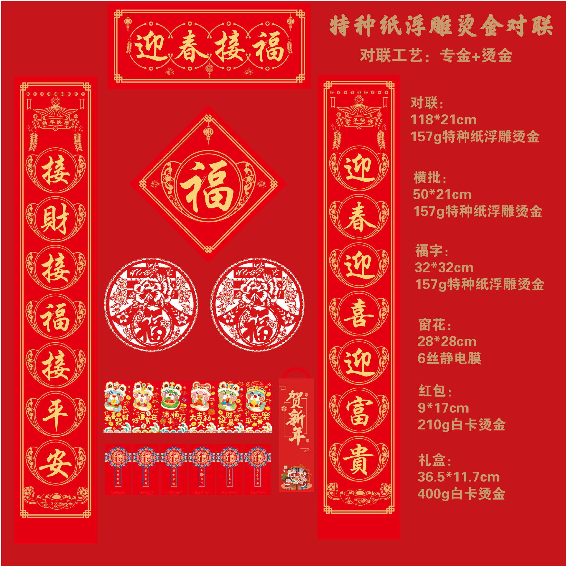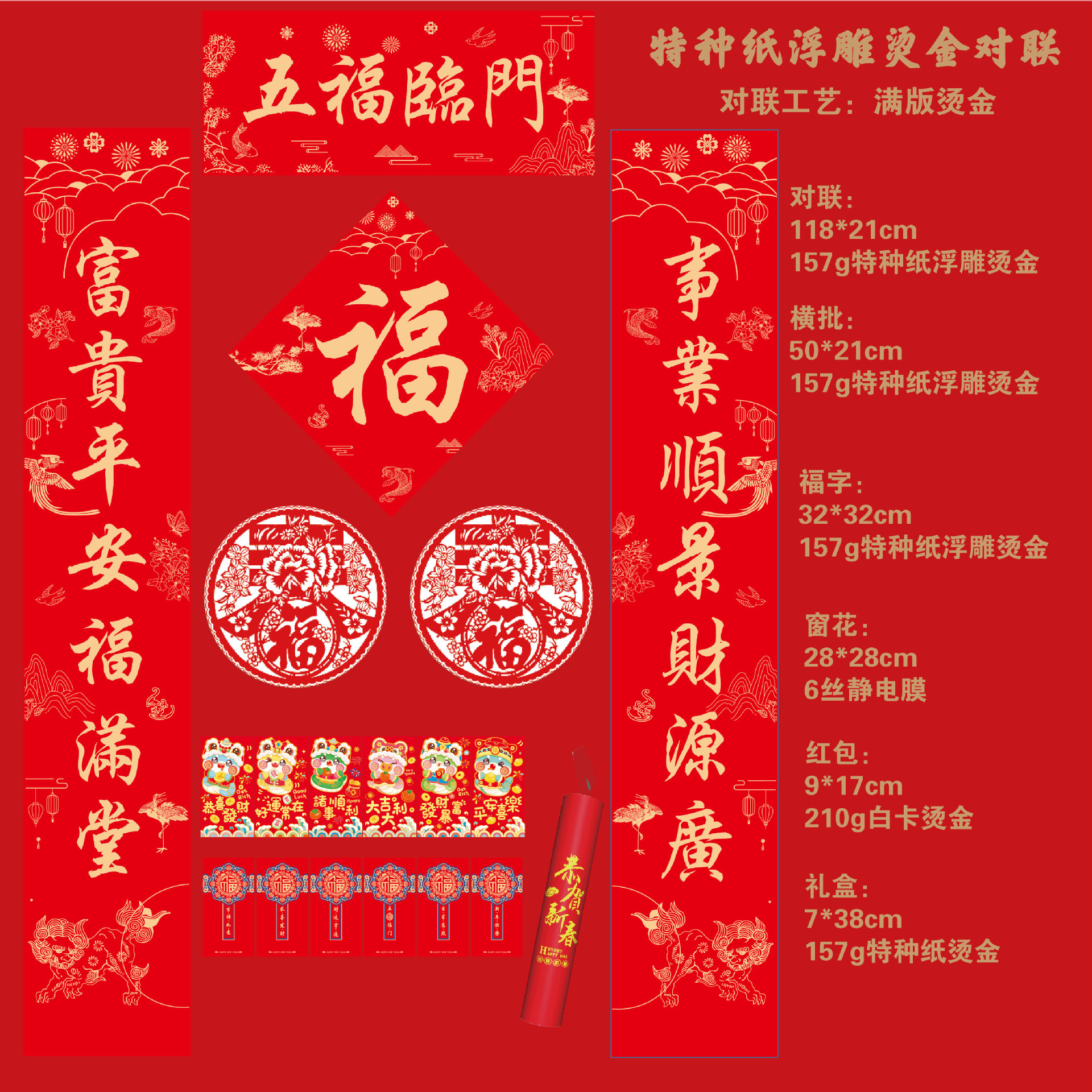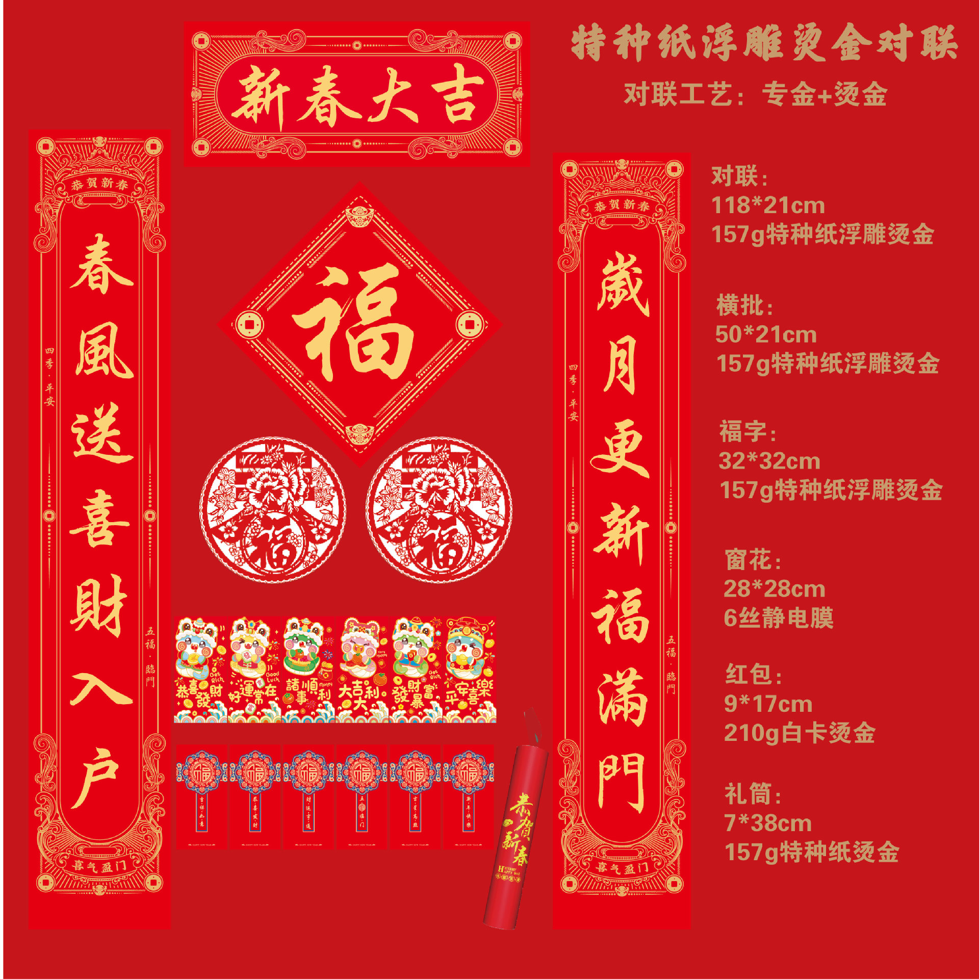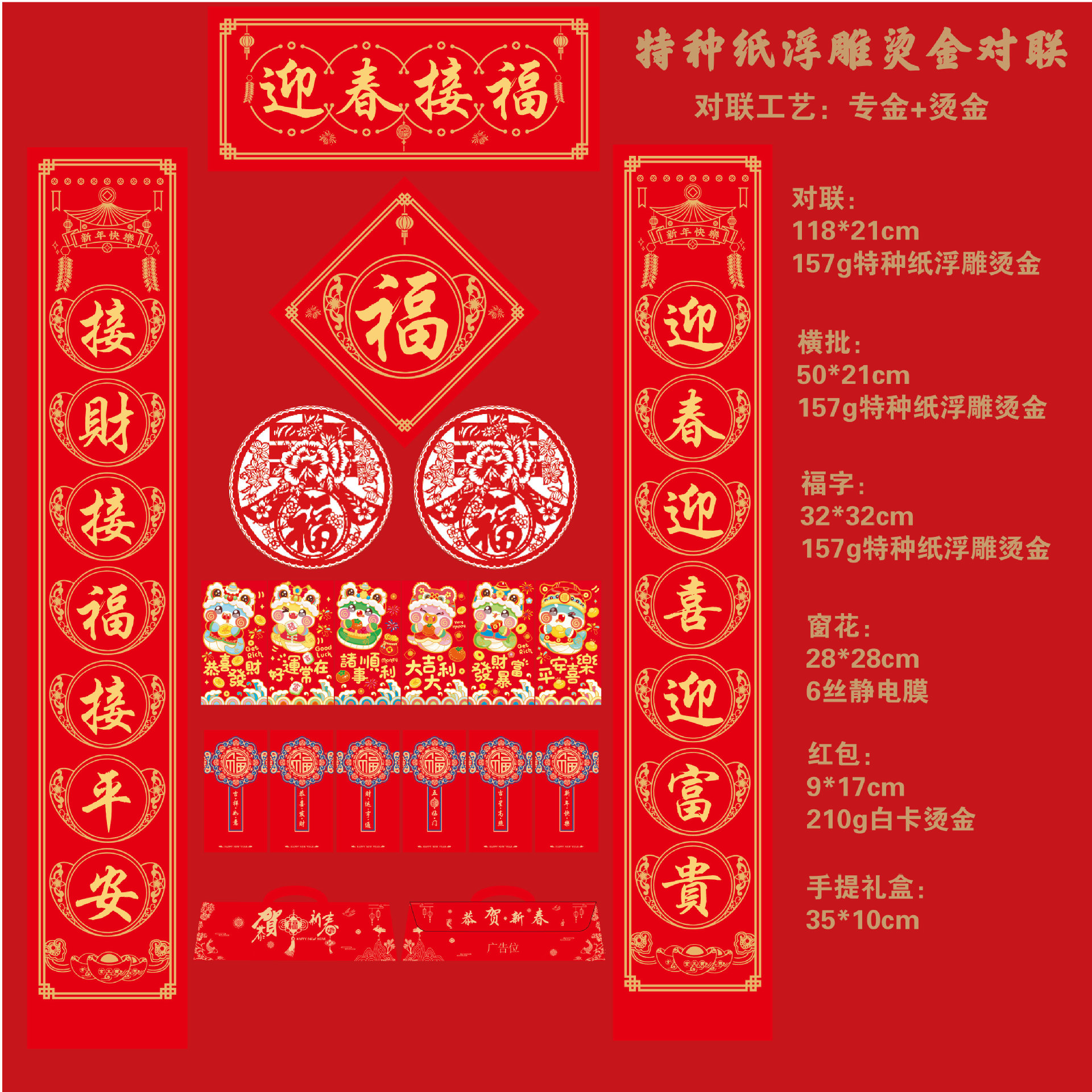 2025蛇年烫金对联定制福字对联大礼包定制批发印LOGO绸布春联定做