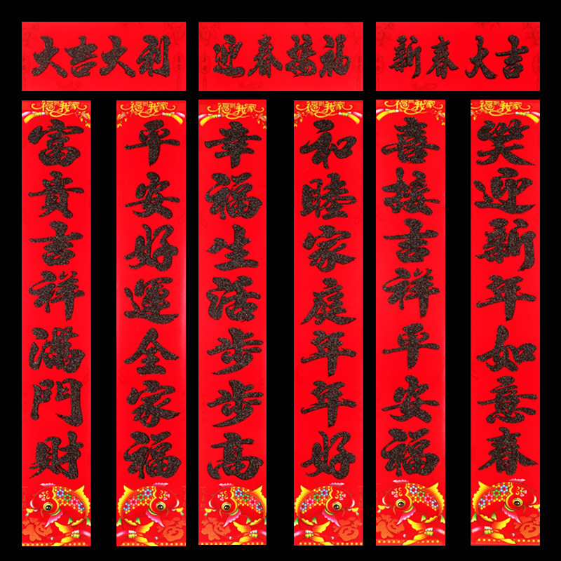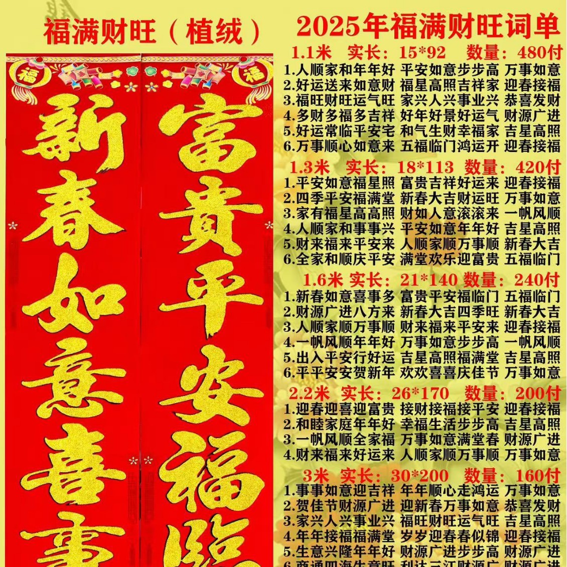 2026年新春对联植绒对联烫金对联厨房植绒福字门贴立体福字厂家