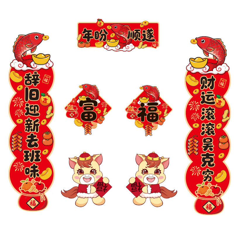 创意新年春节小对联手机diy装饰对联贴纸不留胶卡通马年手账素材