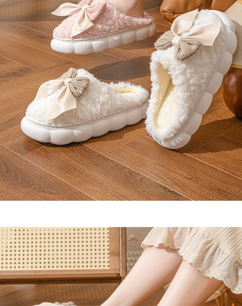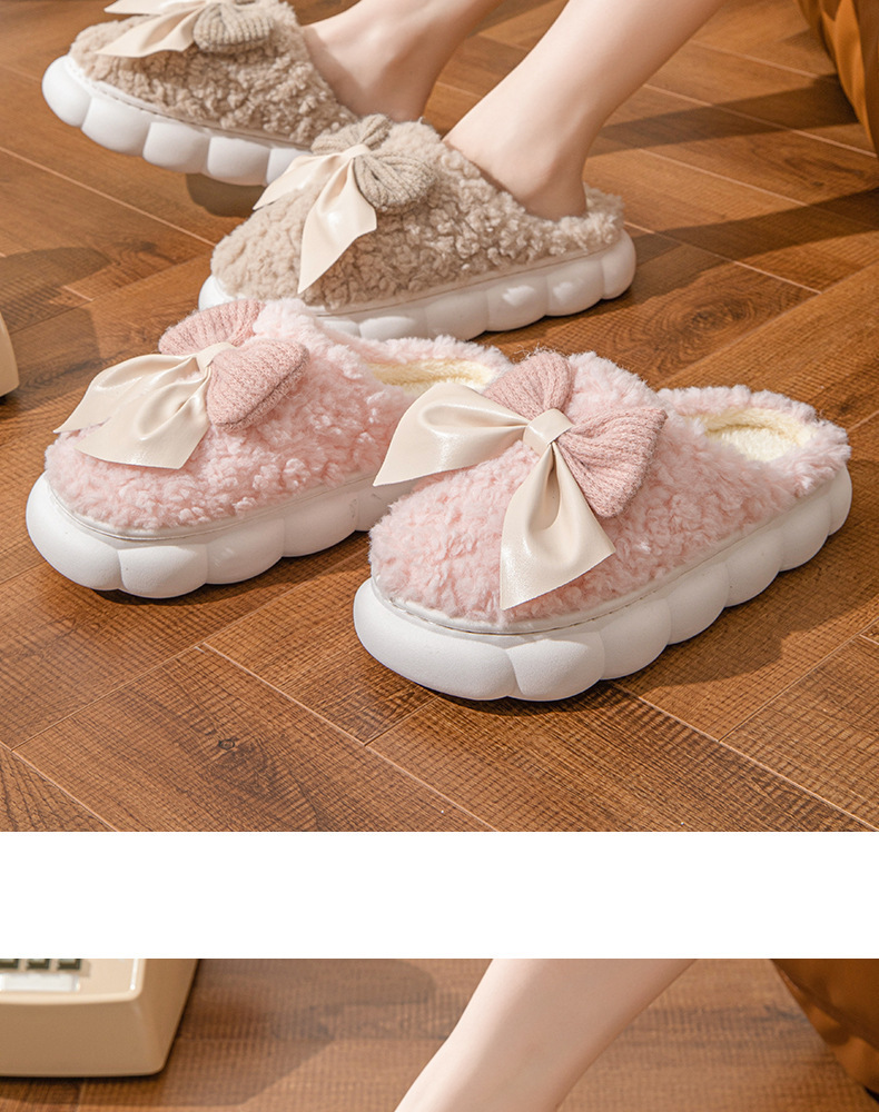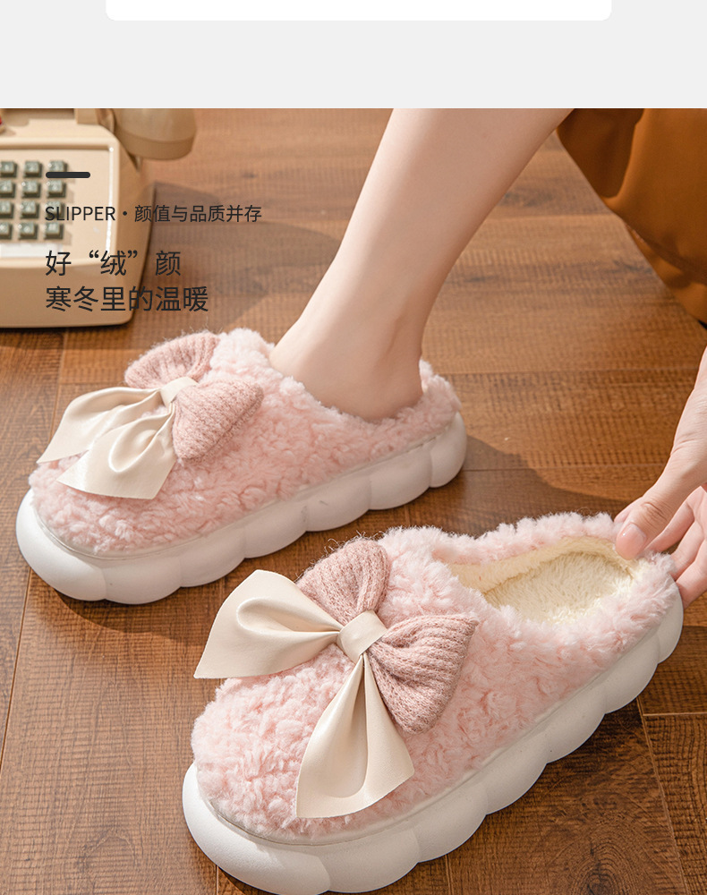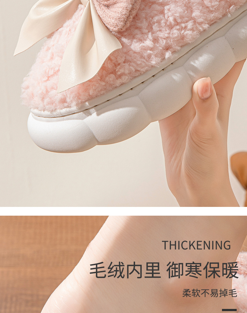 新款秋冬季可爱蝴蝶棉拖鞋女士月子保暖室内家居厚底毛毛拖鞋防滑