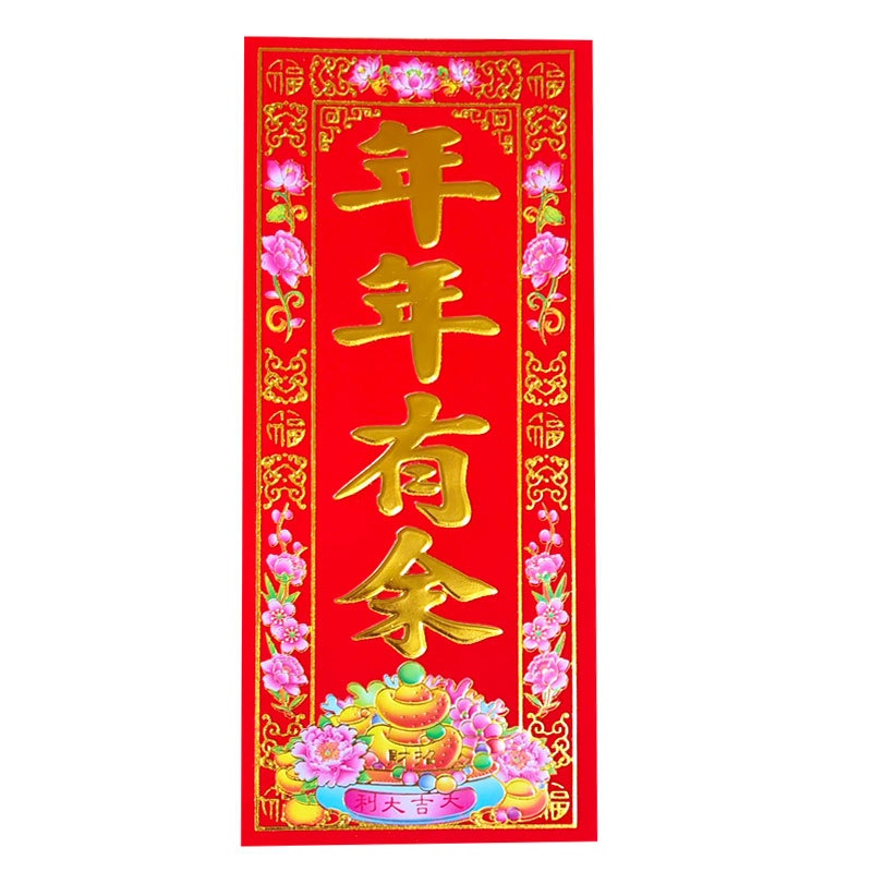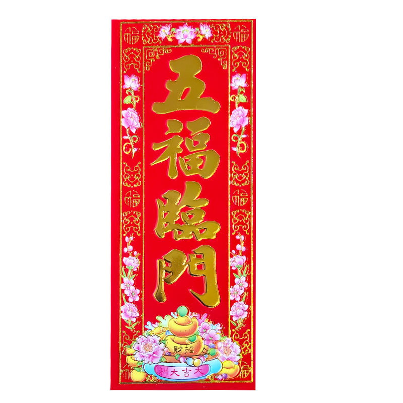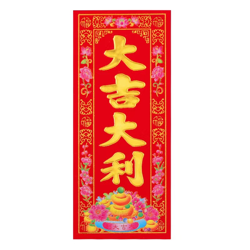2026马年满金植绒珲春竖版春条烫金四字小对联新年门贴画厂家批发