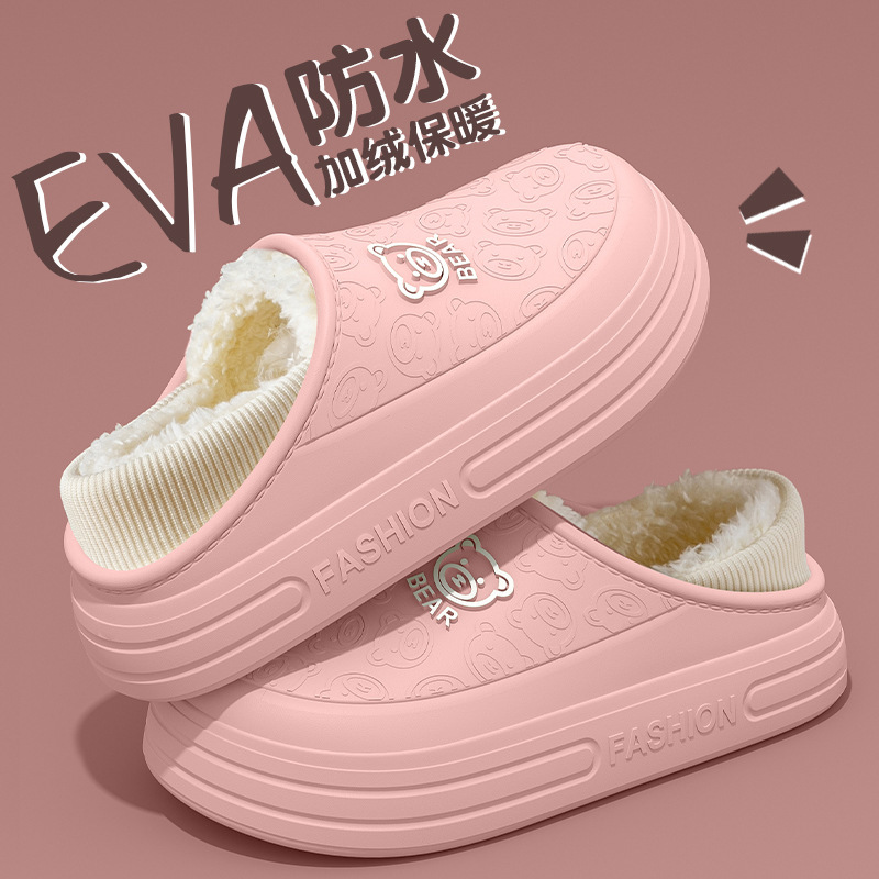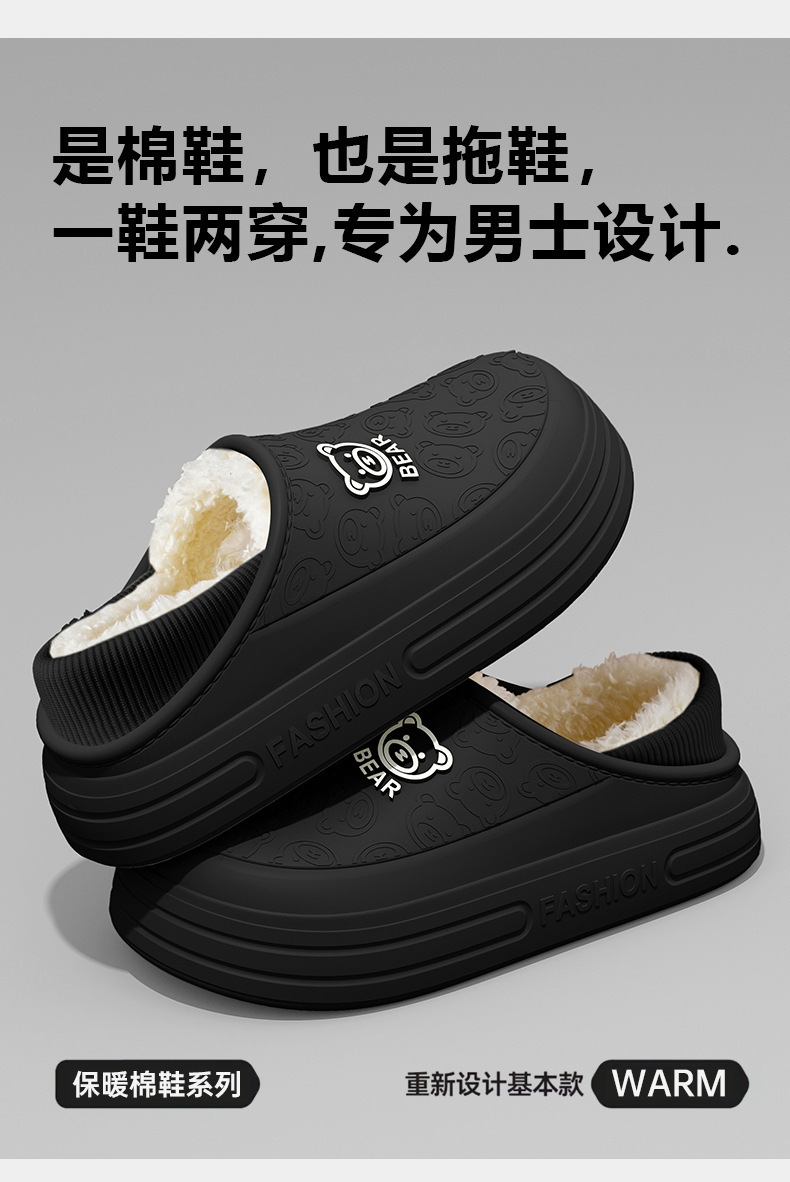 防水棉拖鞋男冬季包跟外穿厚底增高2025新款防滑保暖情侣棉鞋男士