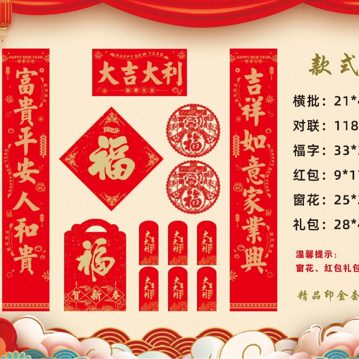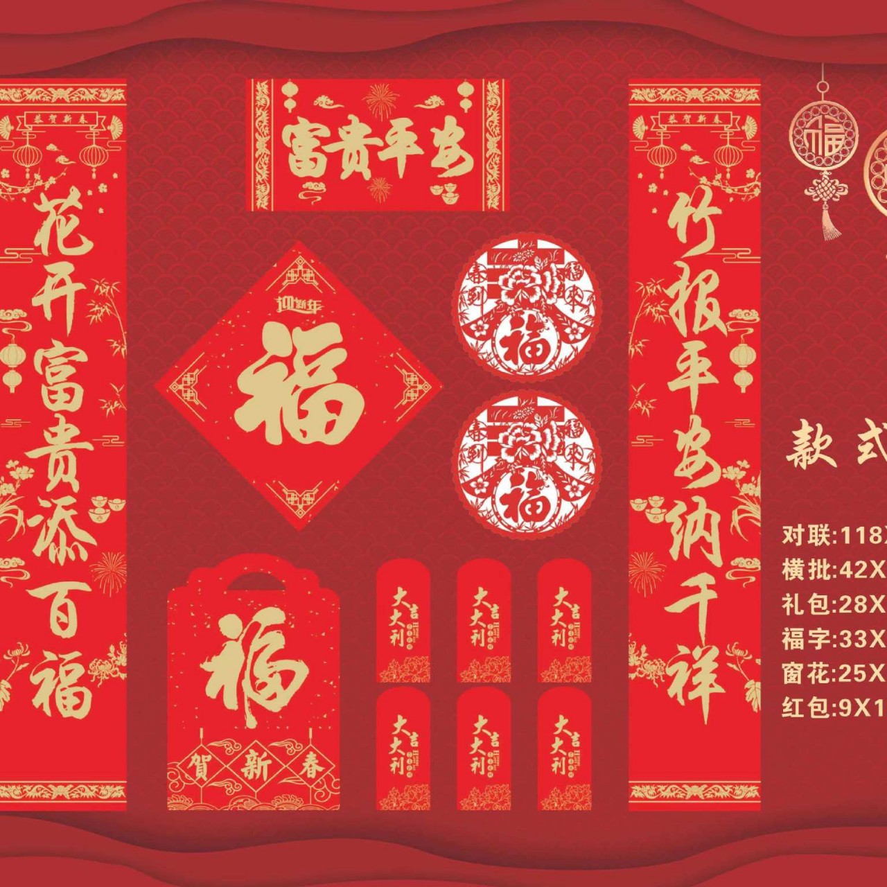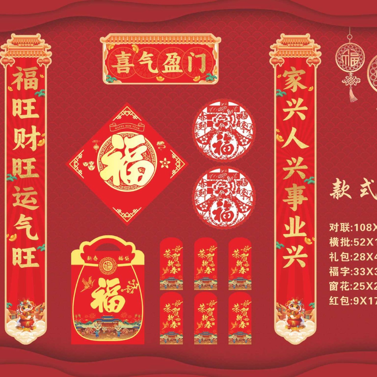 2025蛇年新款广告对联大礼包制定logo现货春联福字套装厂家直销