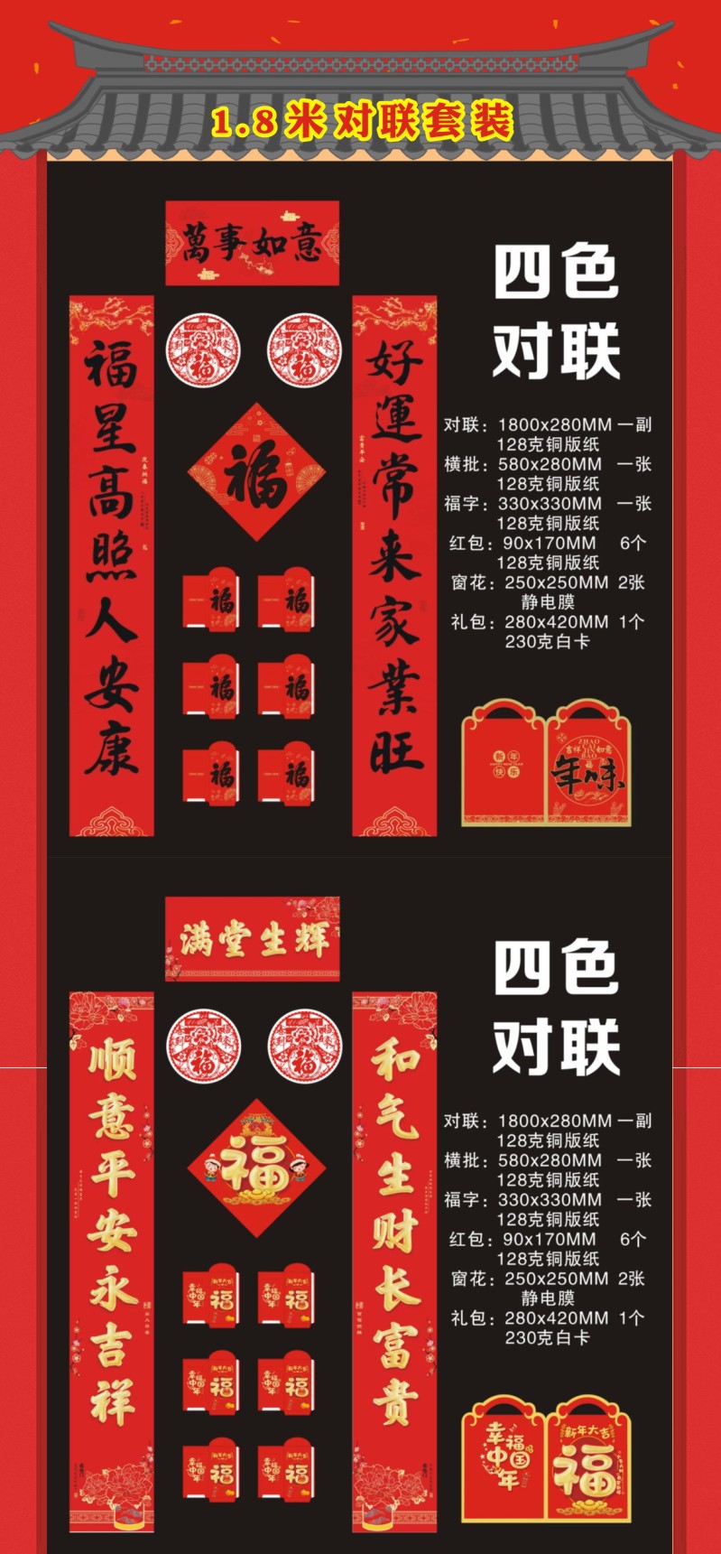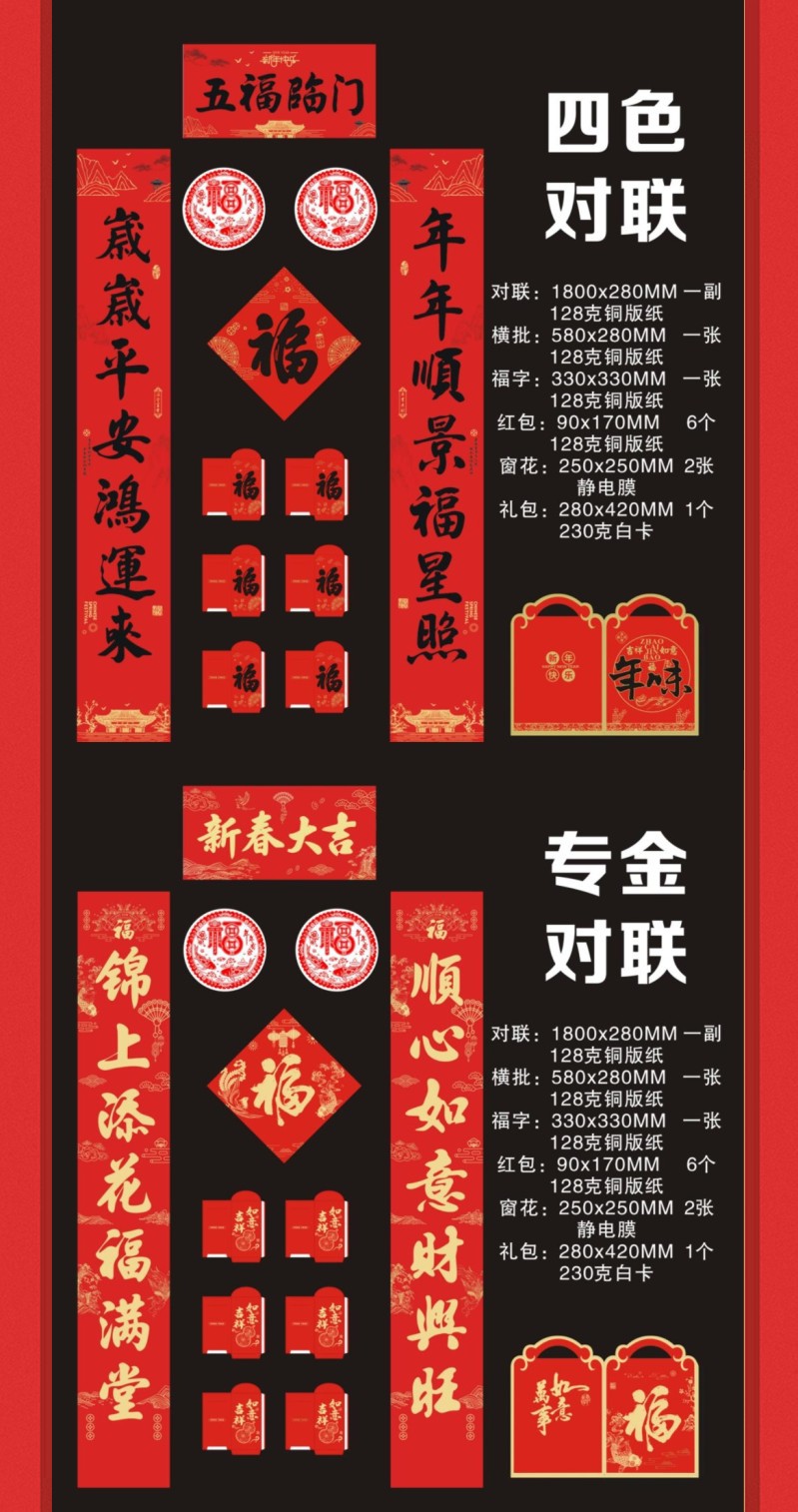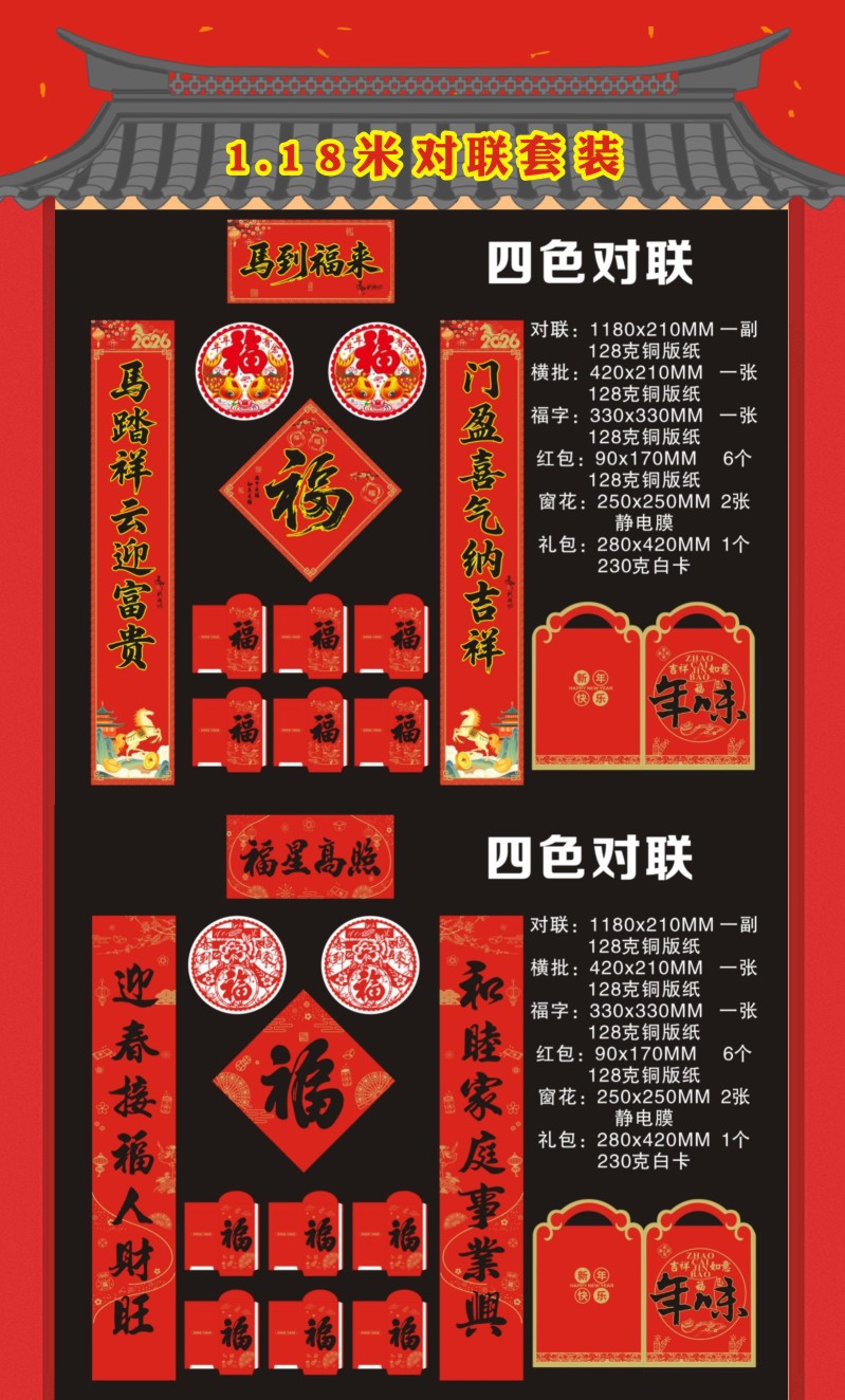 2026马年特色广告对联红包福字大礼包批发银行企业春联加印logo