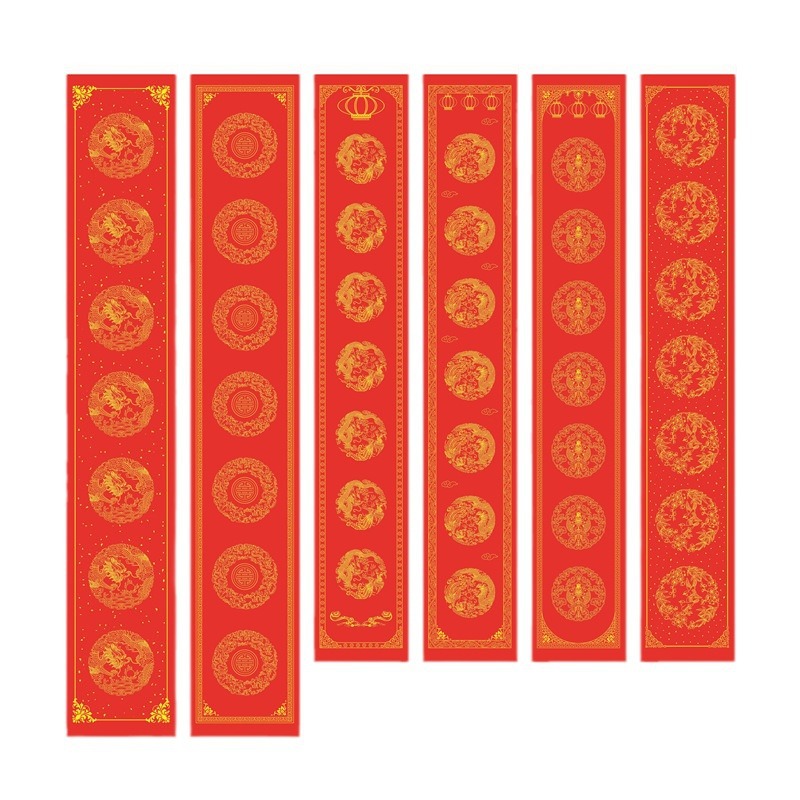 批发加厚全年红空白瓦当对联纸洒金边框手写春联斗方门贴书法对联