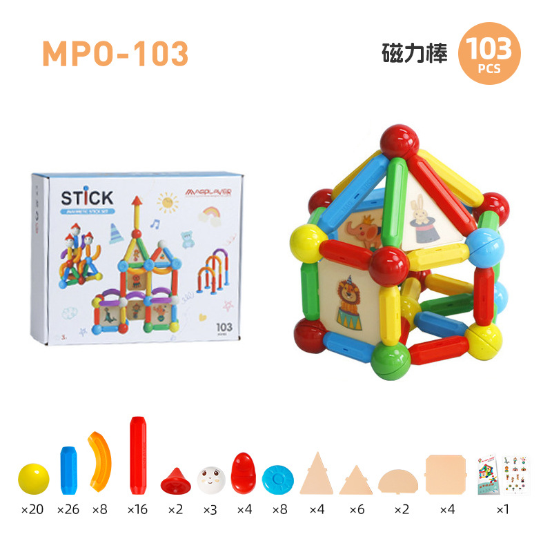 跨境MAGPLAYER彩色磁力棒积木大颗粒儿童益智磁力拼装玩具套装3岁