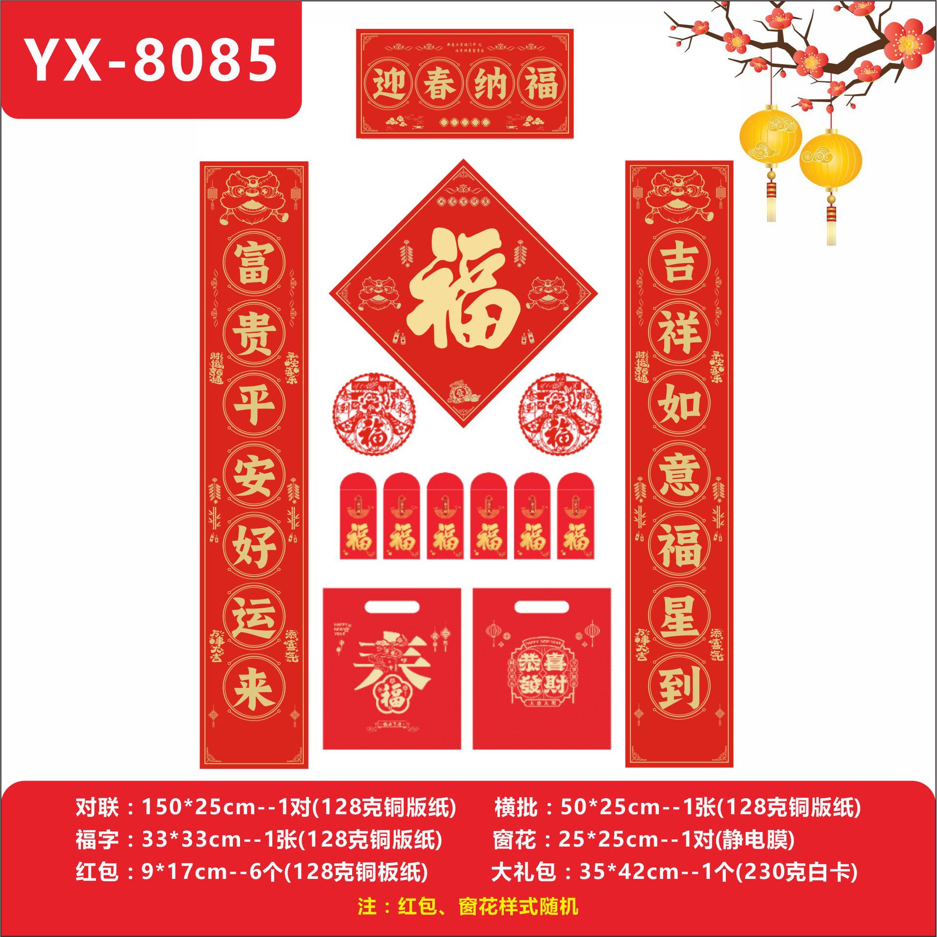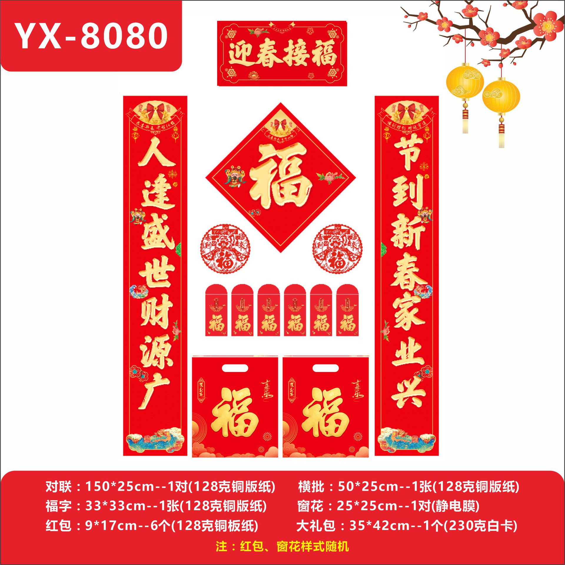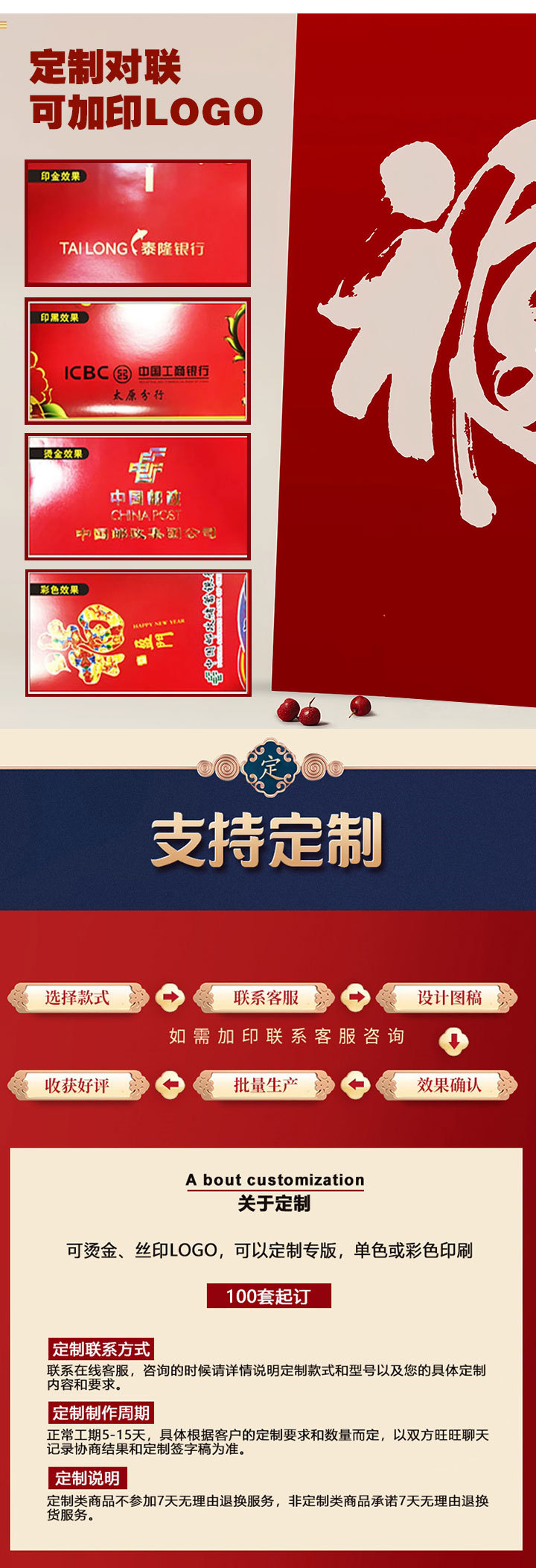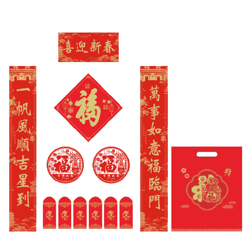 2026马年广告烫金对联定 制logo银行春联礼盒福字大礼包专版印刷