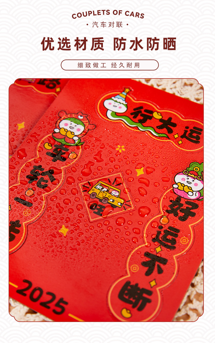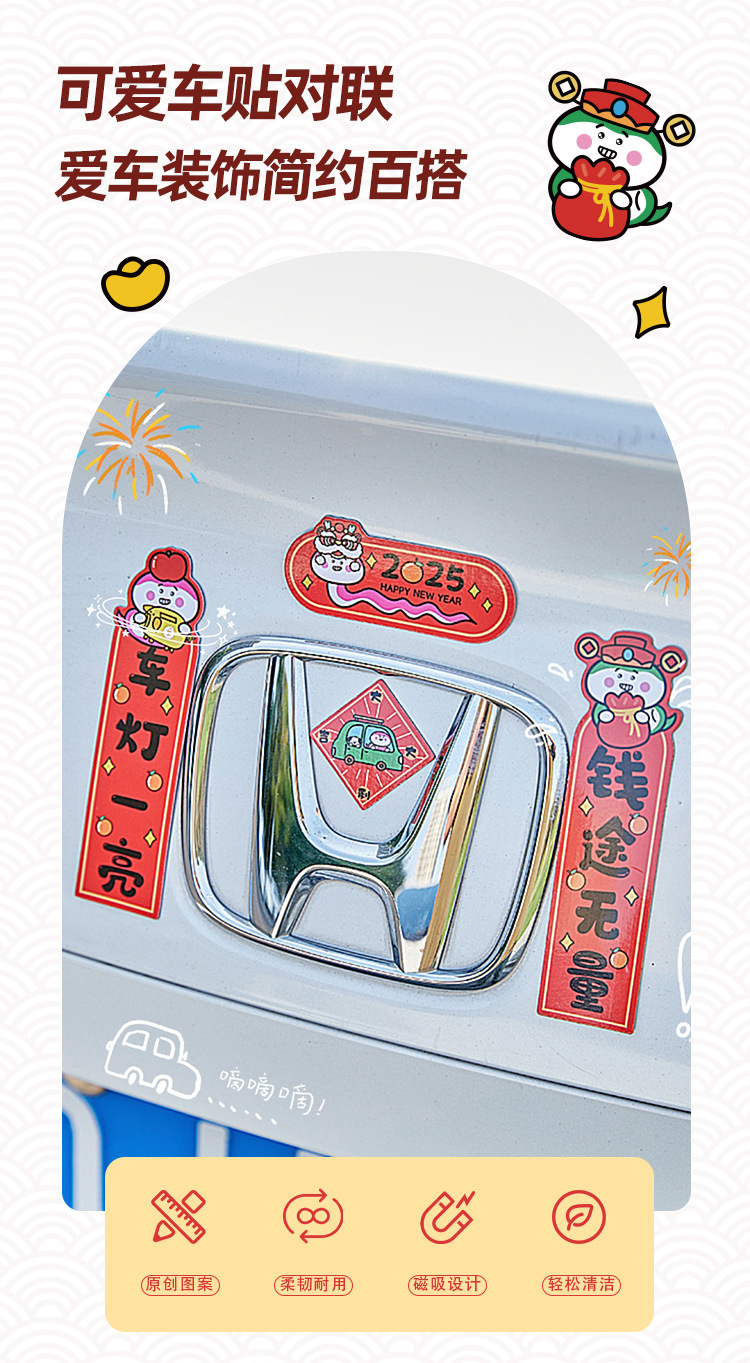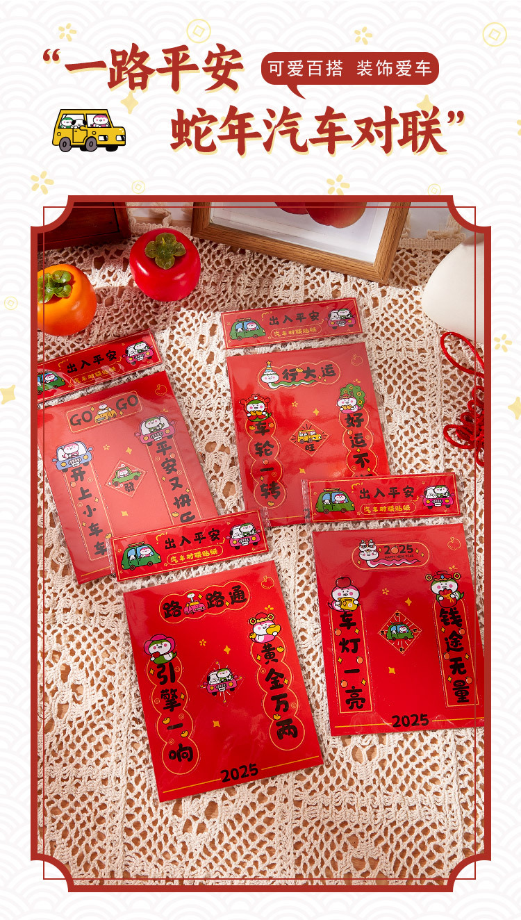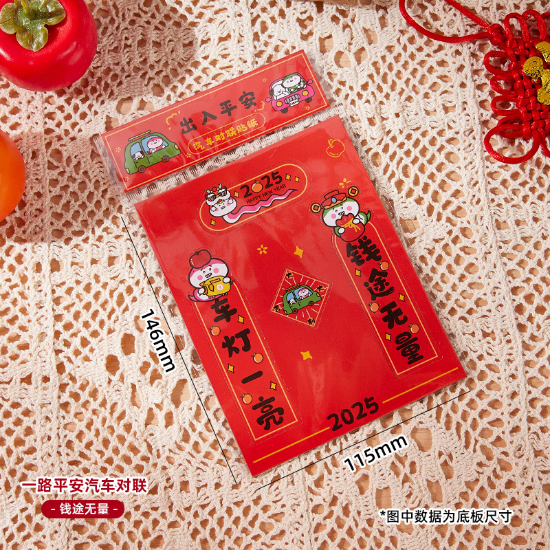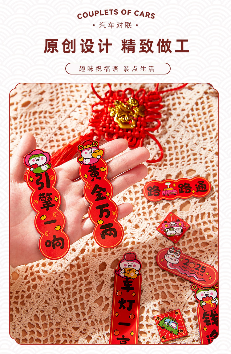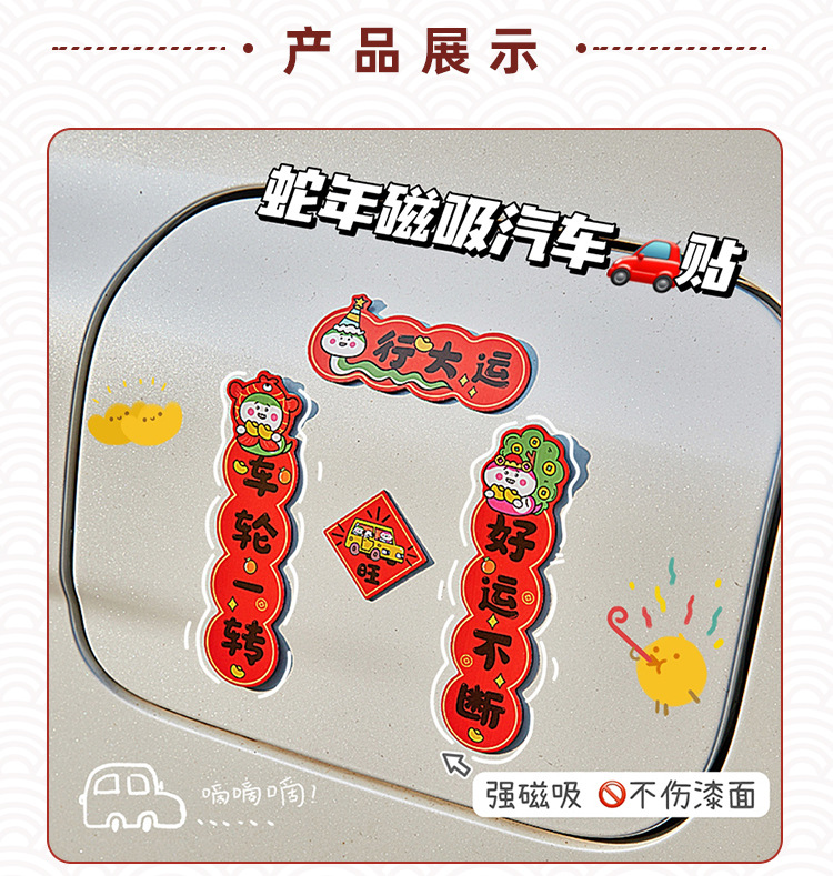 2025年汽车对联一路平安新款磁吸装饰贴纸创意车贴新年迷你春联贴