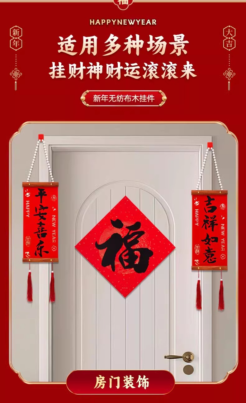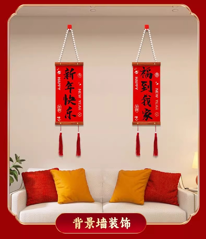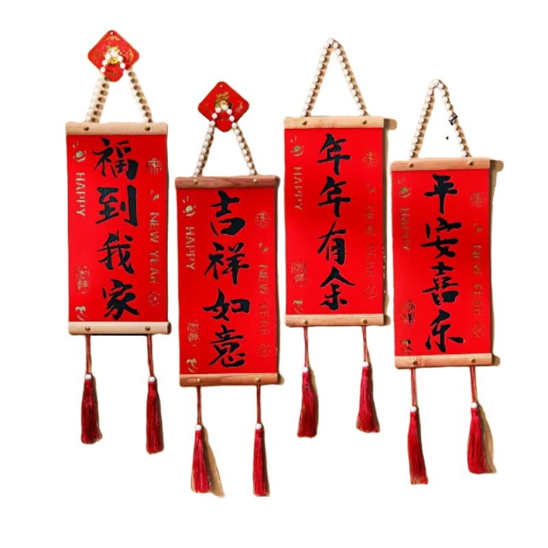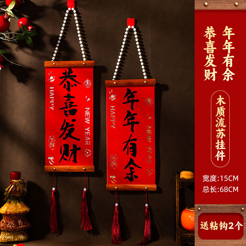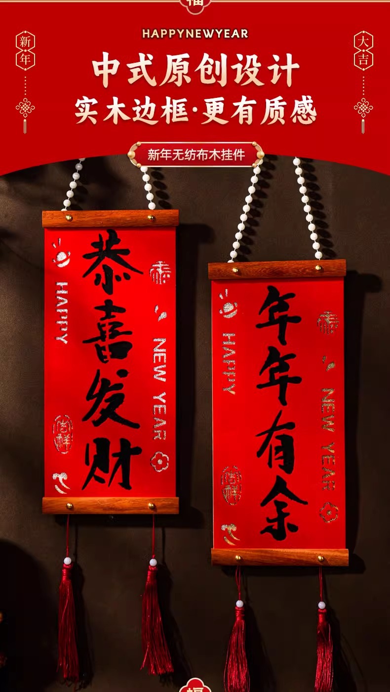 春联挂件新年装饰珍珠实木对联春节家用福字挥春过年小对联入户门