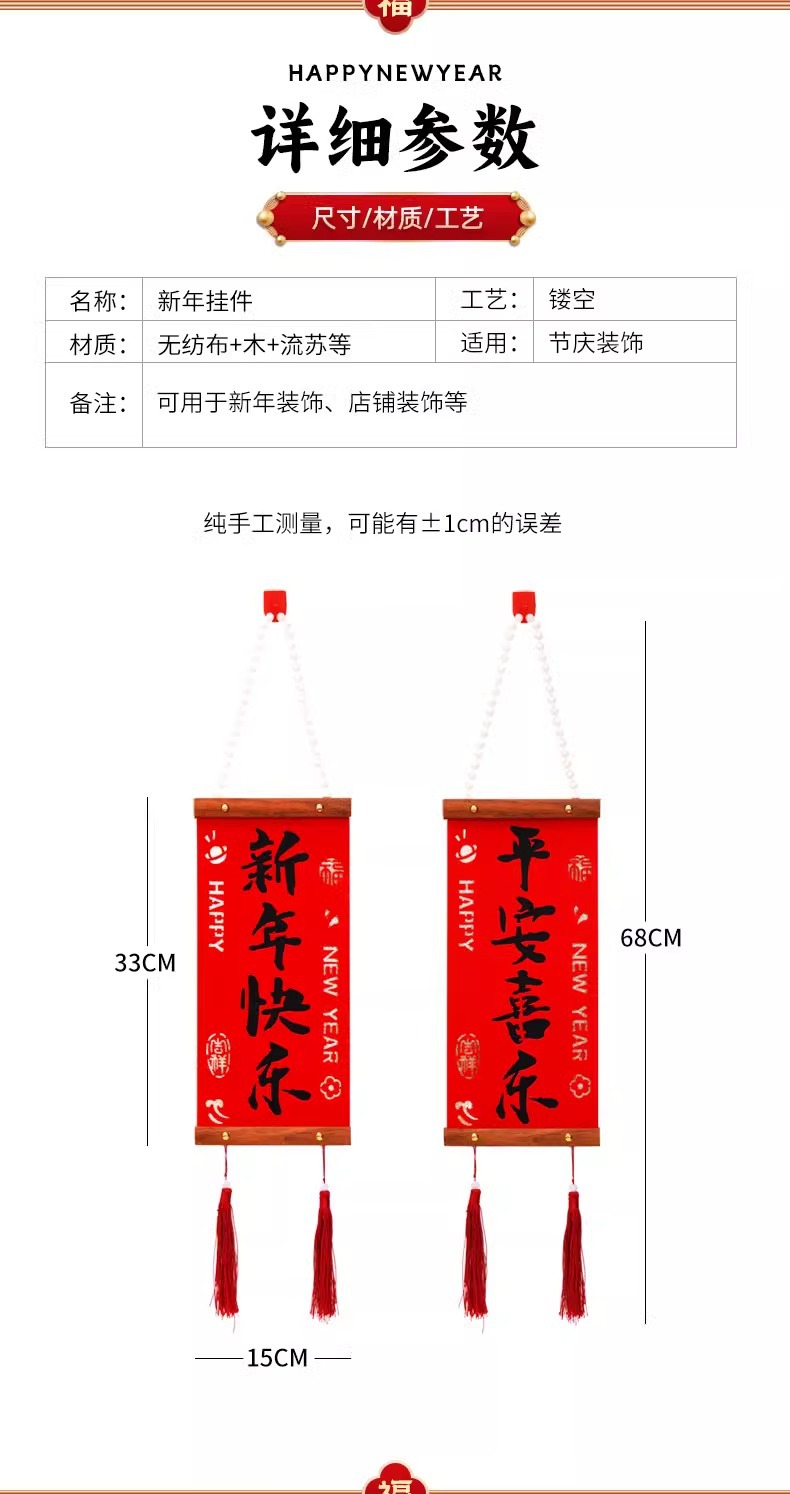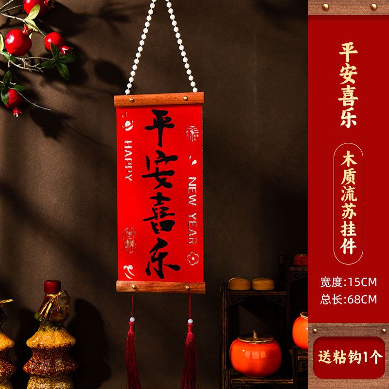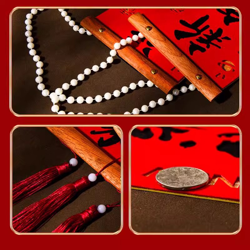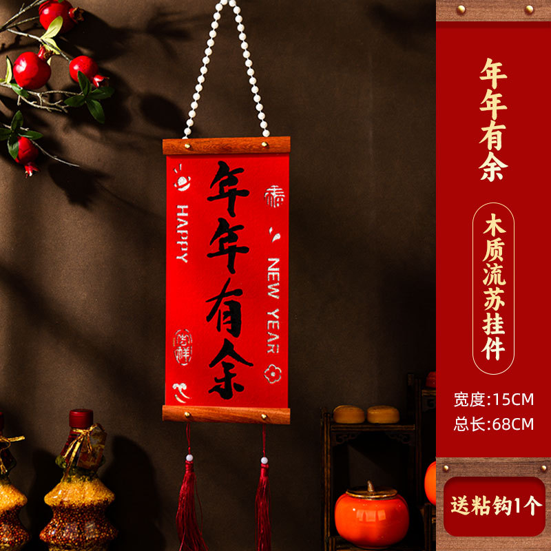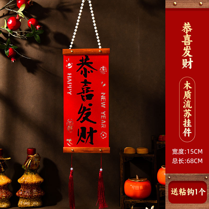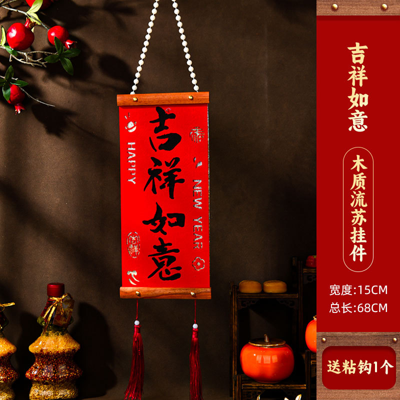 春联挂件新年装饰珍珠实木对联春节家用福字挥春过年小对联入户门
