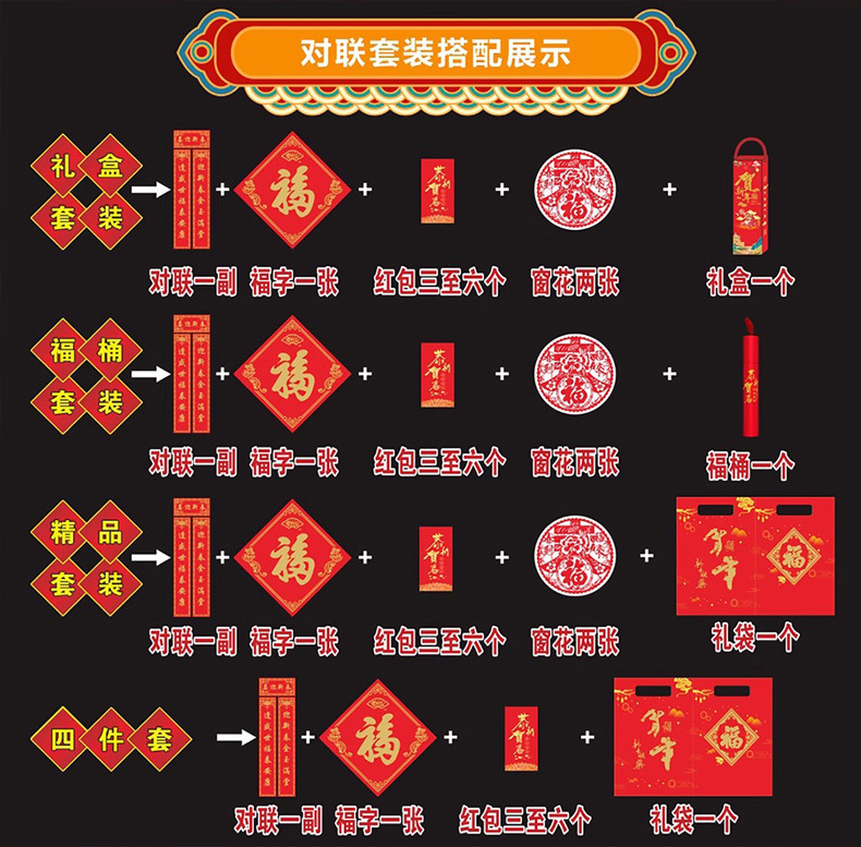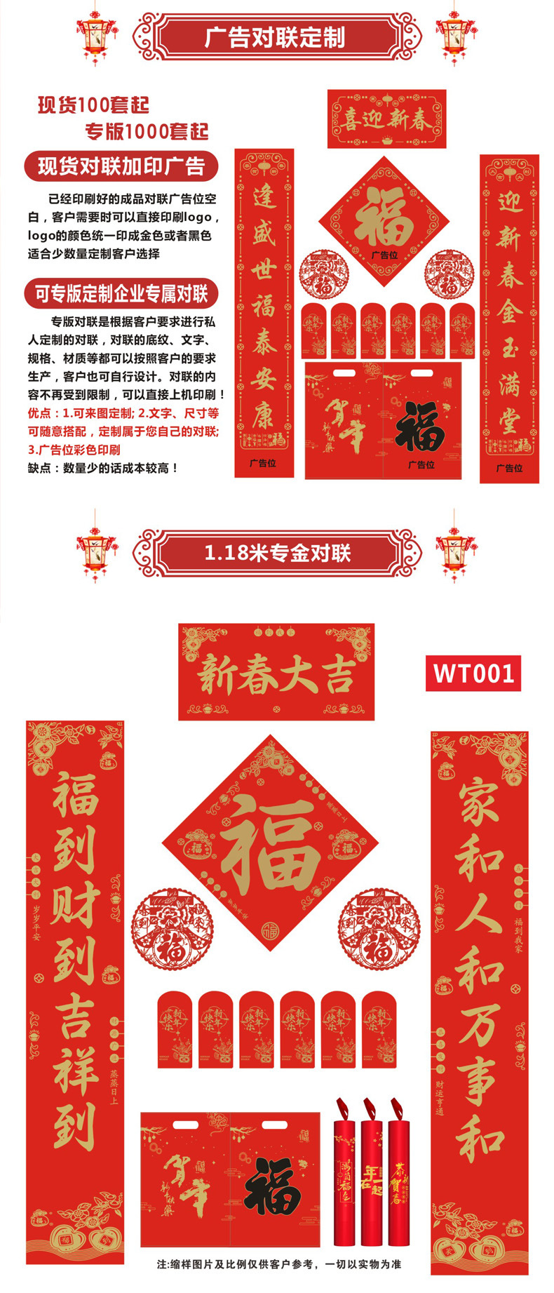 2026年广告对联定制企业银行烫金春联大礼包定做福字红包印logo