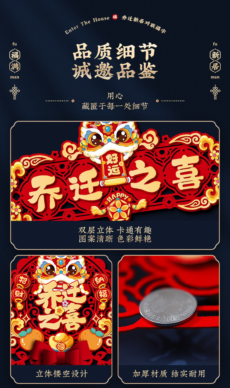 磁吸乔迁之喜新房装饰新居对联入宅礼物全套搬家入户门布置用品