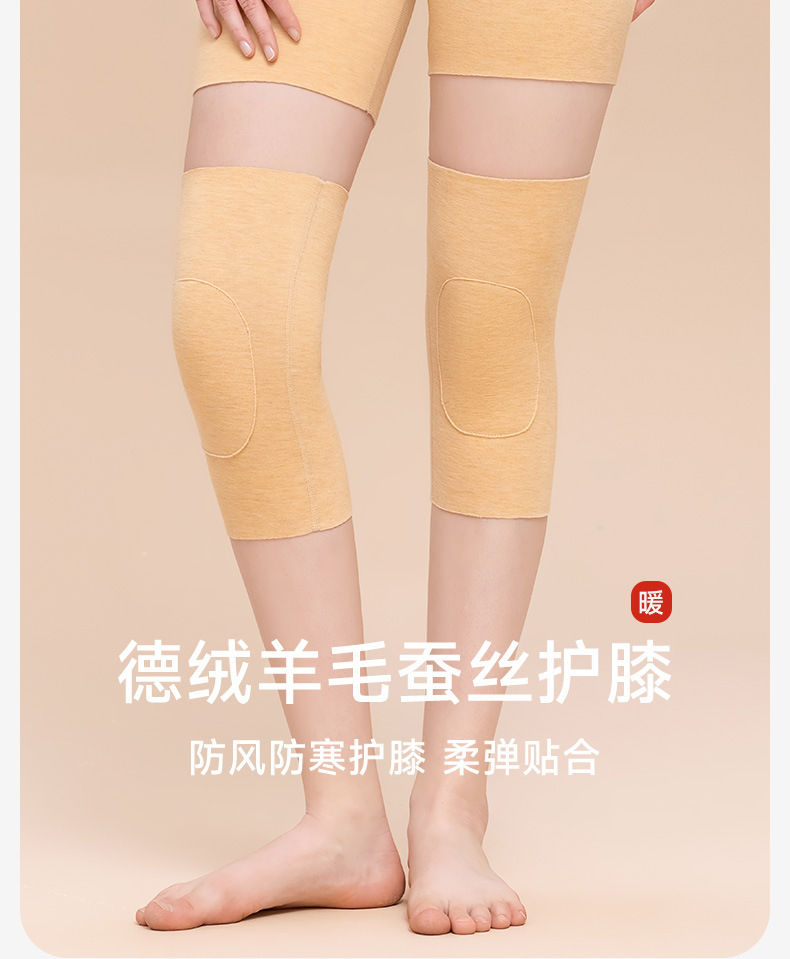 羊毛蚕丝秋冬护膝盖加绒加厚男女德绒发热无痕保暖防寒护关节护腿