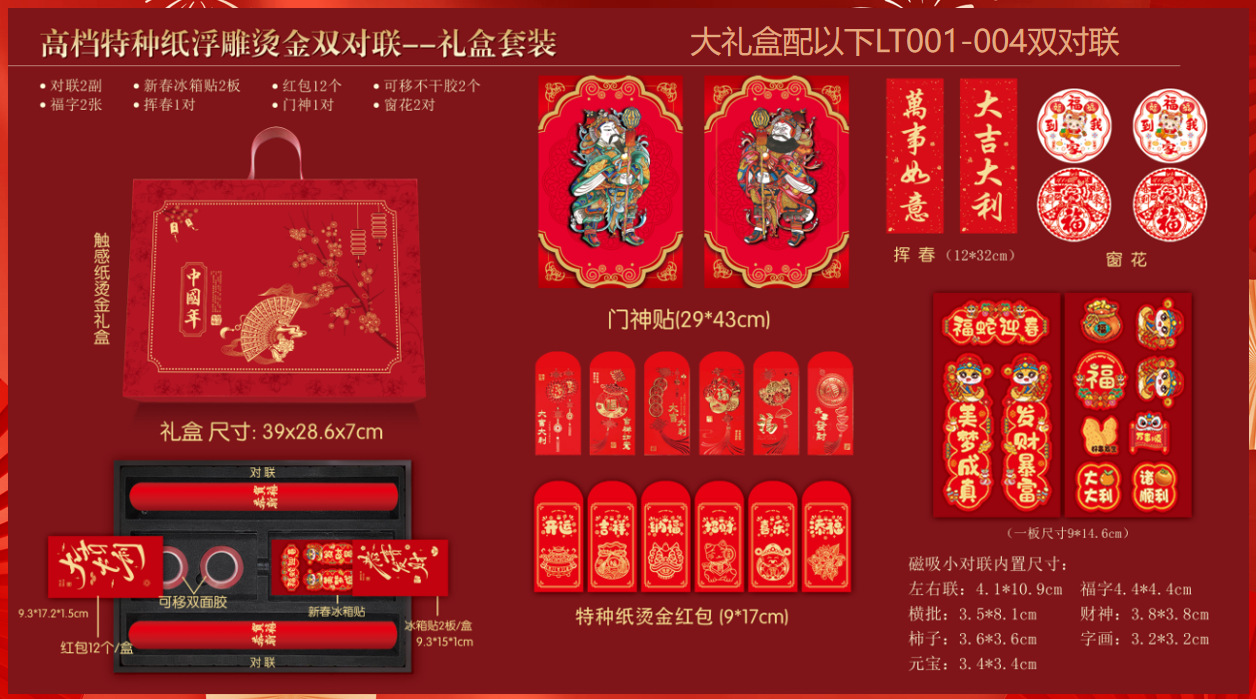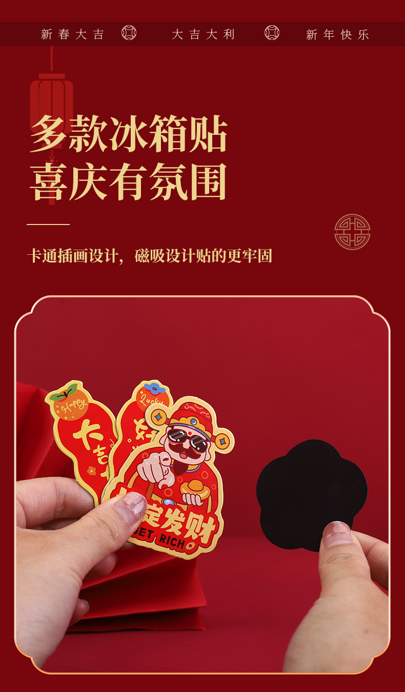 | 壹款:贺年礼盒(磁吸冰箱贴+红包+背胶+手提袋烫双金大礼盒) | USD $3.75 | 49975 piece available |