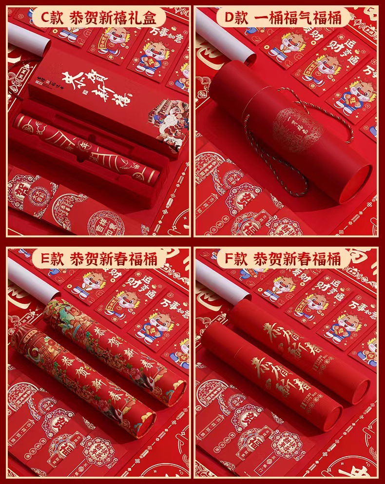 | 肆款:喜迎新春圆筒(特种纸烫金福筒) | USD $1.92 | 50000 piece available |