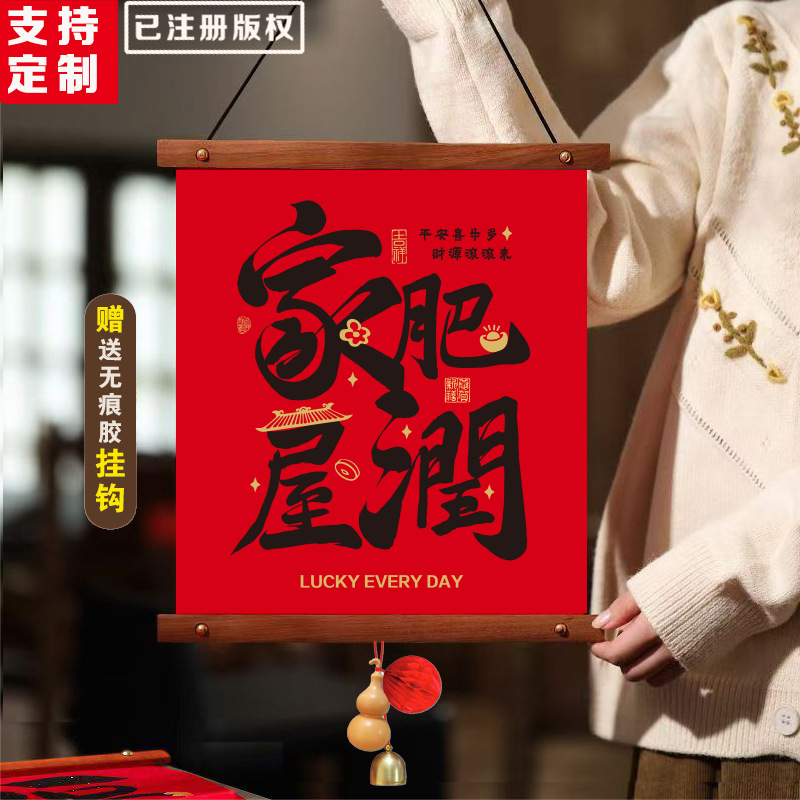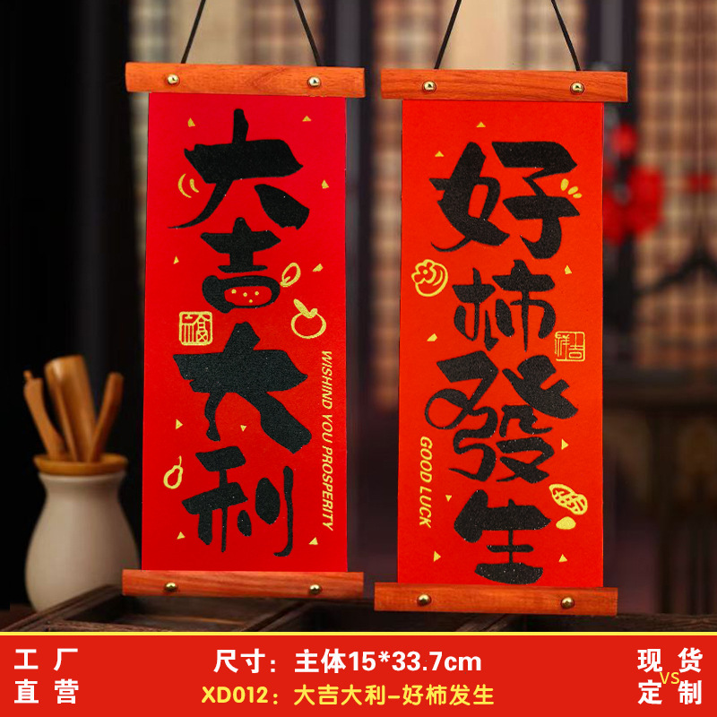 厂家木质挂轴绒布烫金小对联定制做乔迁新年福字入户装饰挥春批发