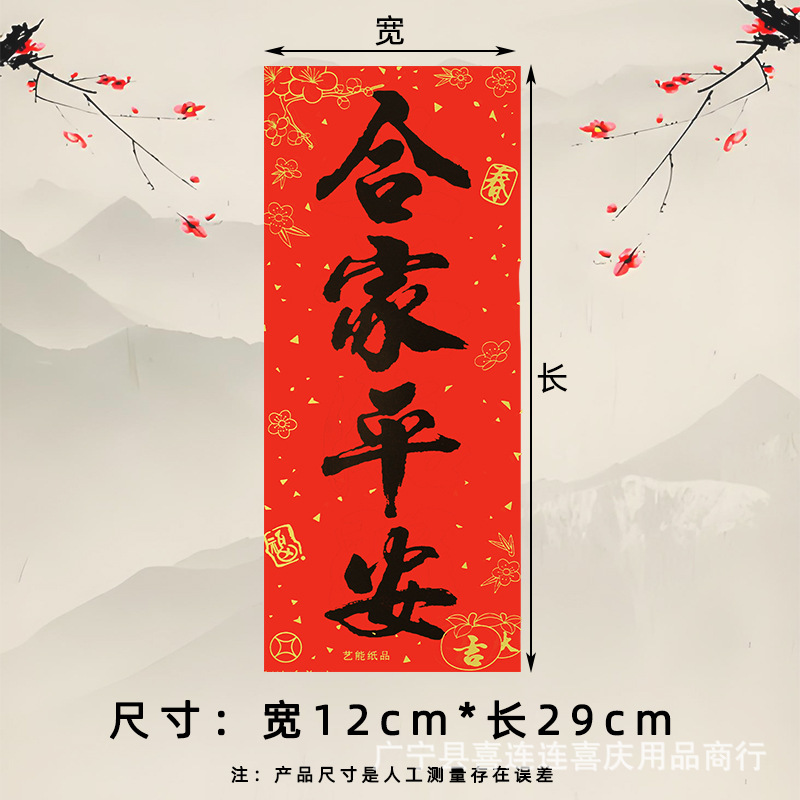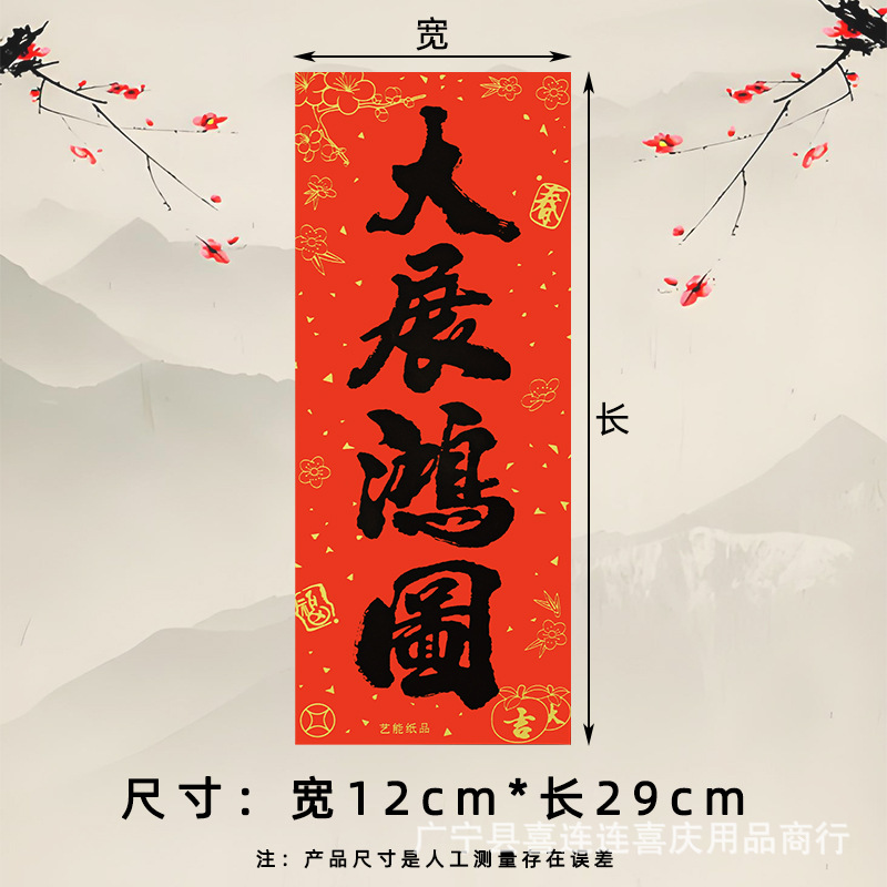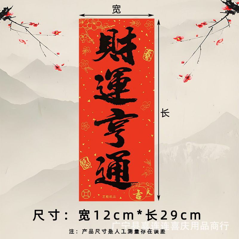 2026马年艺能挥春门贴书法黑字耐晒不腿色门钱四字对联利是钱批发