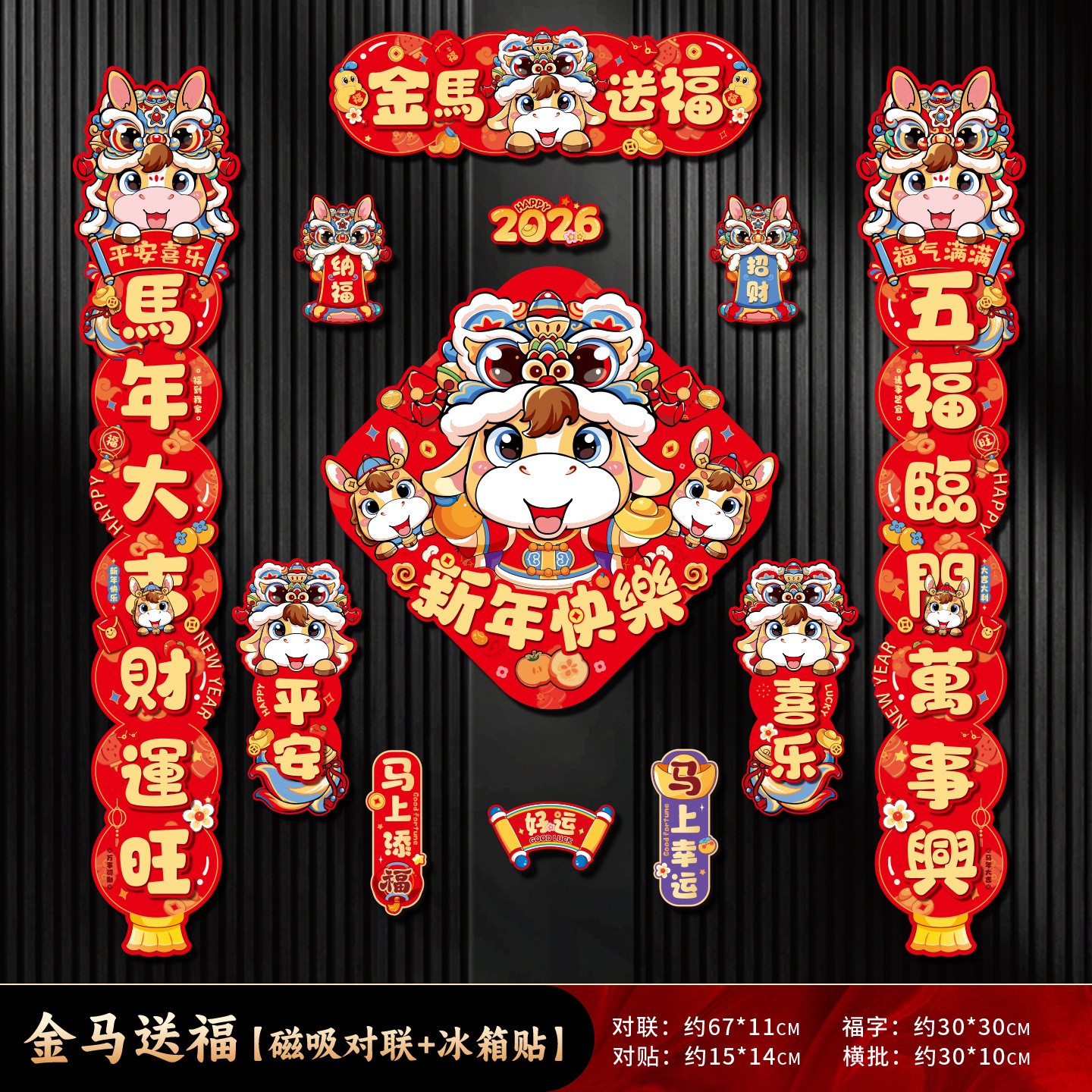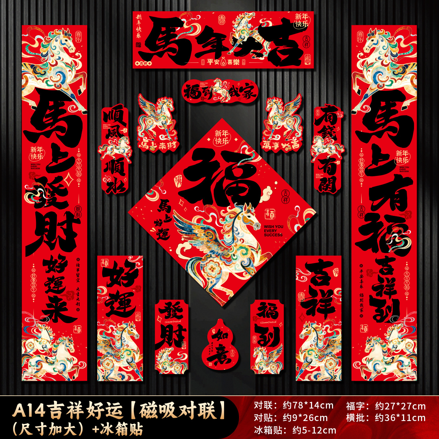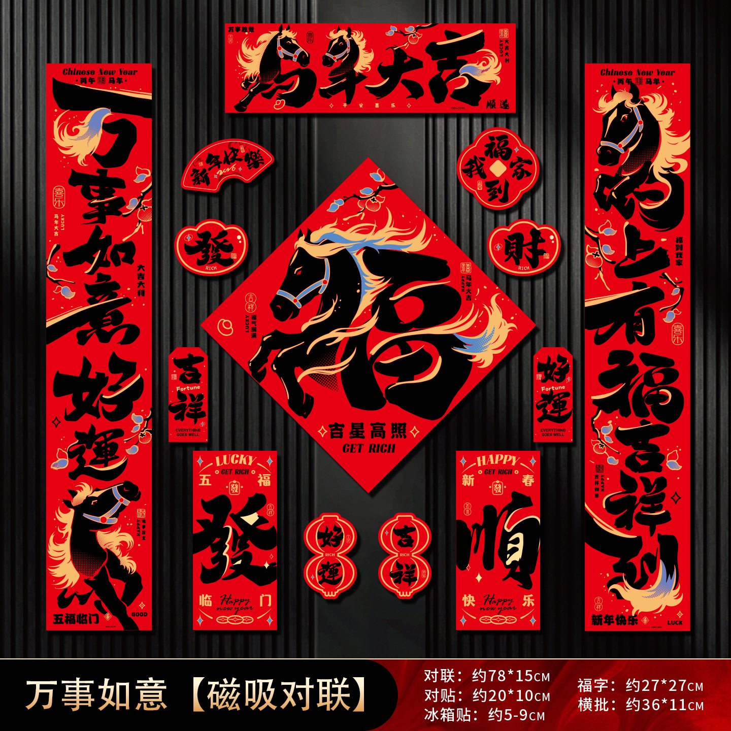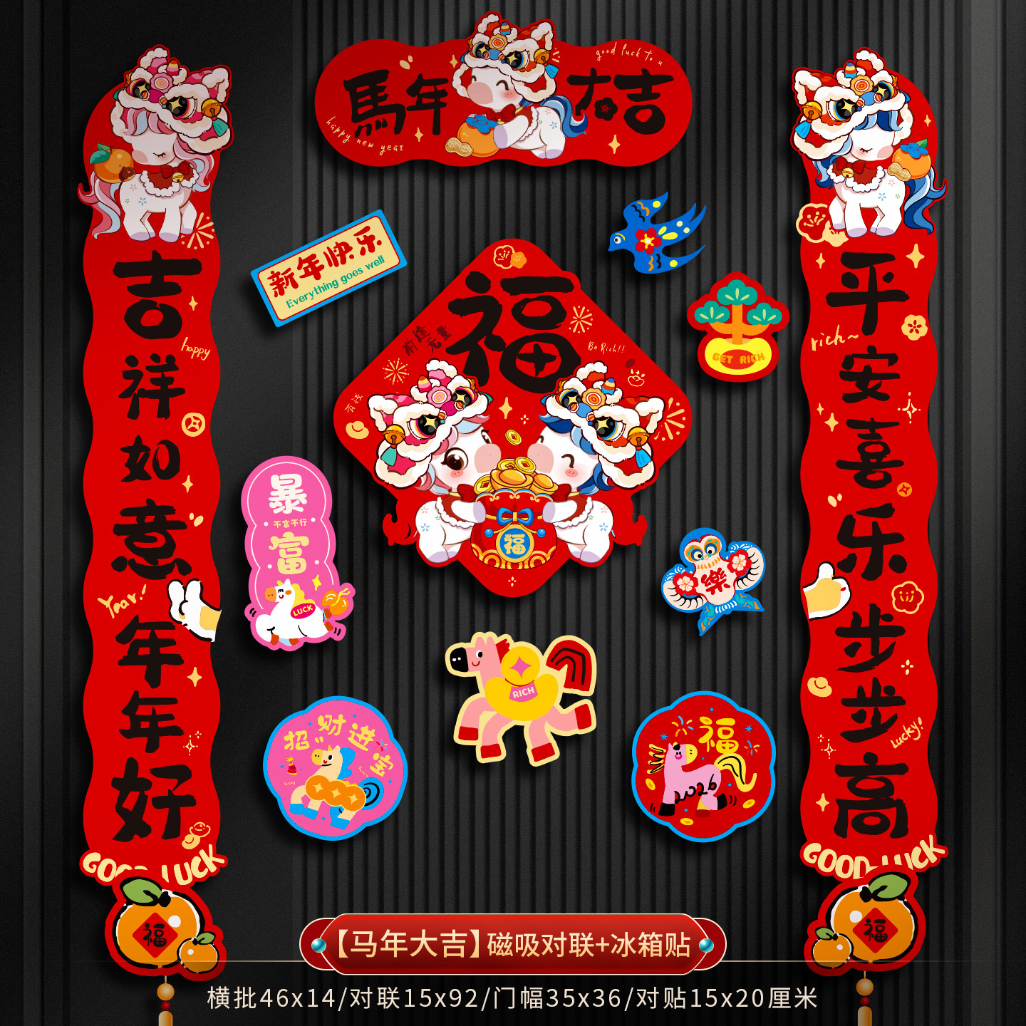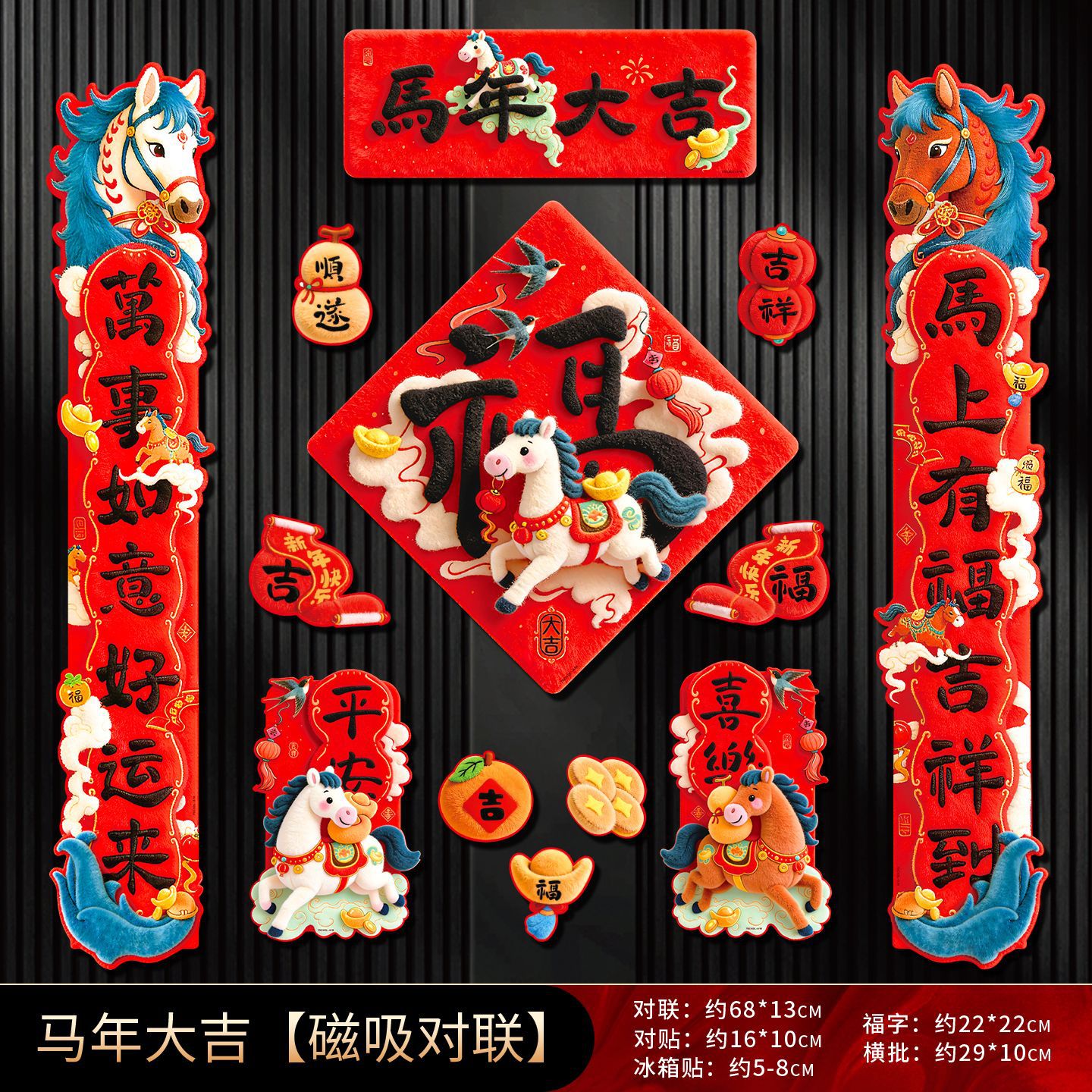 2026新款磁吸对联马年新年创意卡通福字贴春联过年入户门装饰布置