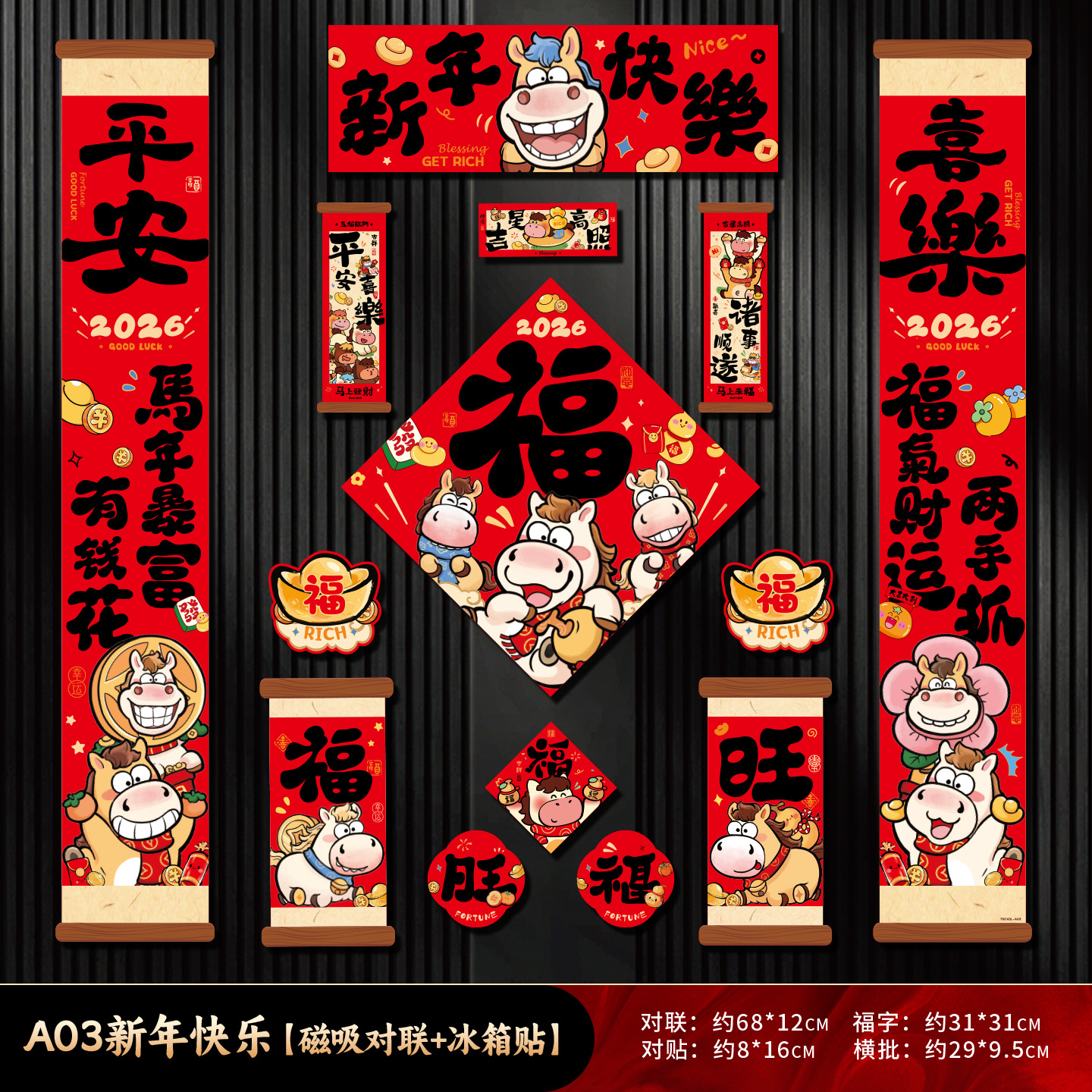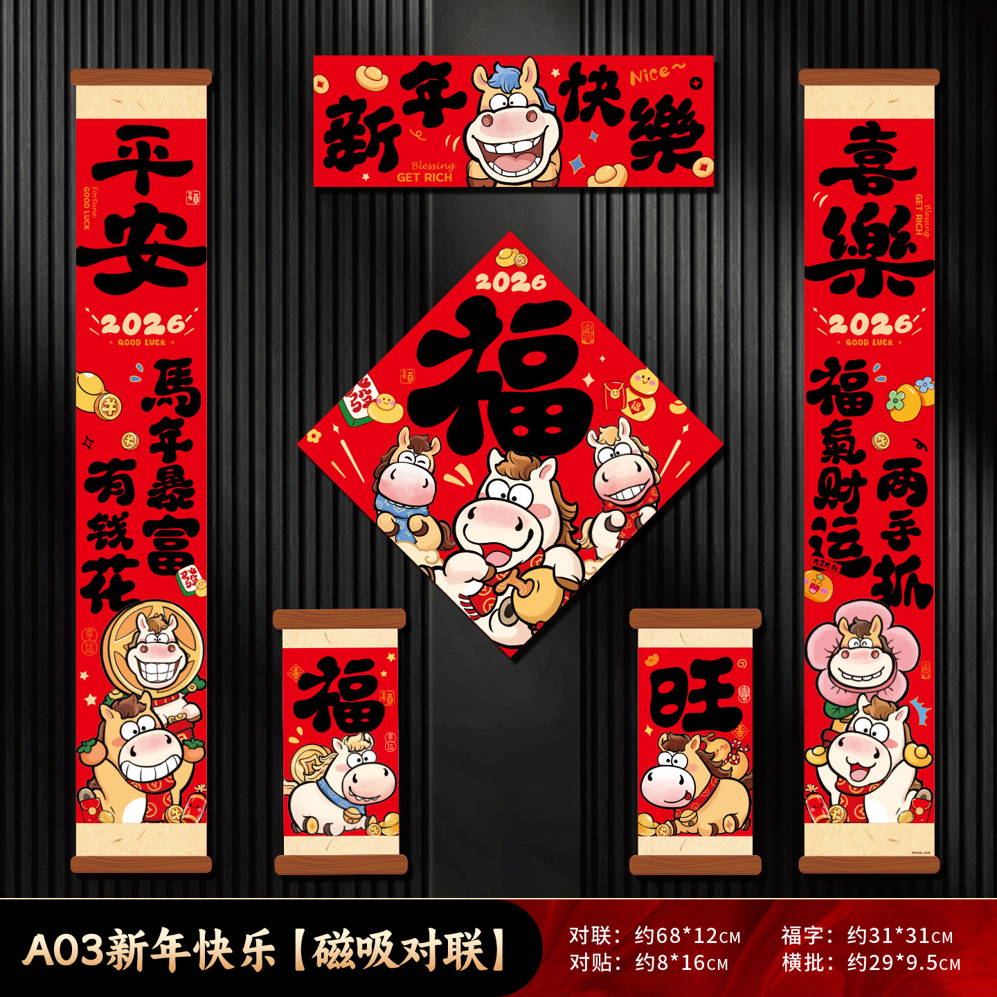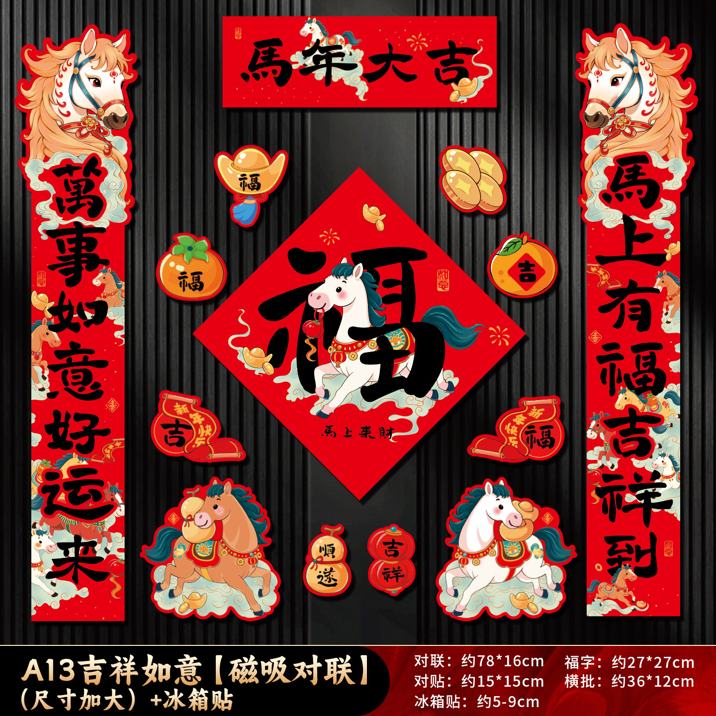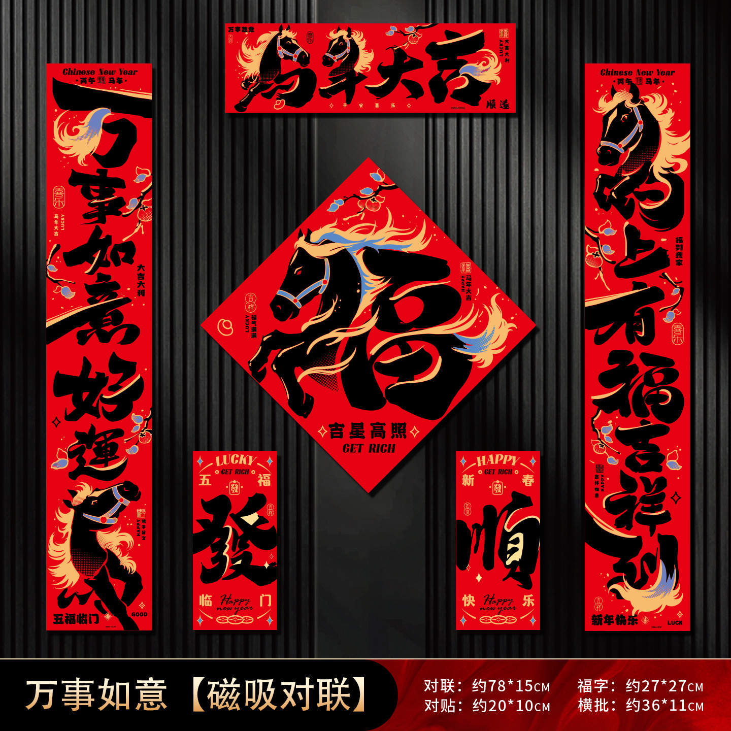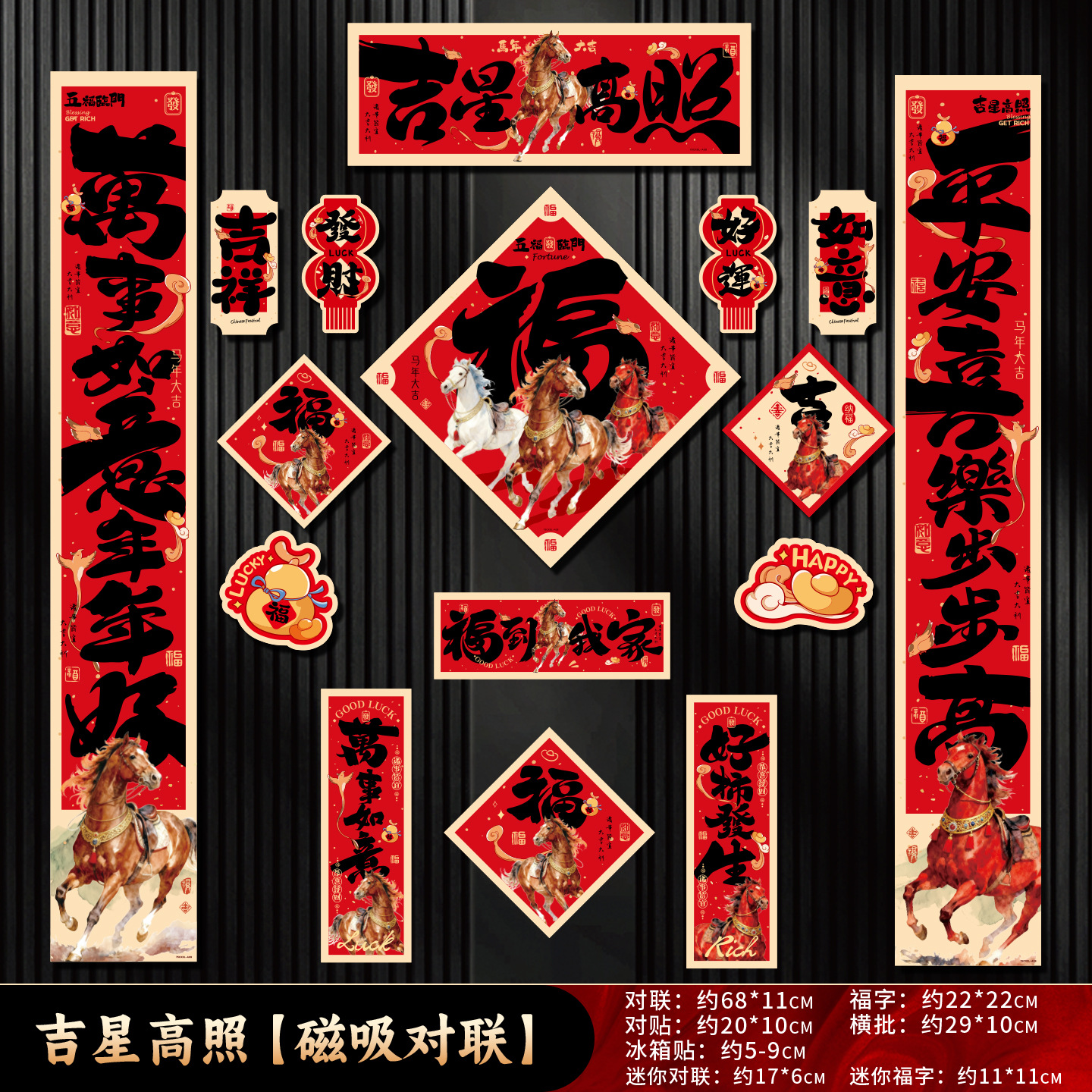 2026新款磁吸对联马年新年创意卡通福字贴春联过年入户门装饰布置