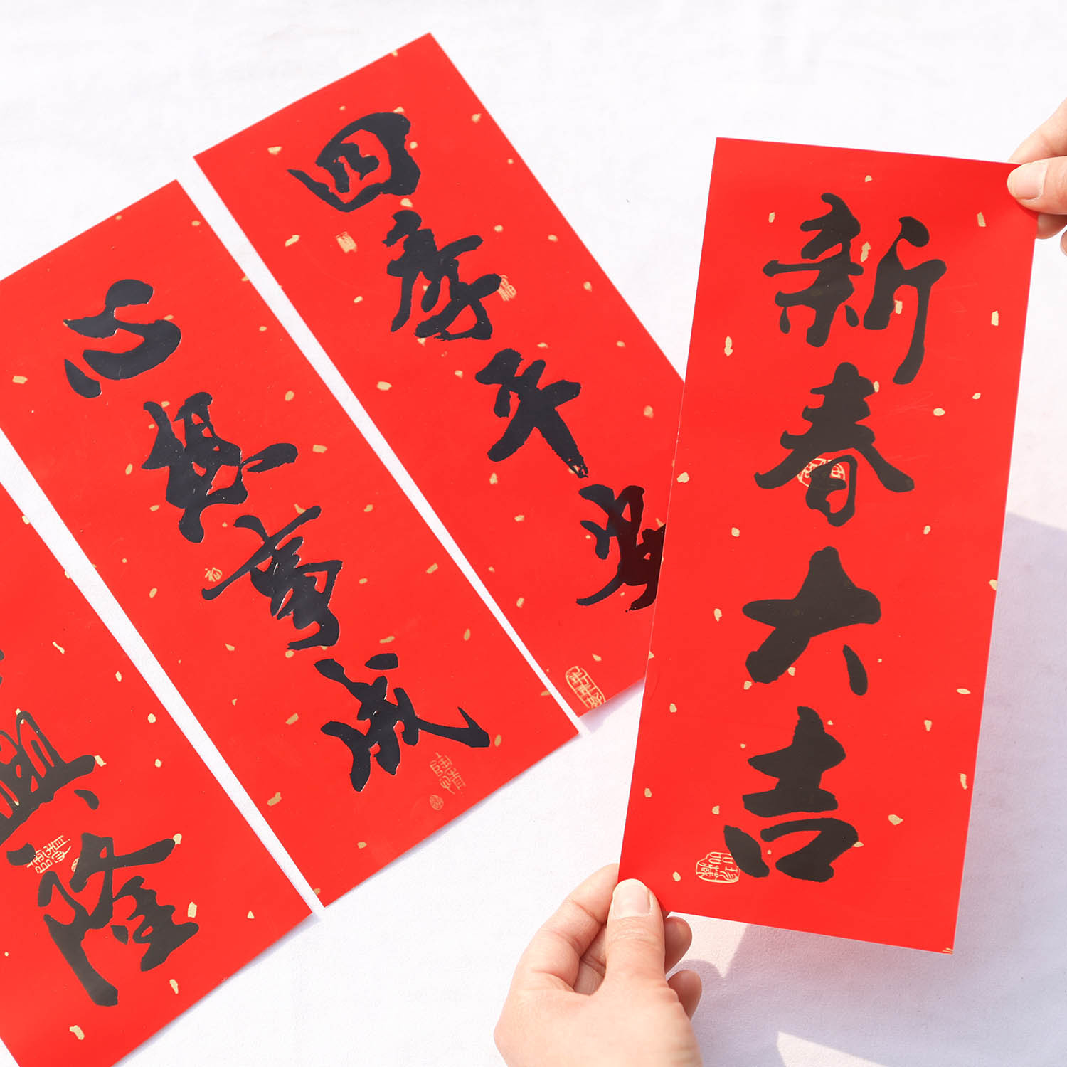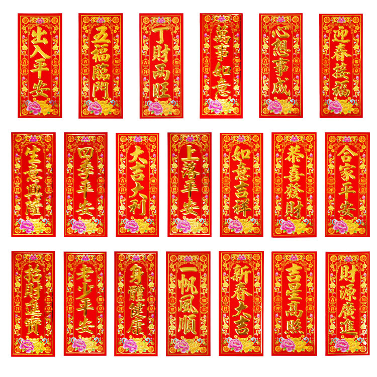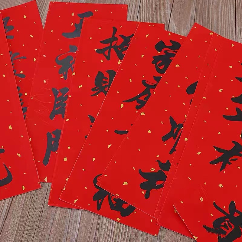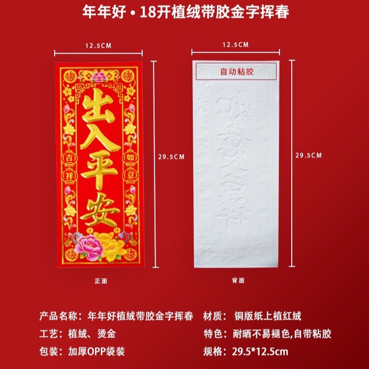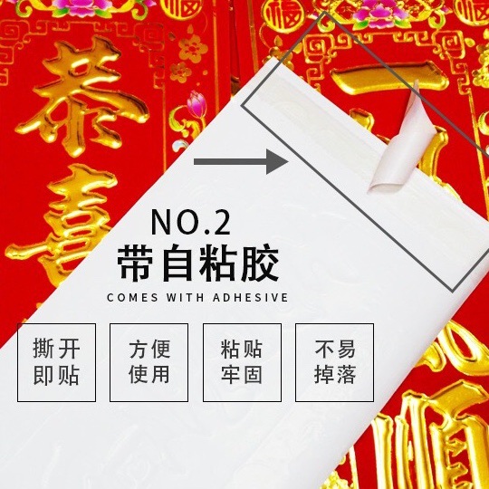 18开小对联自粘辉春四字春辉黑字晖春耐晒全红晖春植绒烫金字挥春