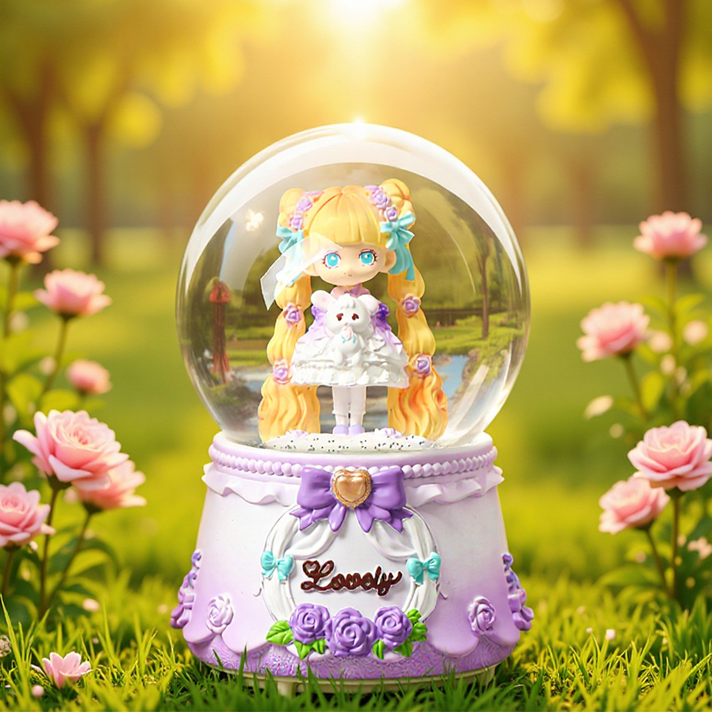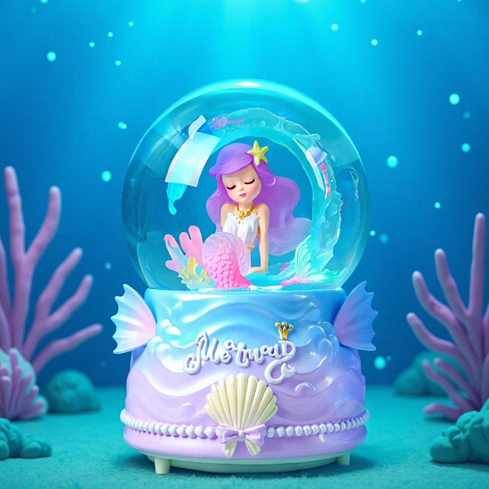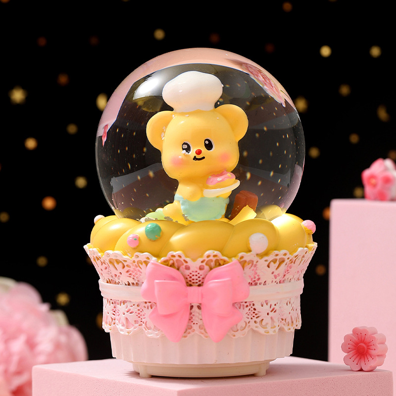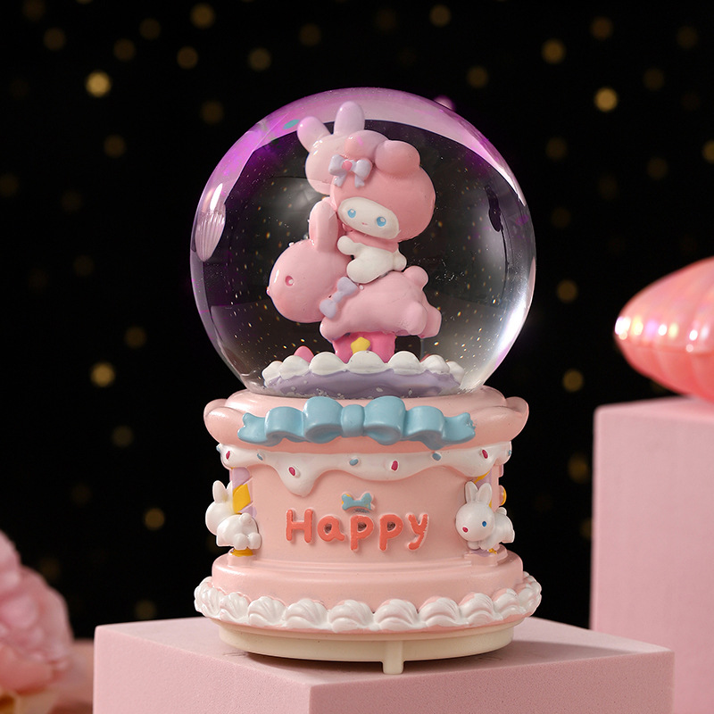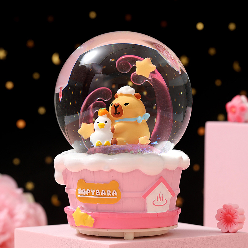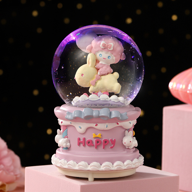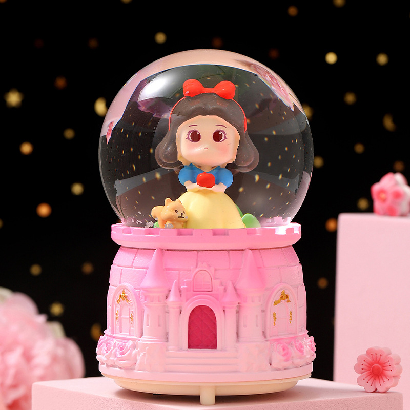 大号水晶球自动飘雪卡通木马摆件创意音乐盒送儿童生日礼物八音盒