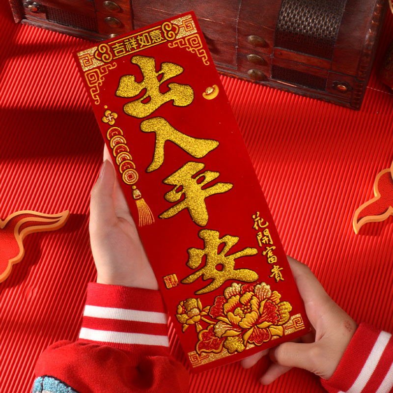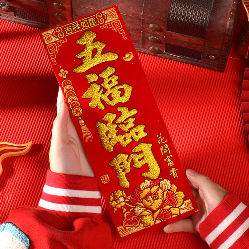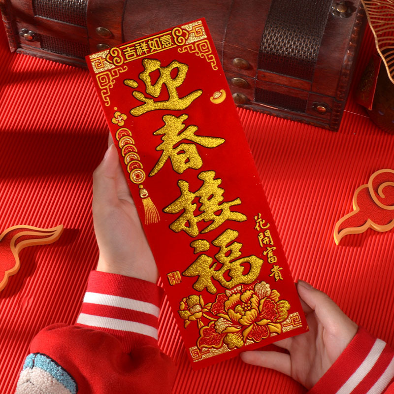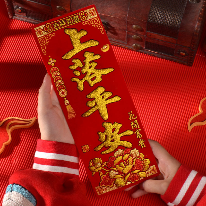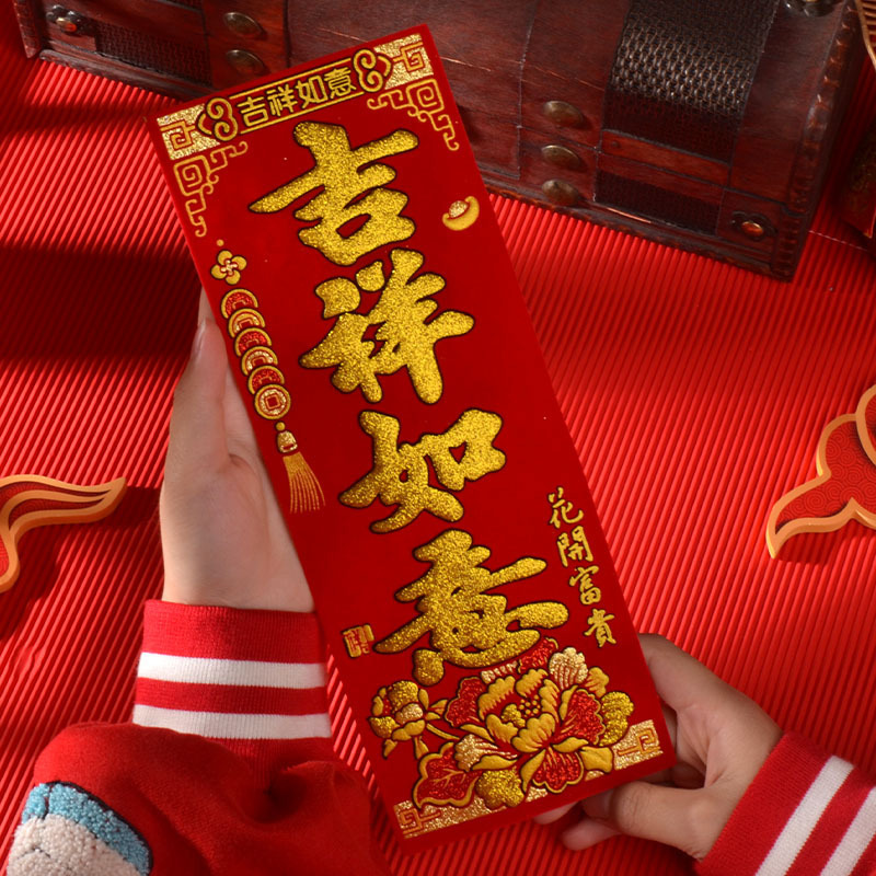 gilding xiaochunhui 2026 horse year chinese new year door head stickers flannel gilding self-adhesive adhesive mini four-word couplet