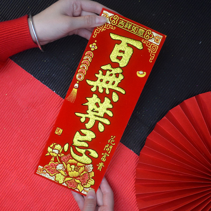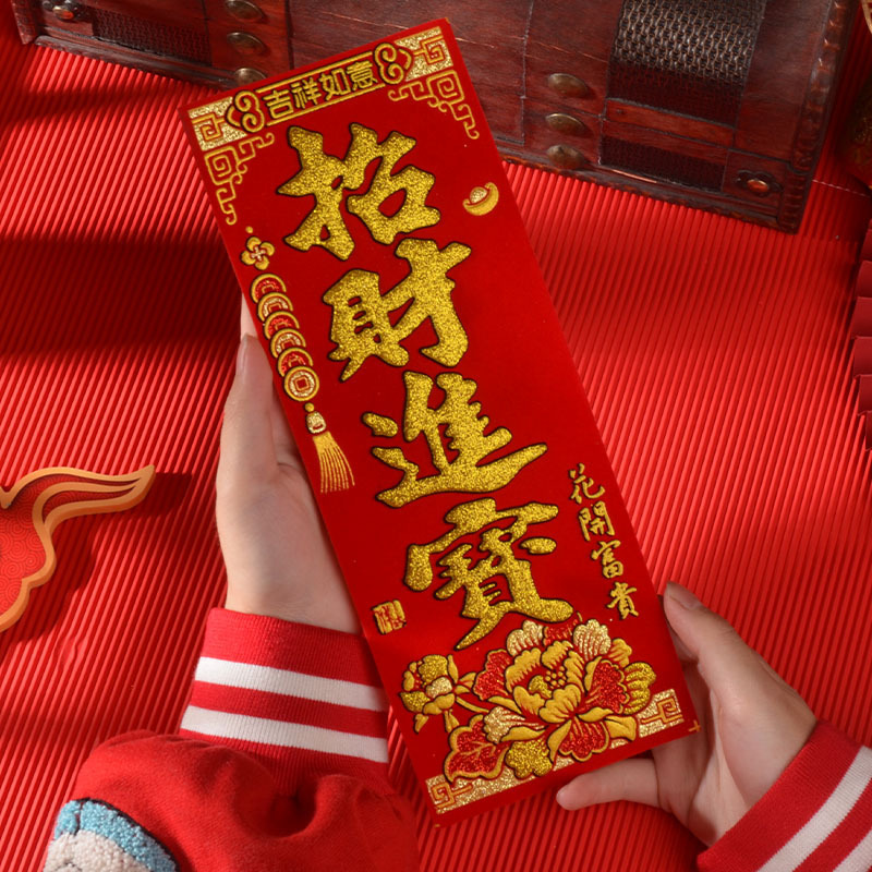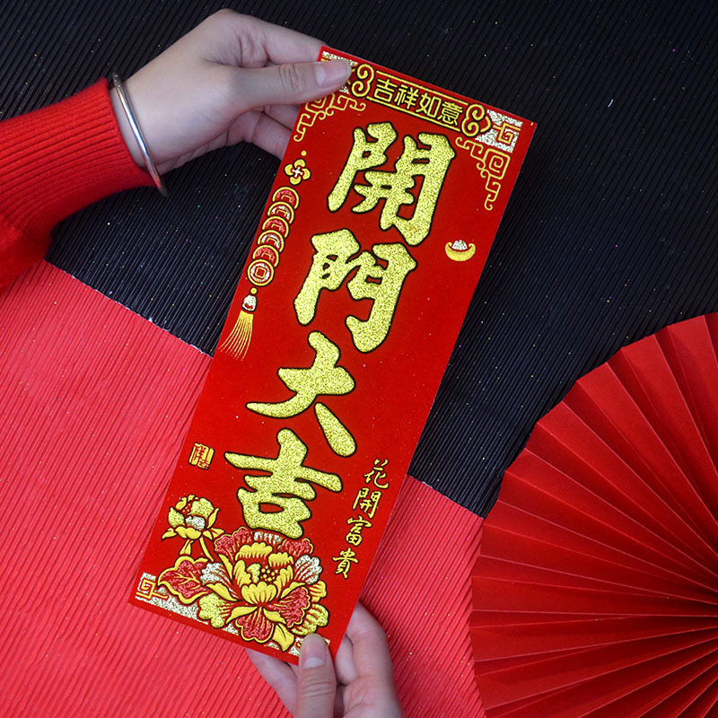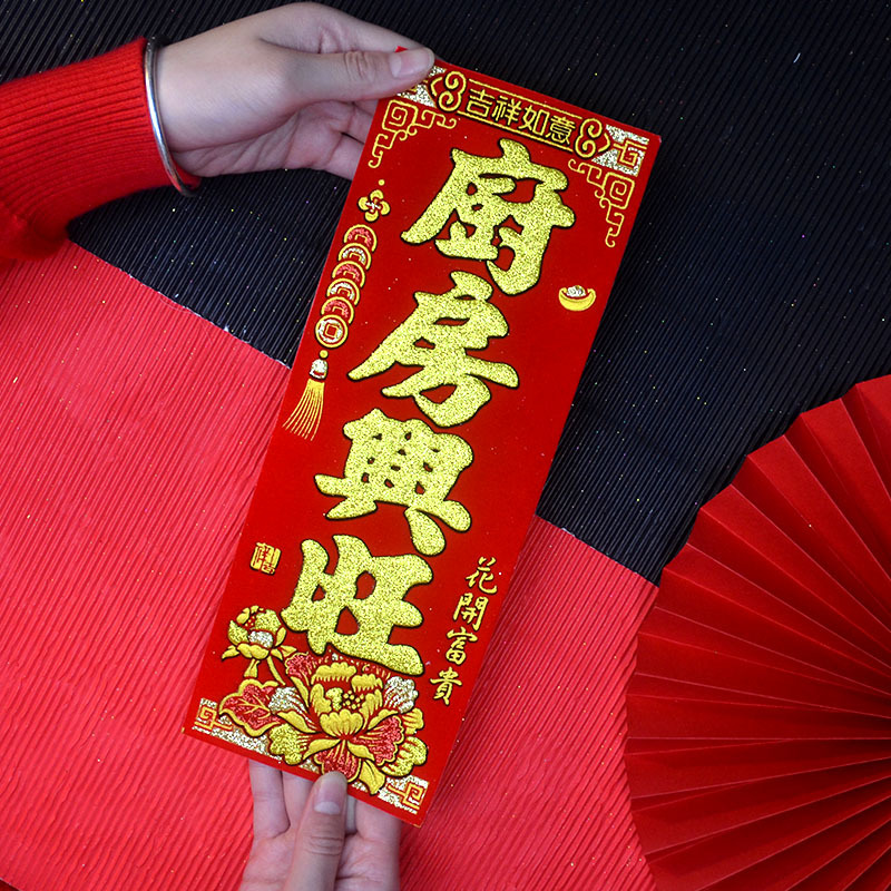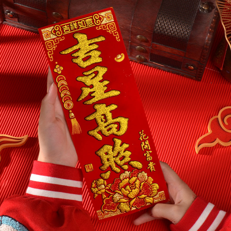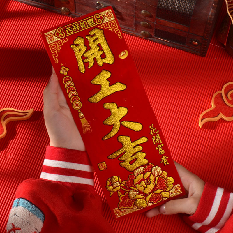 gilding xiaochunhui 2026 horse year chinese new year door head stickers flannel gilding self-adhesive adhesive mini four-word couplet
