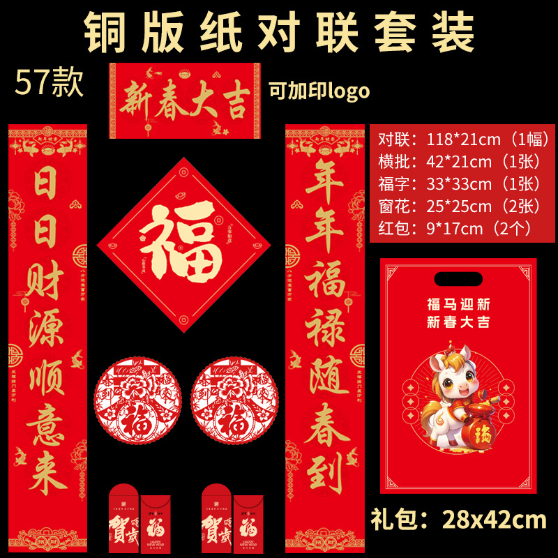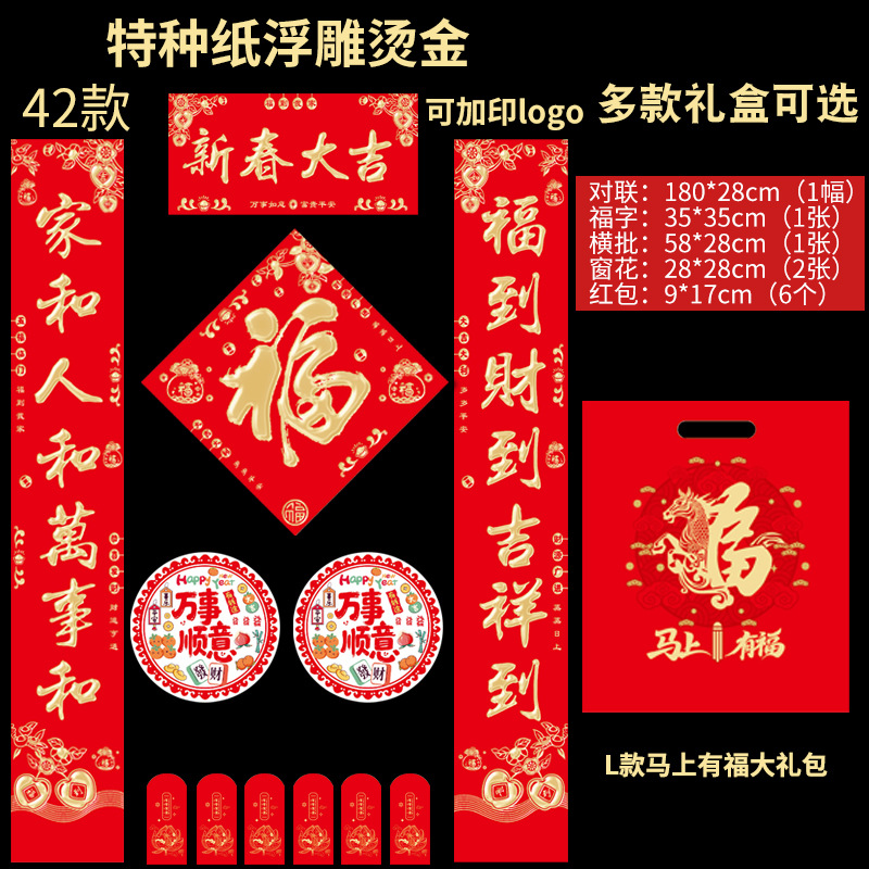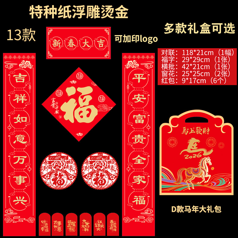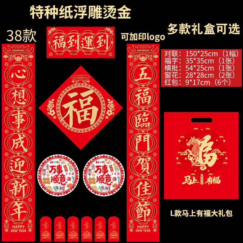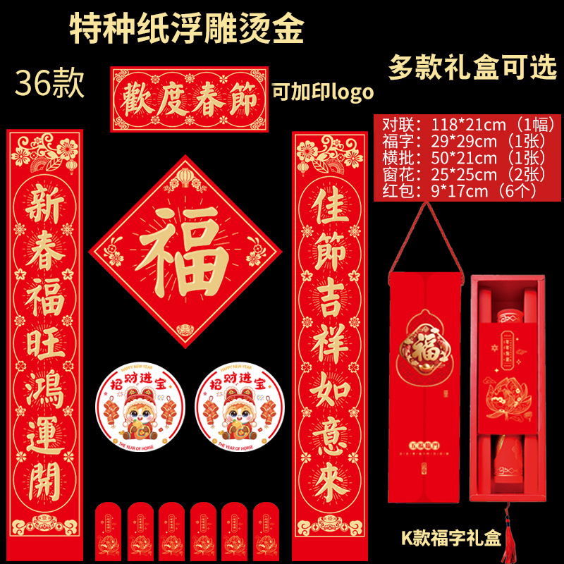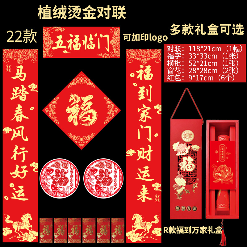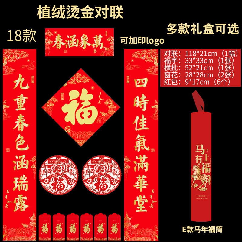 2026马年对联定制春节丝绸大礼包烫金植绒礼盒新年对联春联批货