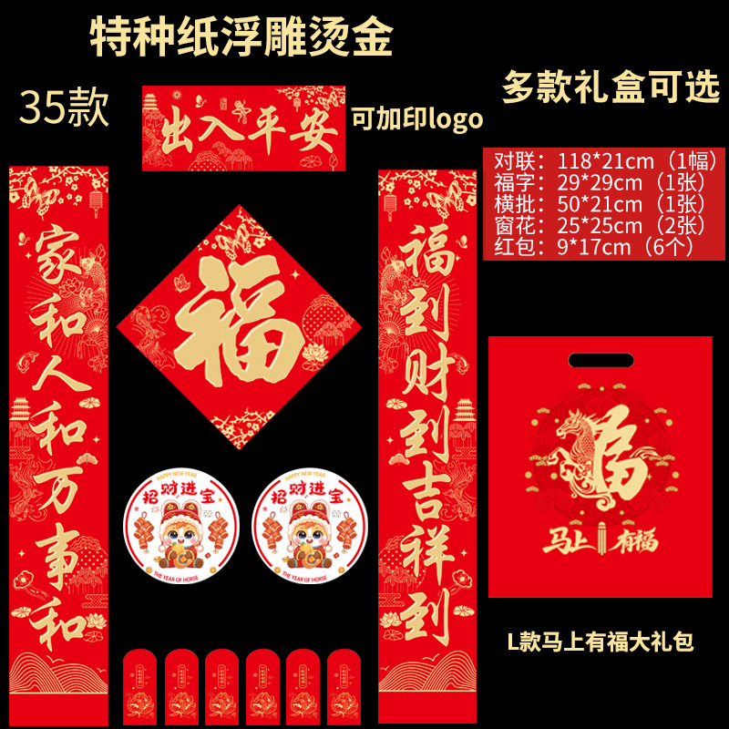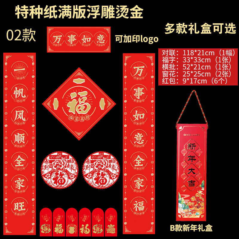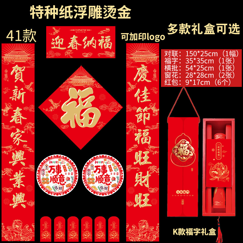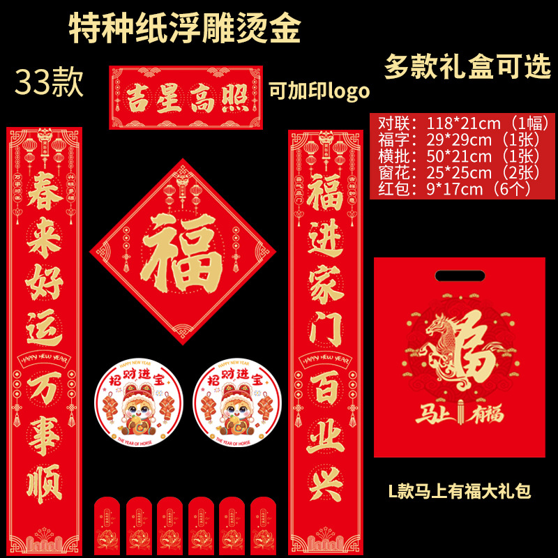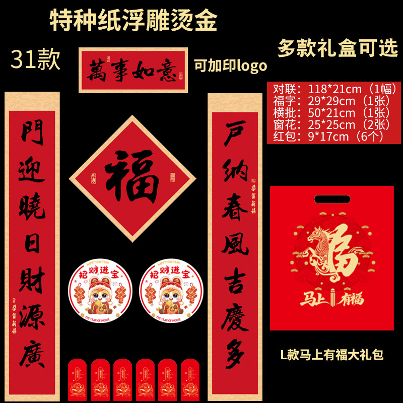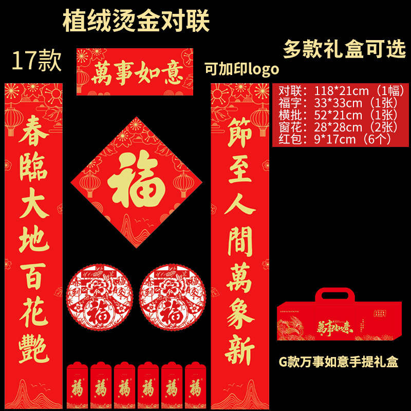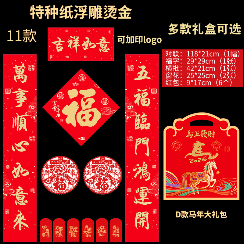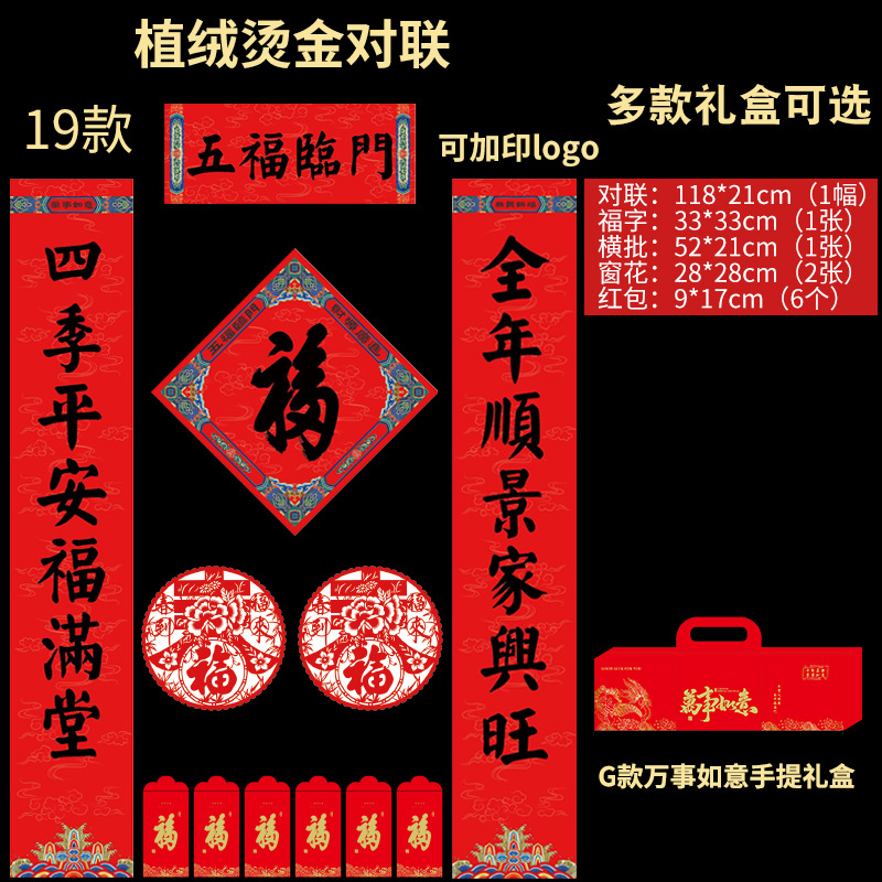 2026马年对联定制春节丝绸大礼包烫金植绒礼盒新年对联春联批货