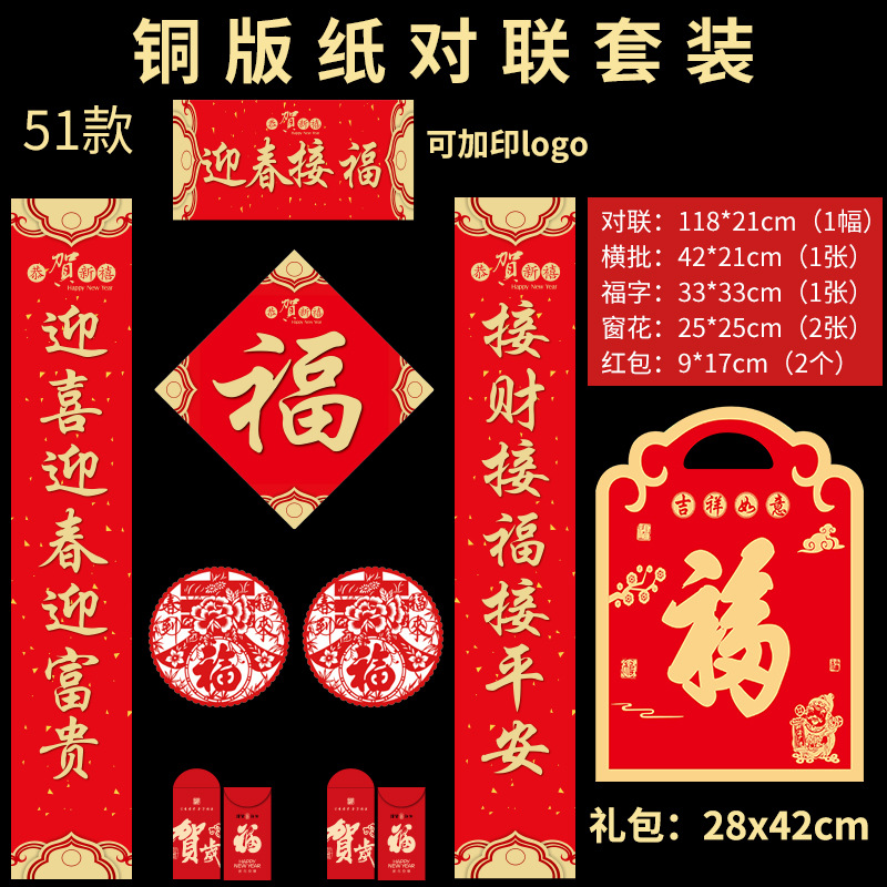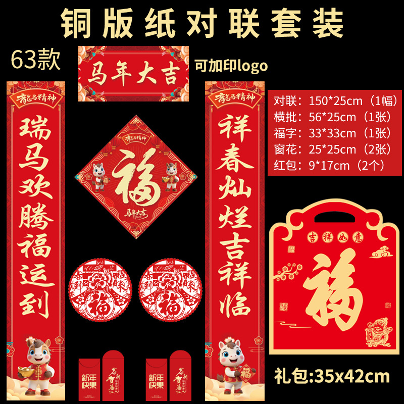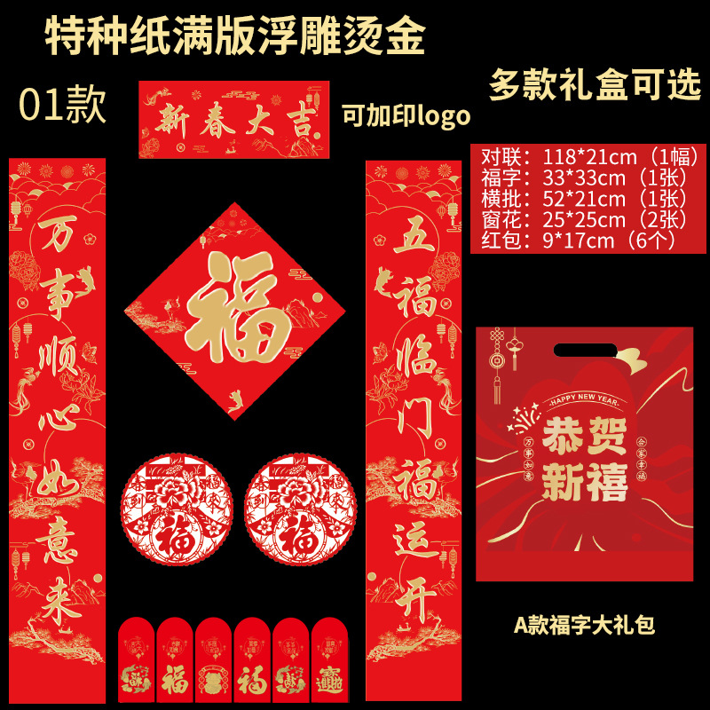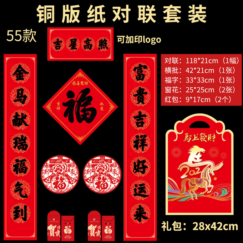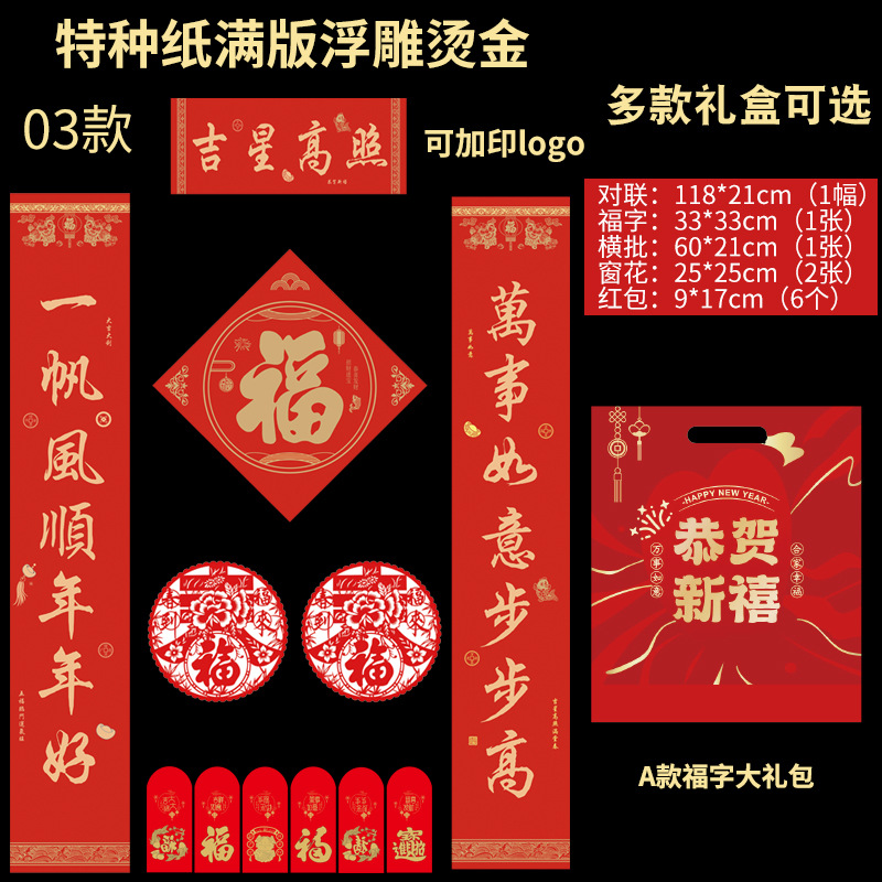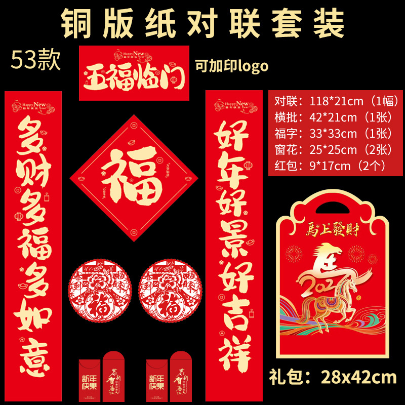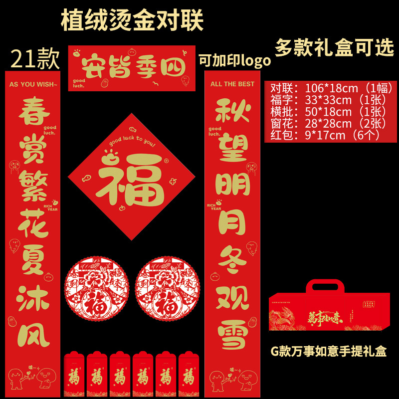 2026马年对联定制春节丝绸大礼包烫金植绒礼盒新年对联春联批货