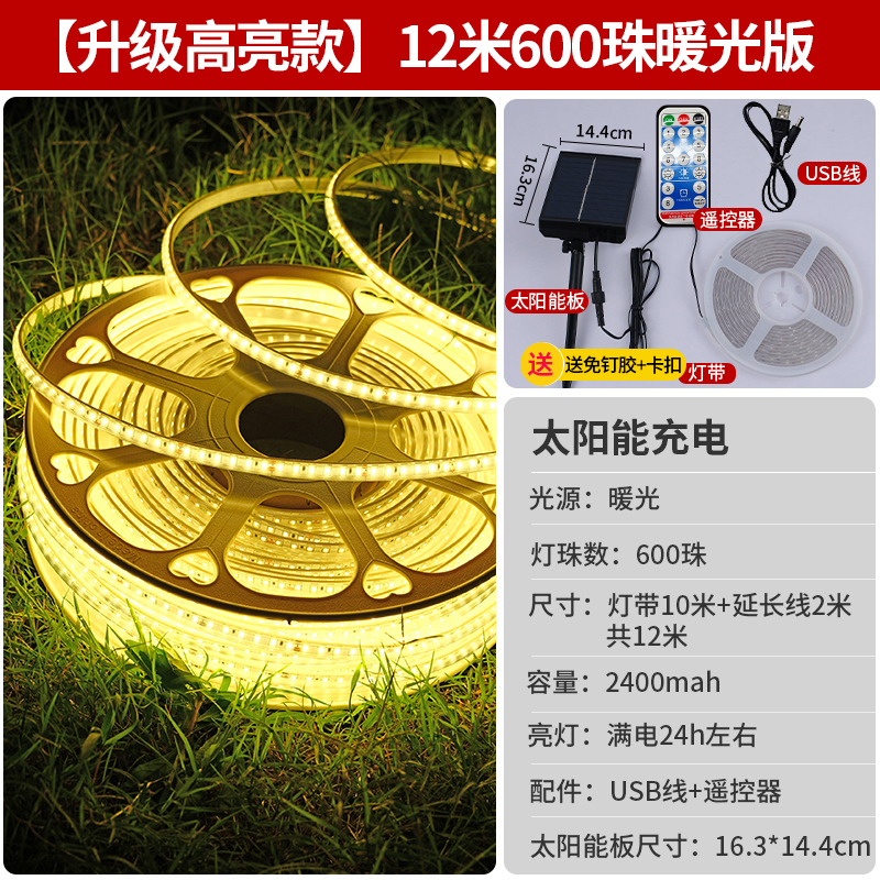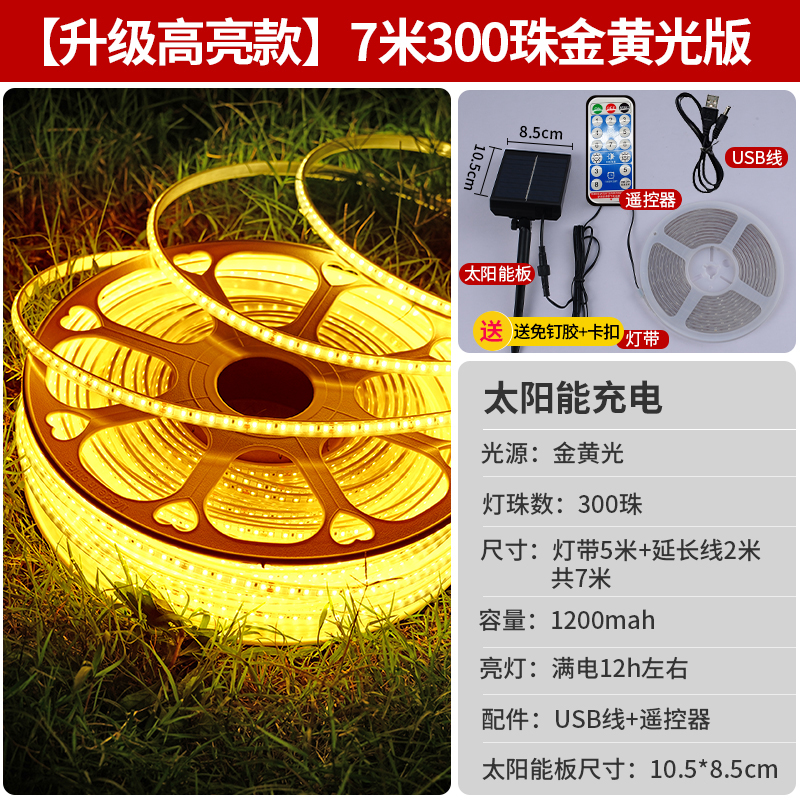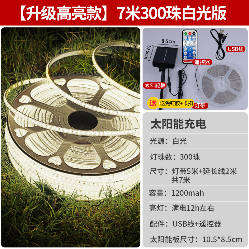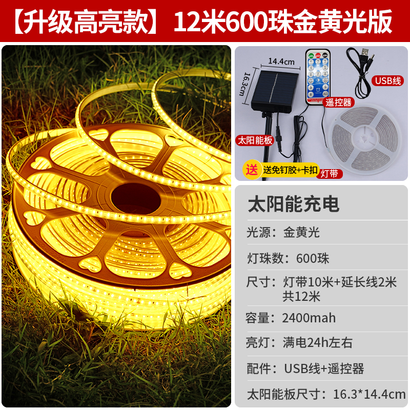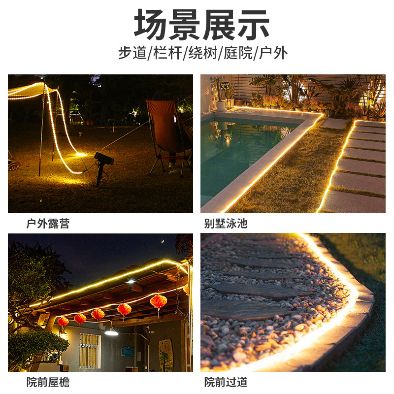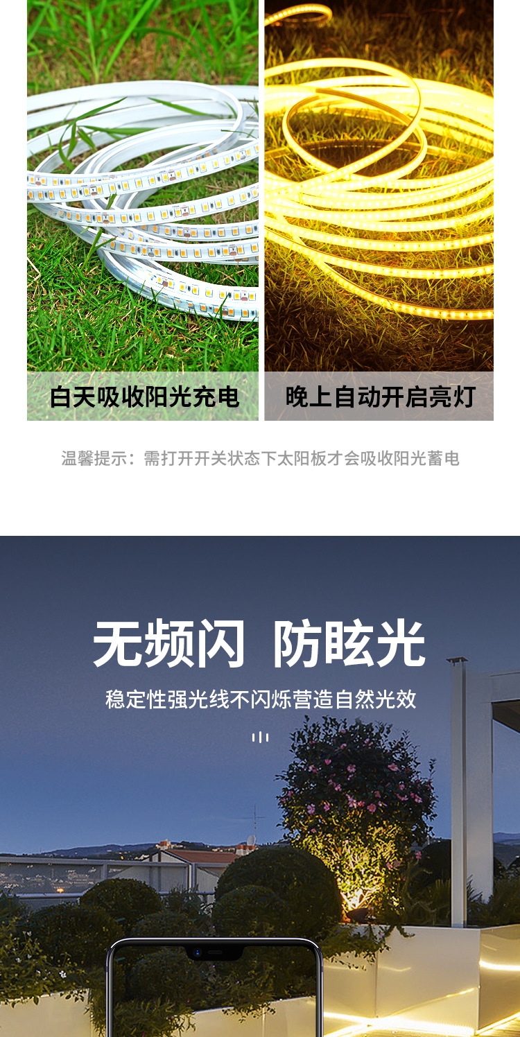 太阳能灯带自粘户外防水庭院阳台氛围室外彩超亮led线条灯串闪灯