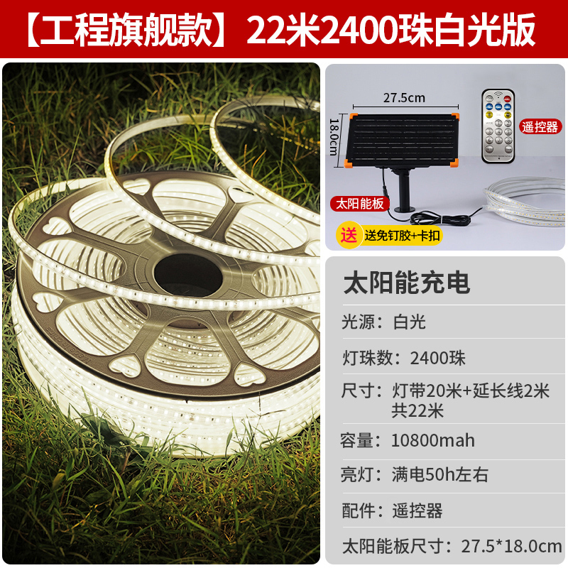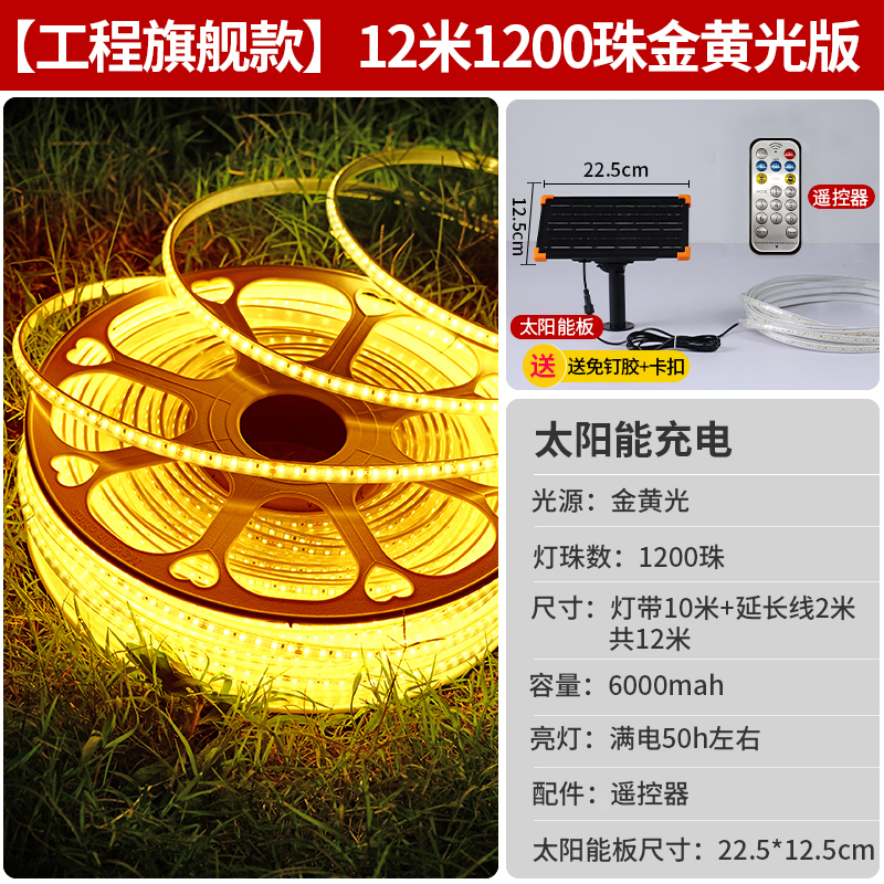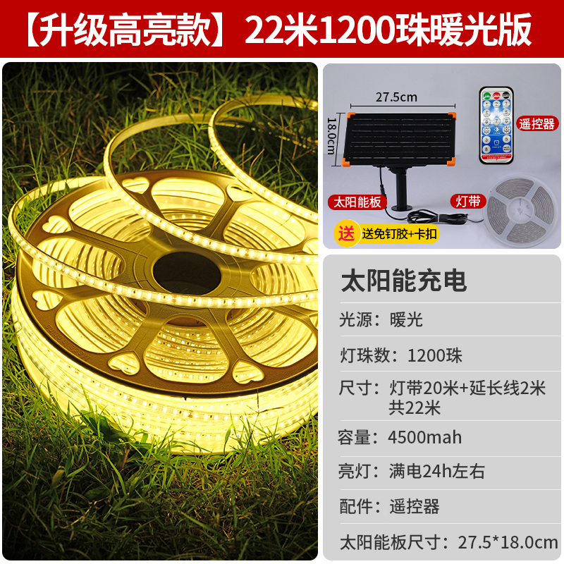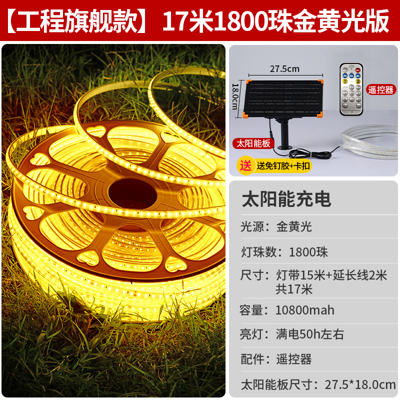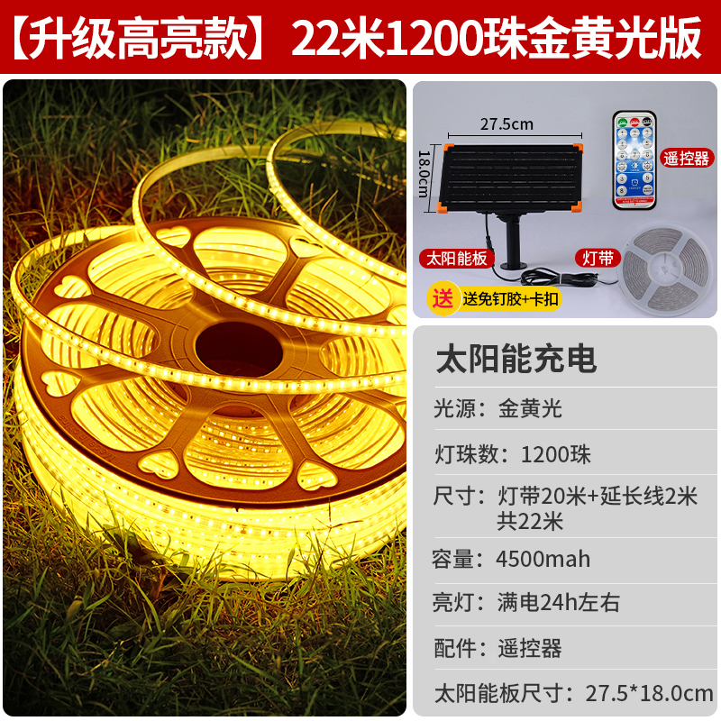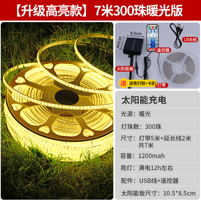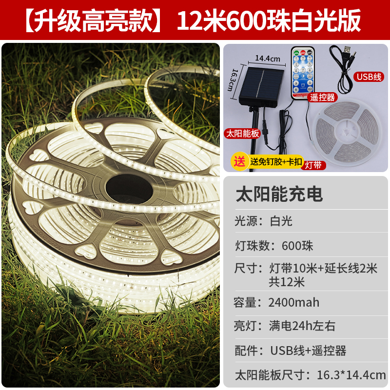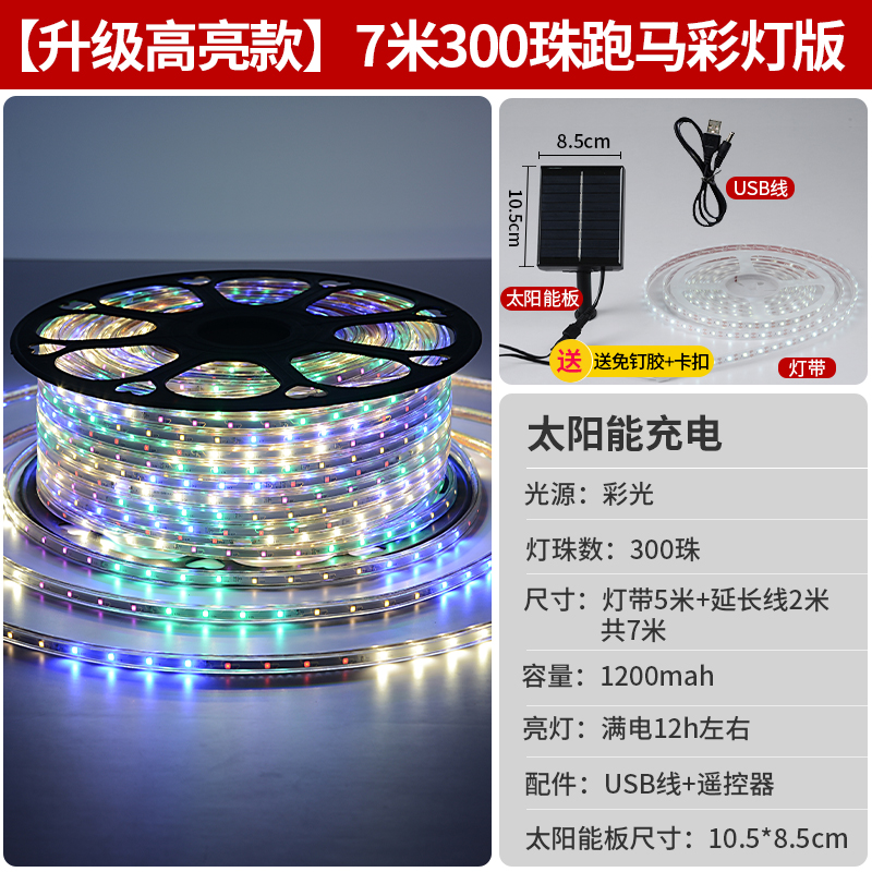 太阳能灯带自粘户外防水庭院阳台氛围室外彩超亮led线条灯串闪灯