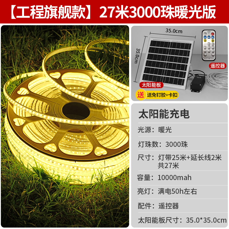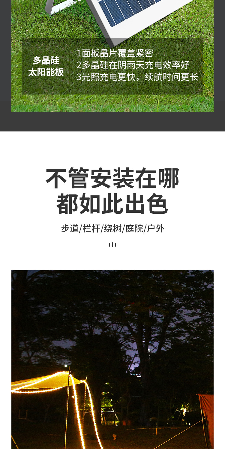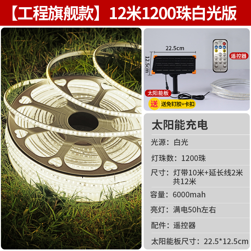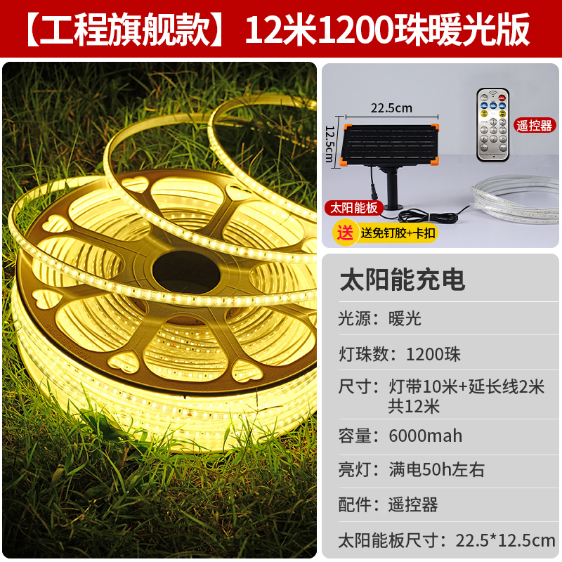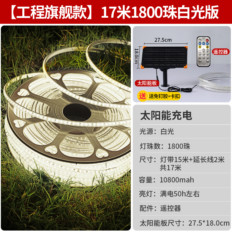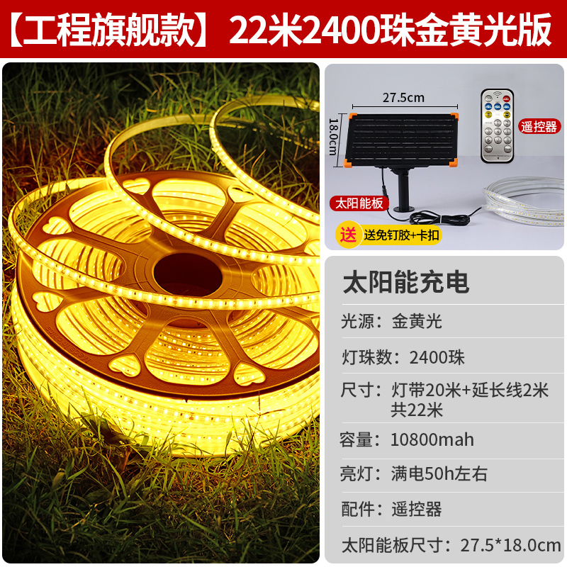 太阳能灯带自粘户外防水庭院阳台氛围室外彩超亮led线条灯串闪灯