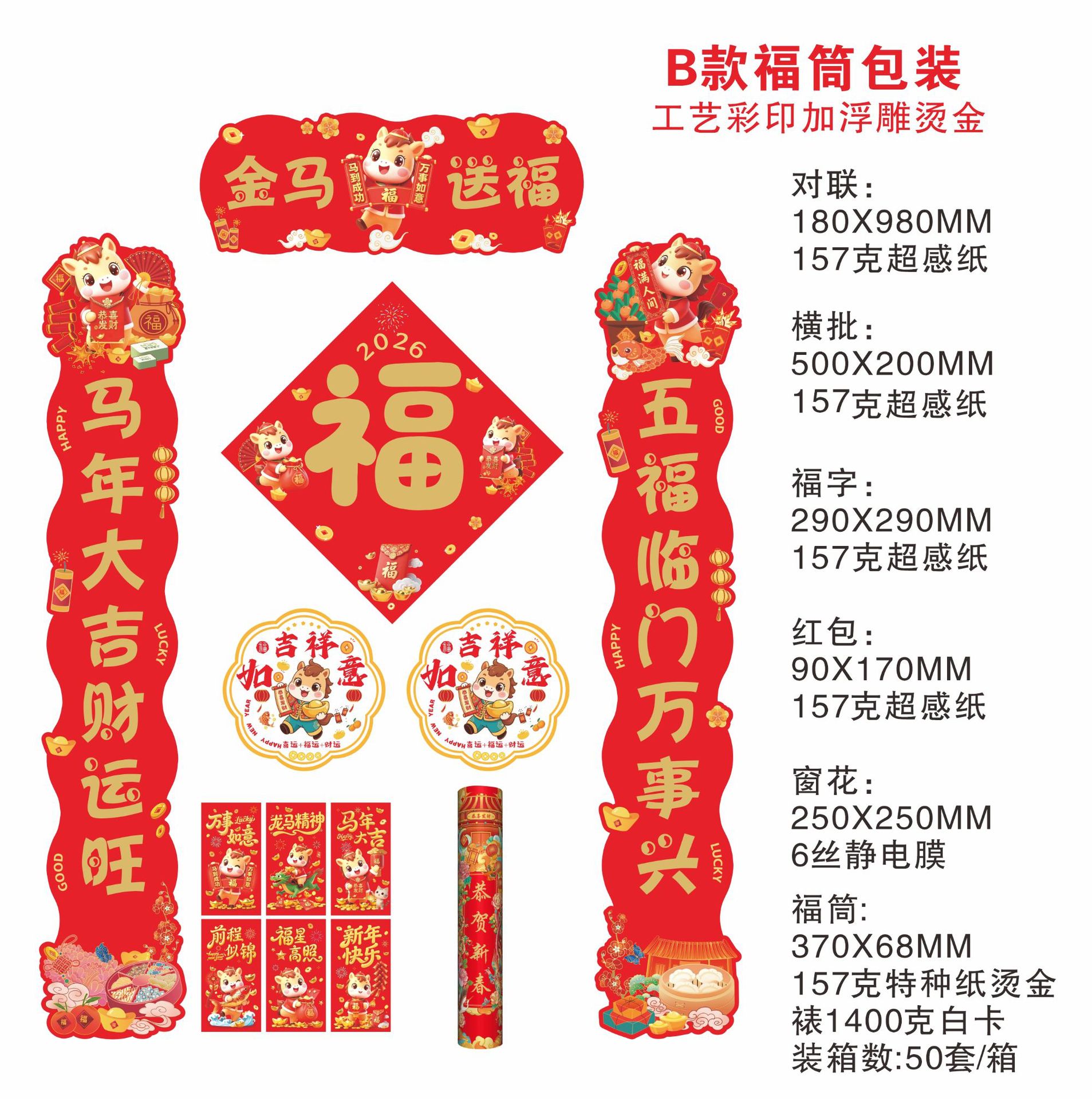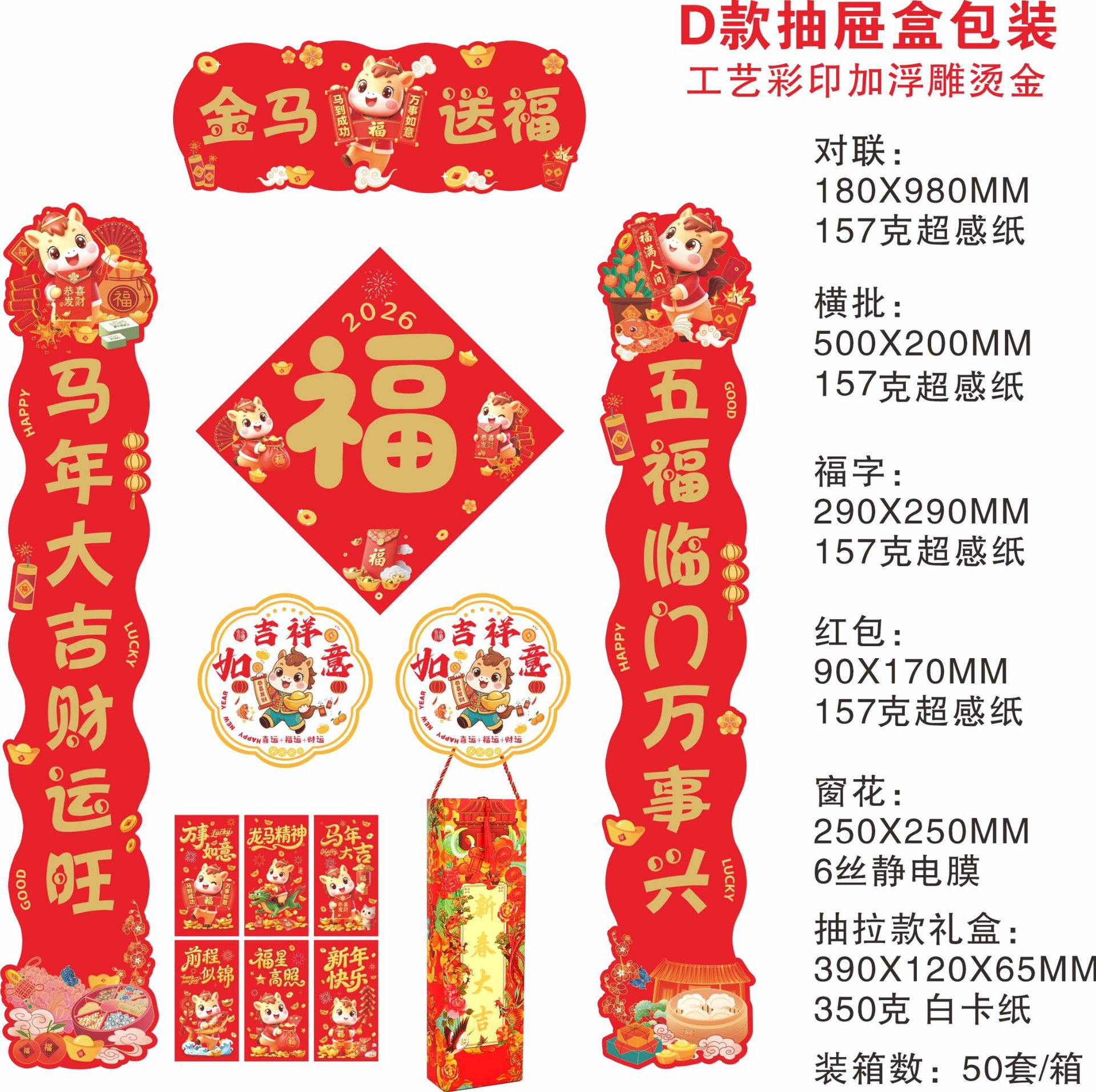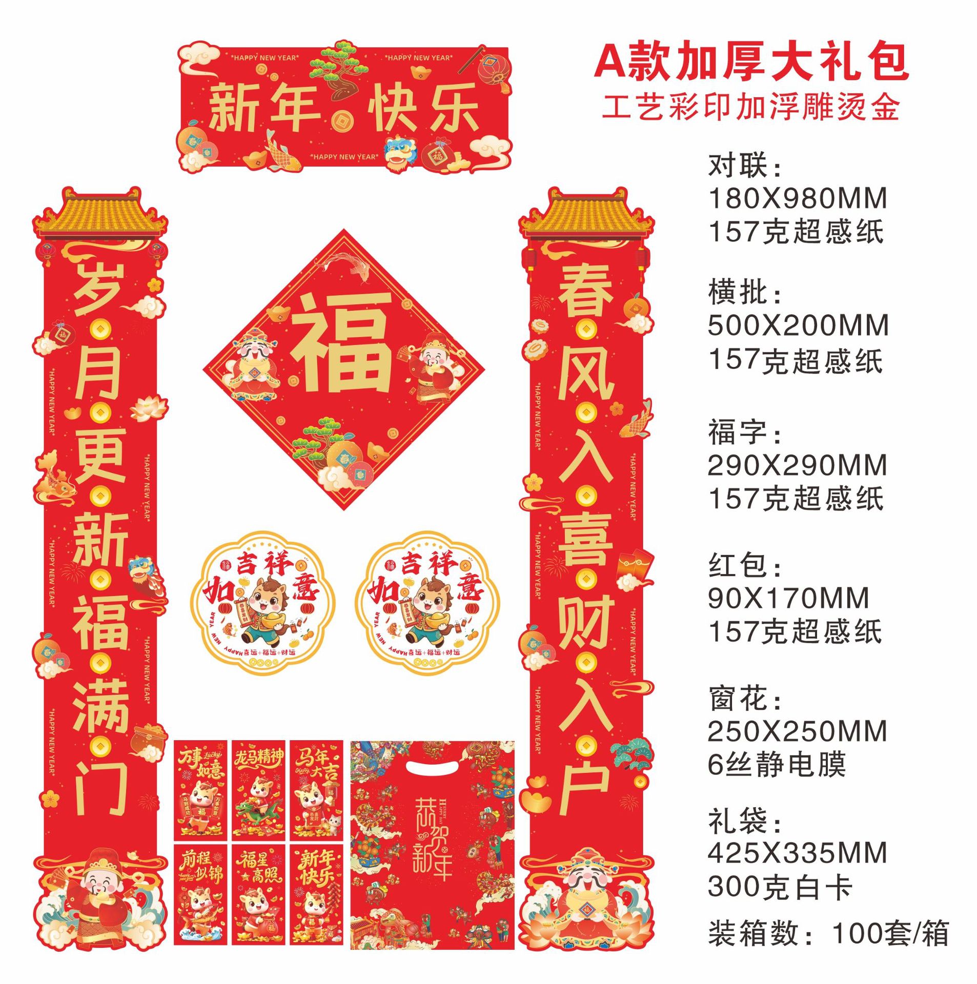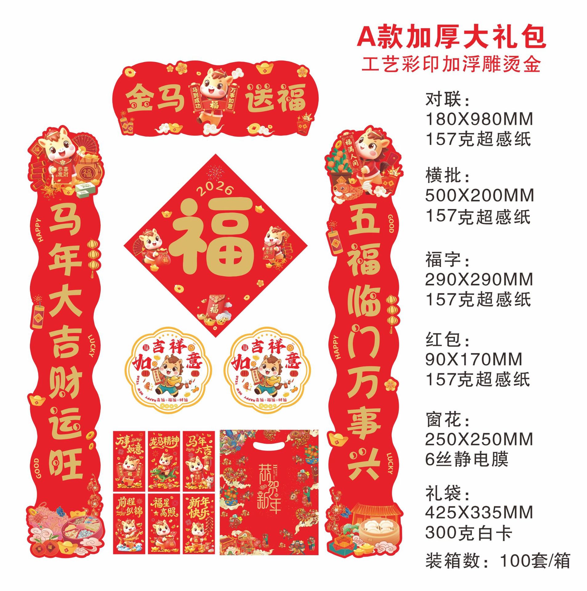 2026马年广告对联套装定制现货春联礼盒大礼包烫金礼盒植绒加logo