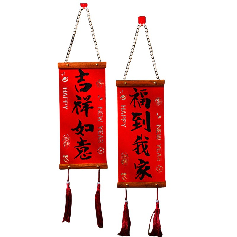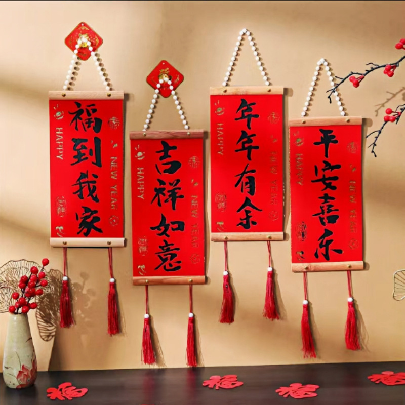 春联挂件新年装饰珍珠实木小对联喜庆结婚布置新房背景墙装饰绒布