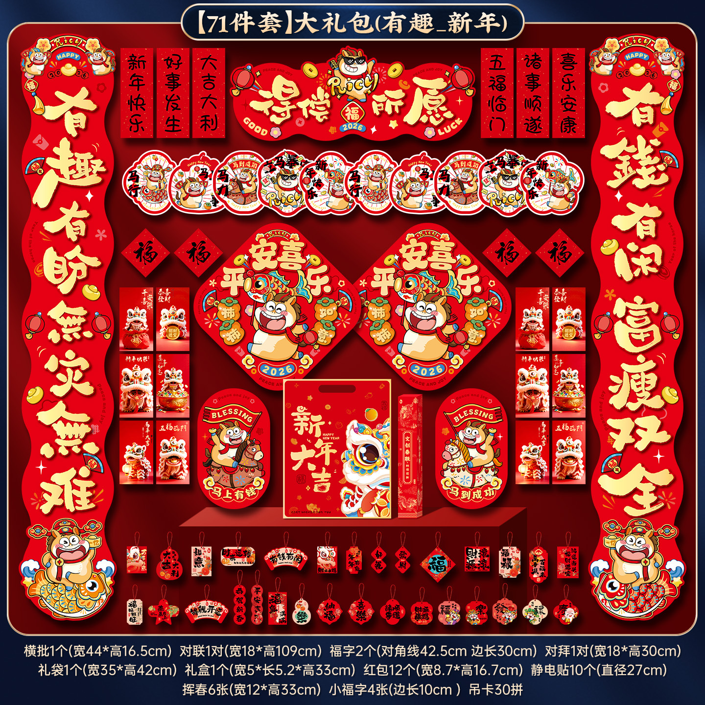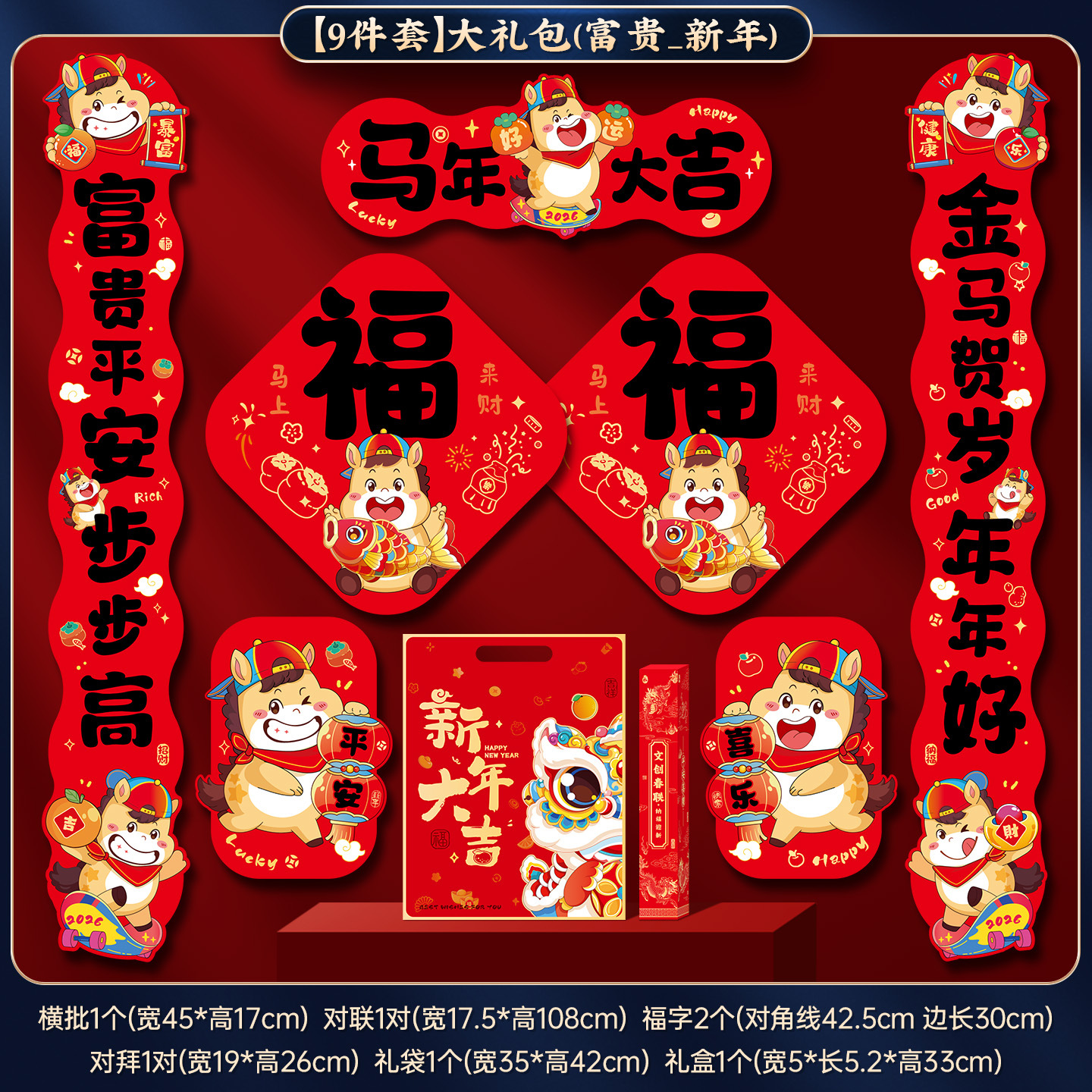 2026马年新年对联春联大礼包新款春节家用福字大门贴过年装饰布置
