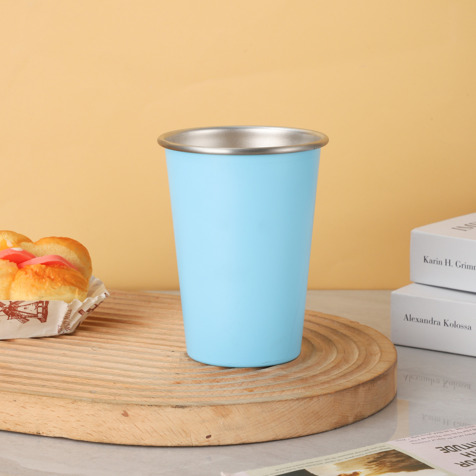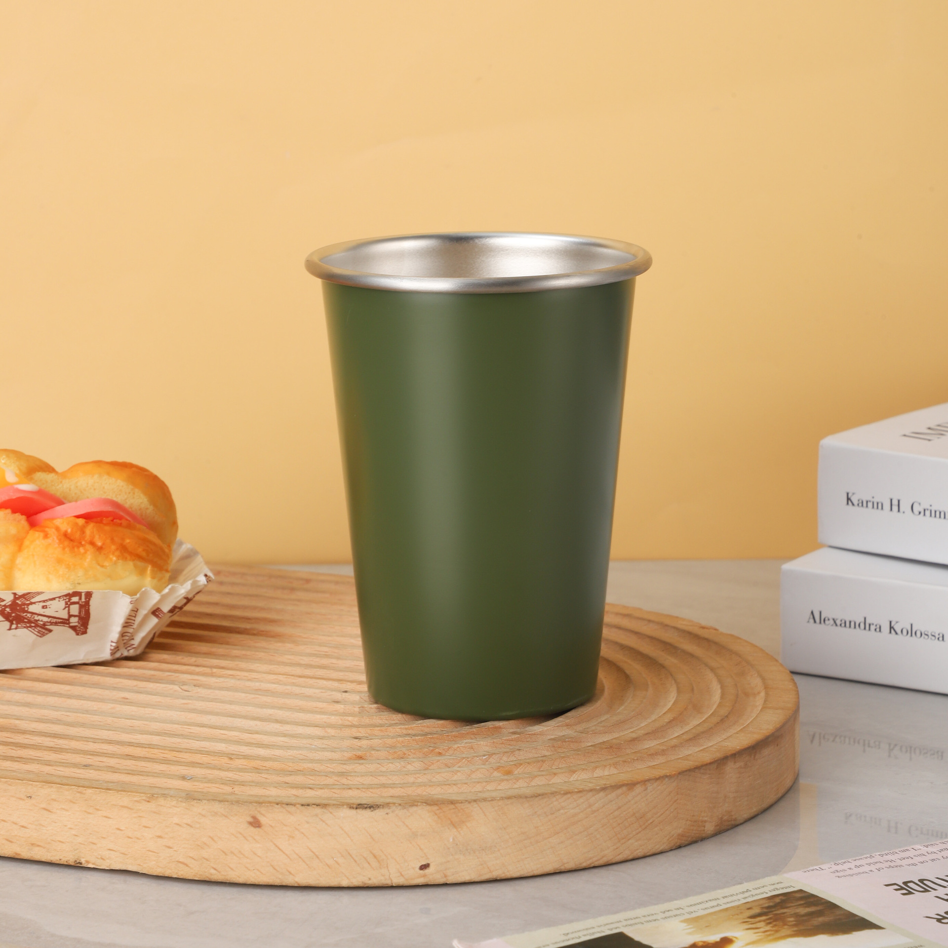 跨境304不锈钢啤酒杯便携冷饮杯单层卷边马克杯创意随手水杯批发