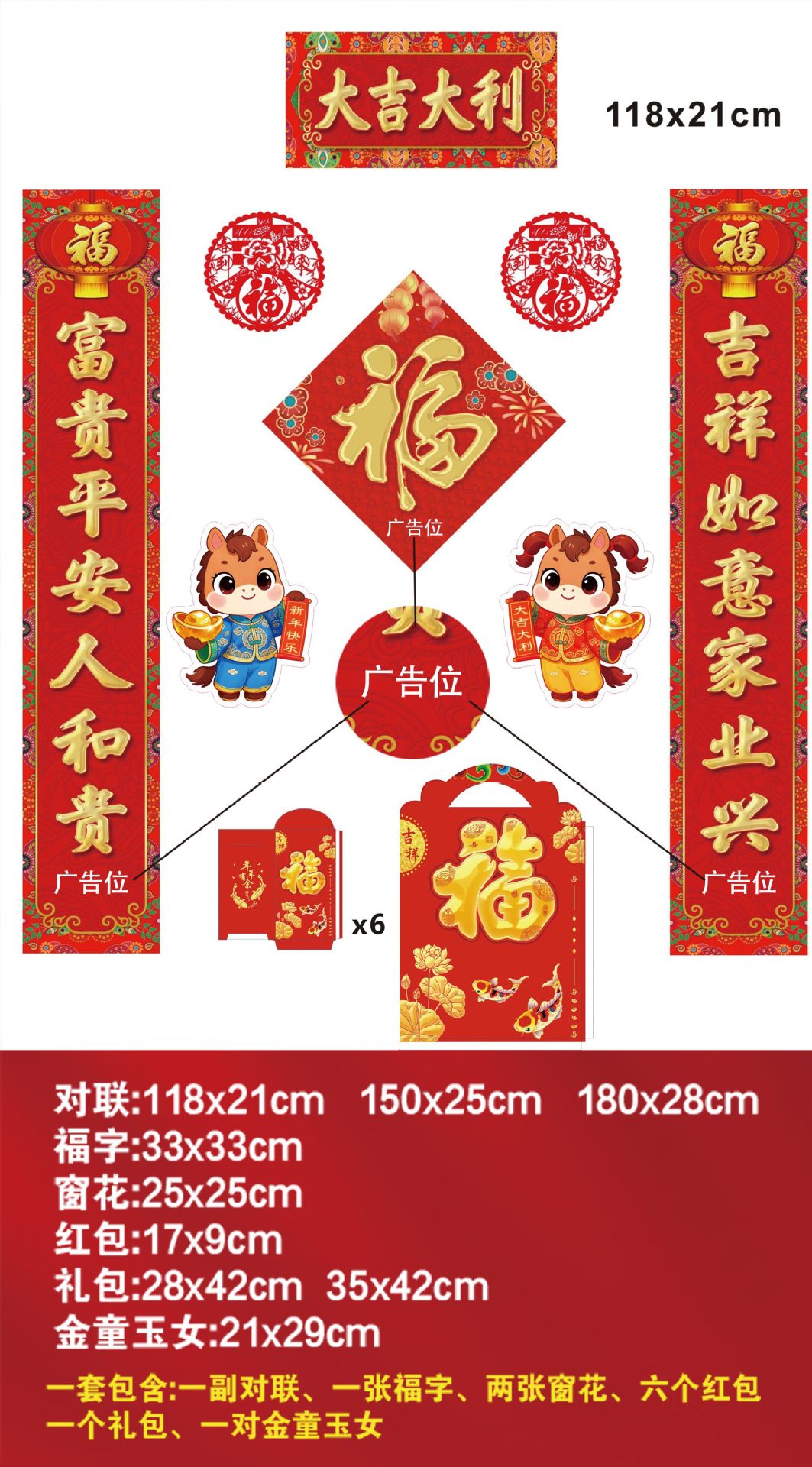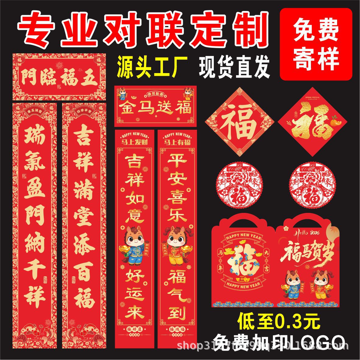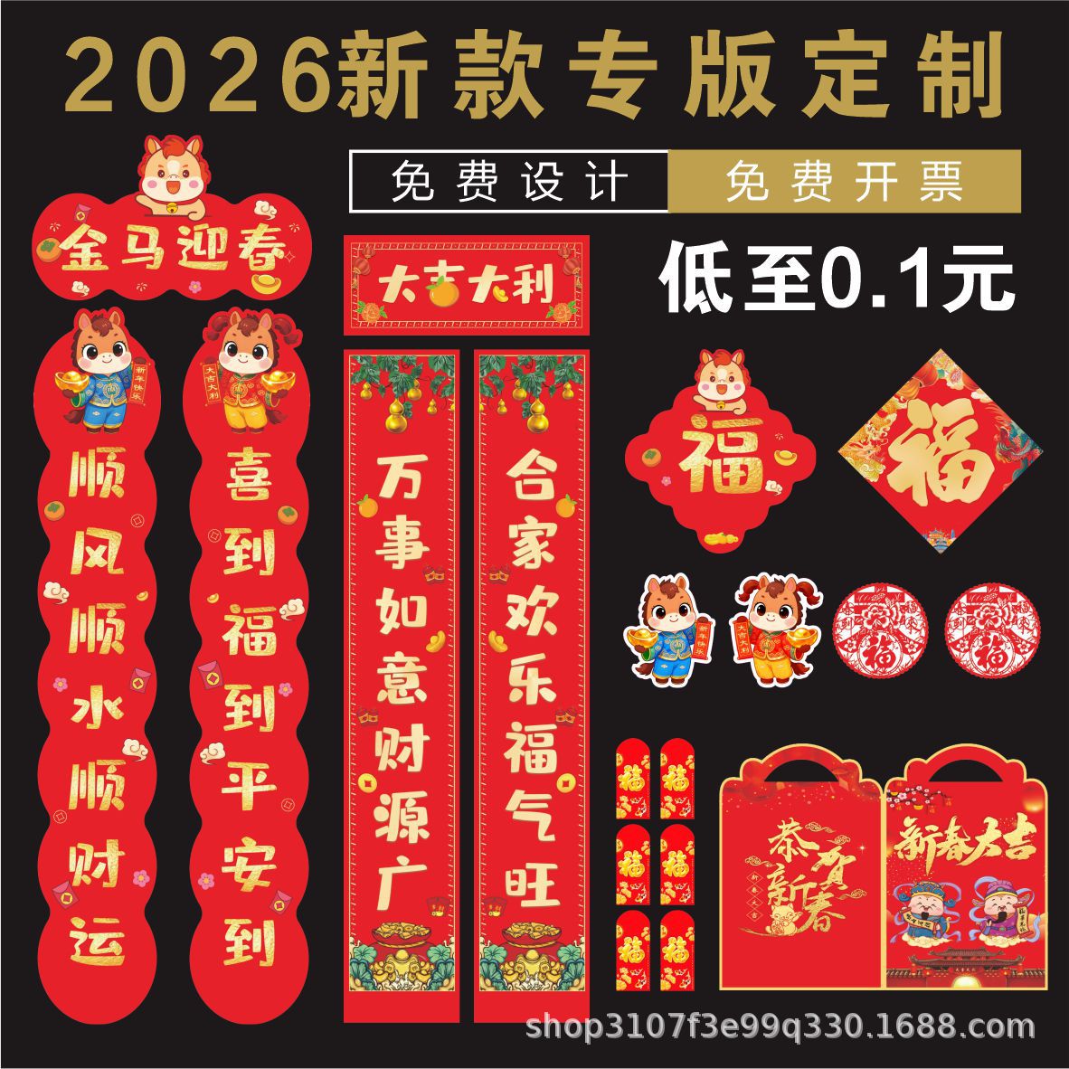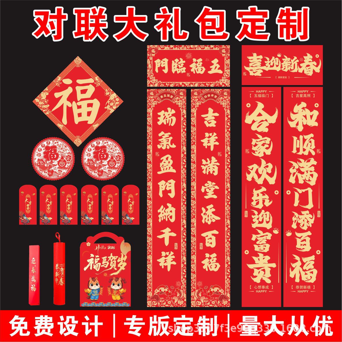 2026年春节对联定制马年烫金对联大礼包专版春联定做新年福字对联