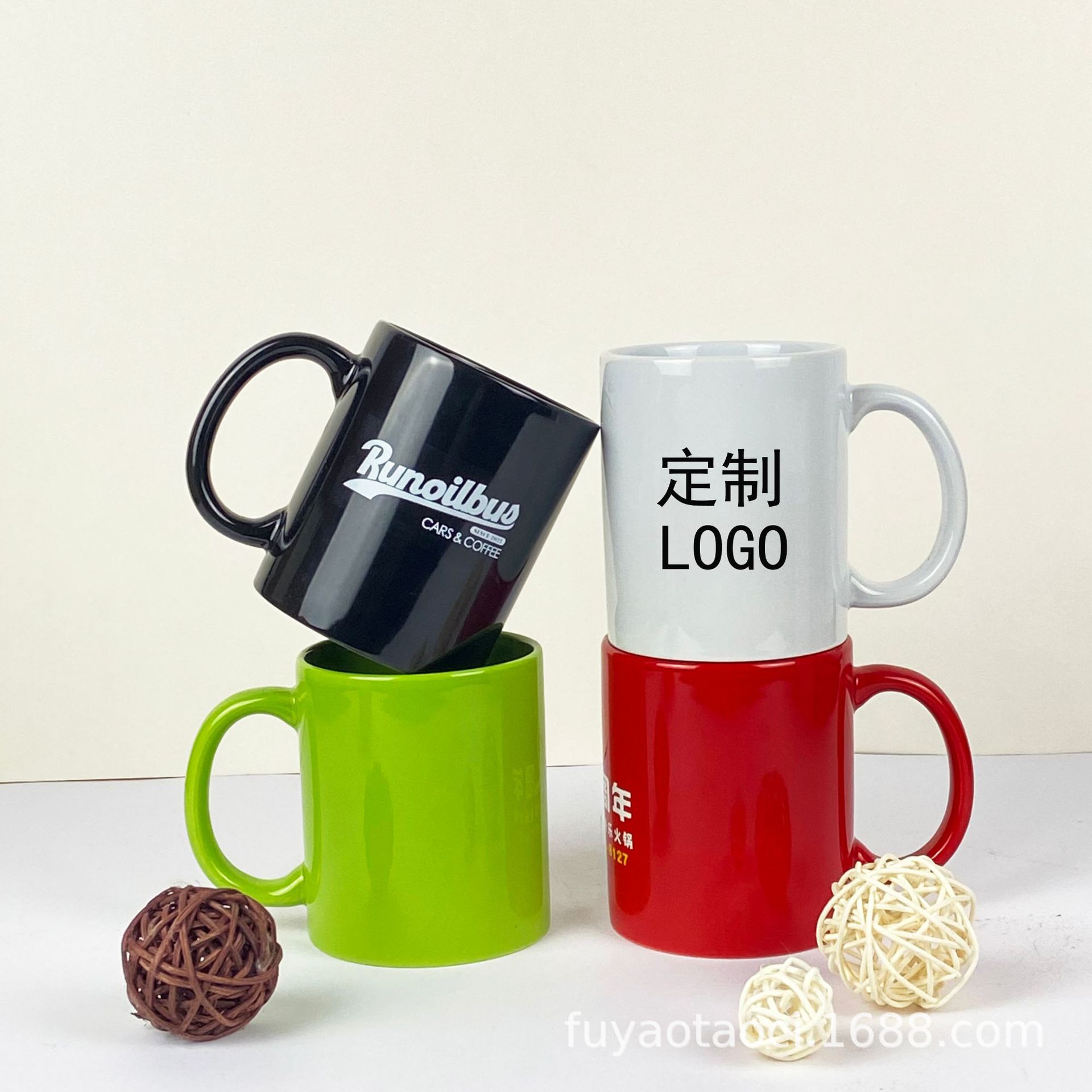 11盎司陶瓷杯定 制logo礼品杯广告杯色釉咖啡杯子外贸出口马克杯