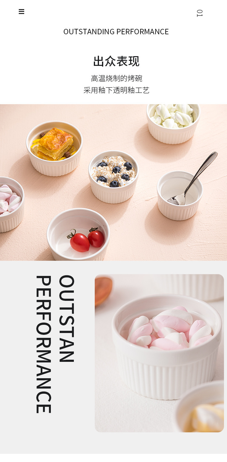 创意厨房餐具纯白陶瓷布丁碗烤碗烘焙碗布丁杯烤盅蛋糕甜品雪糕碗