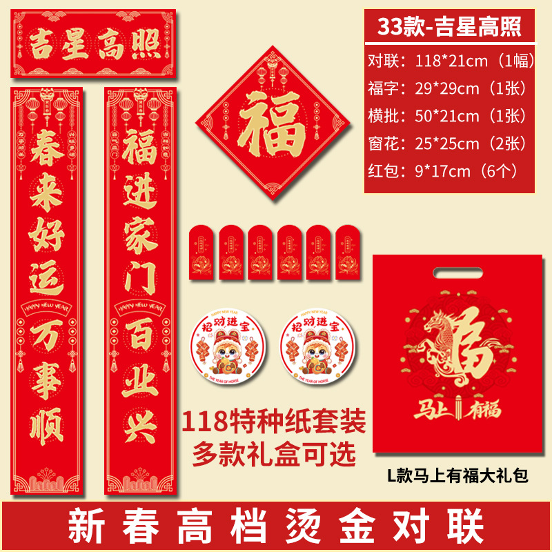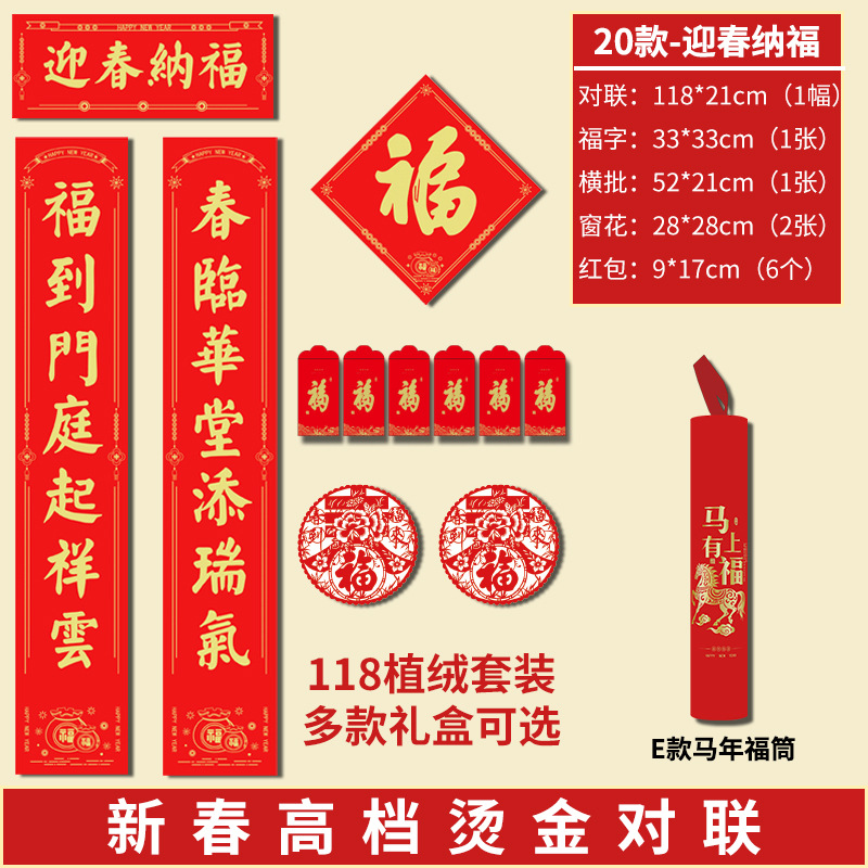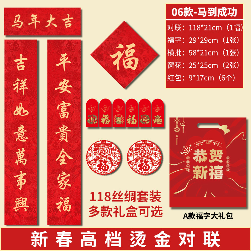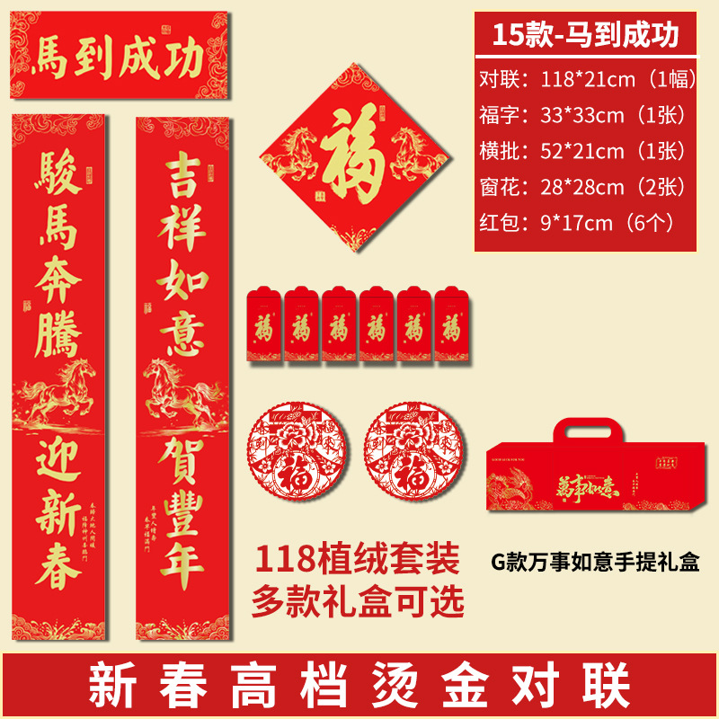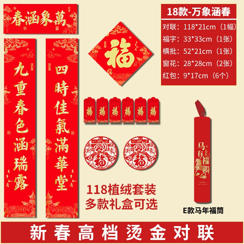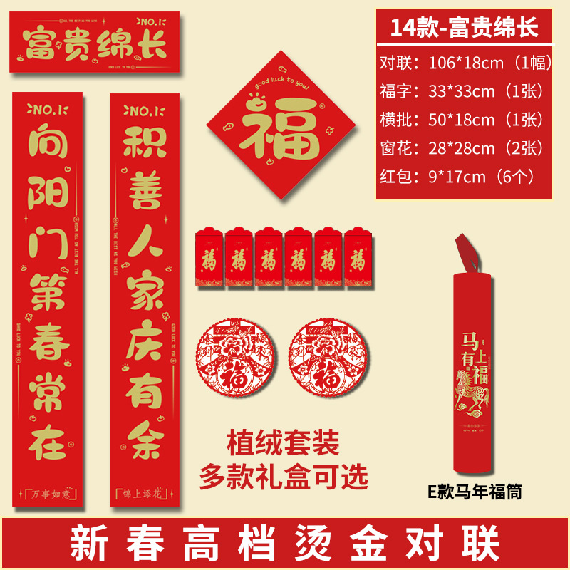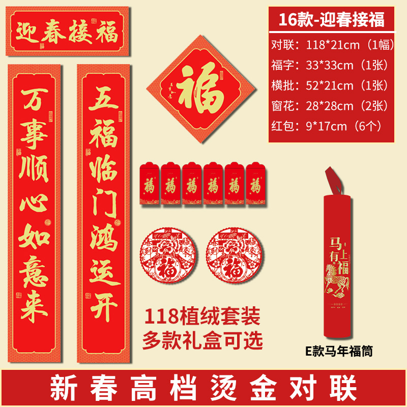2026马年对联春联批货春节丝绸大礼包绒布新年植绒对联定制logo
