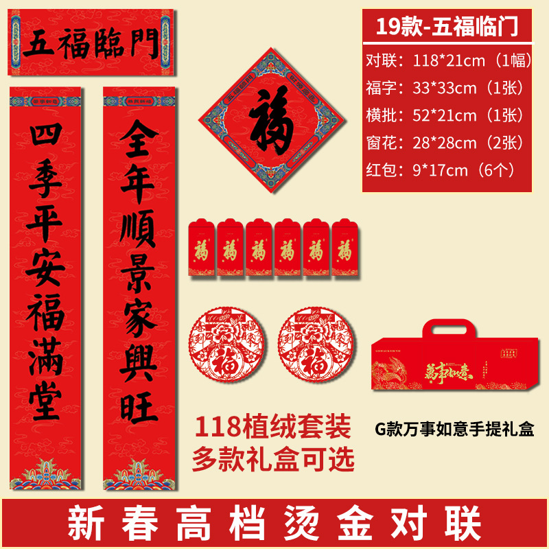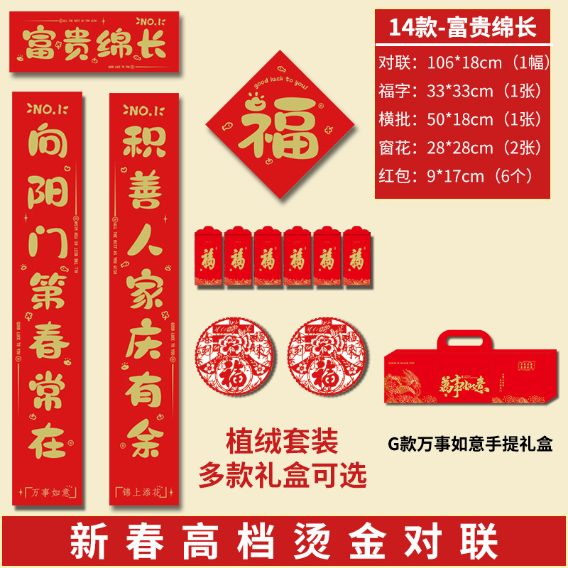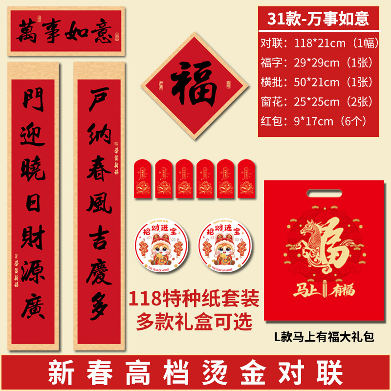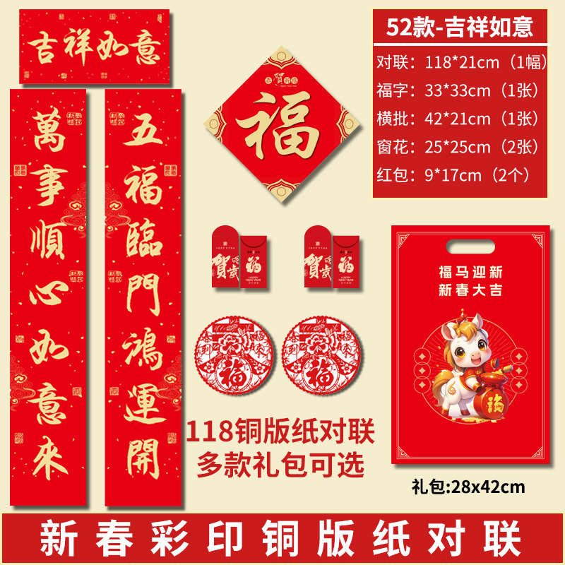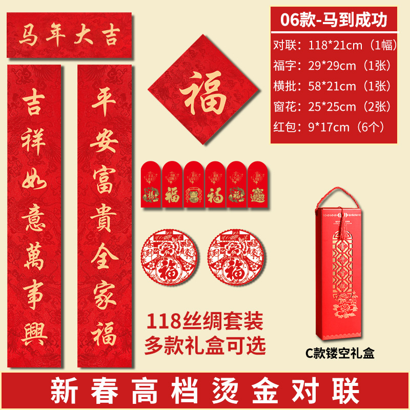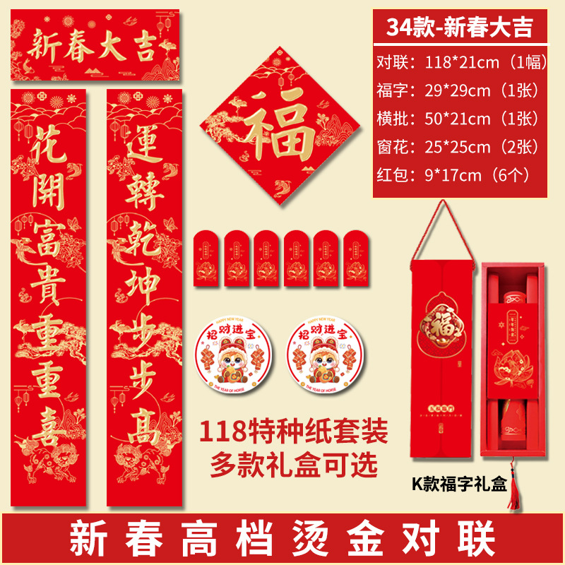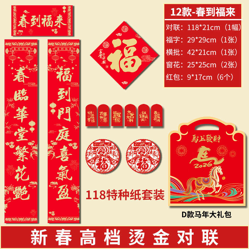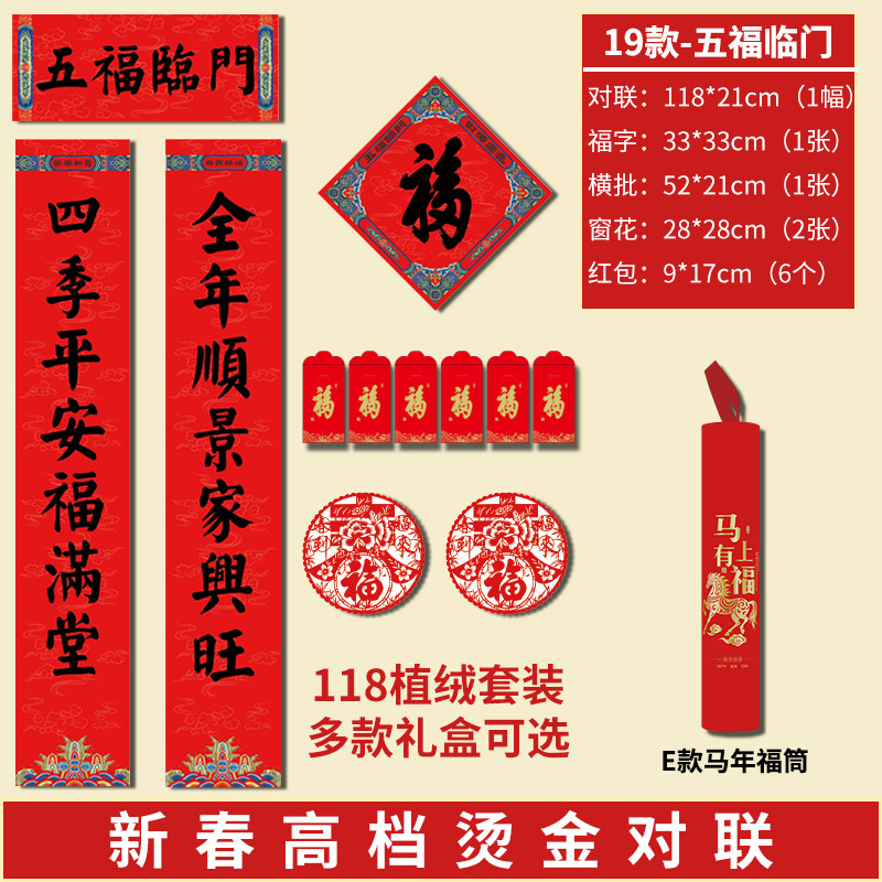 2026马年对联春联批货春节丝绸大礼包绒布新年植绒对联定制logo